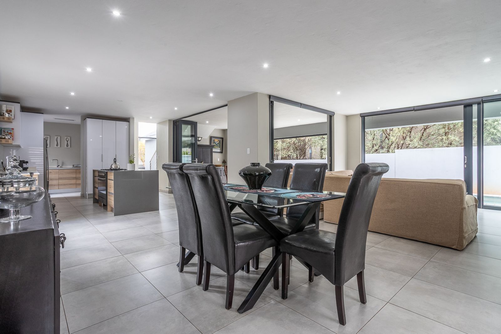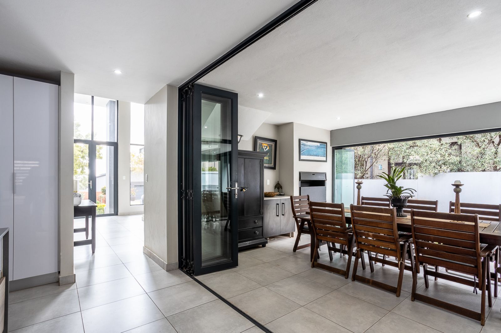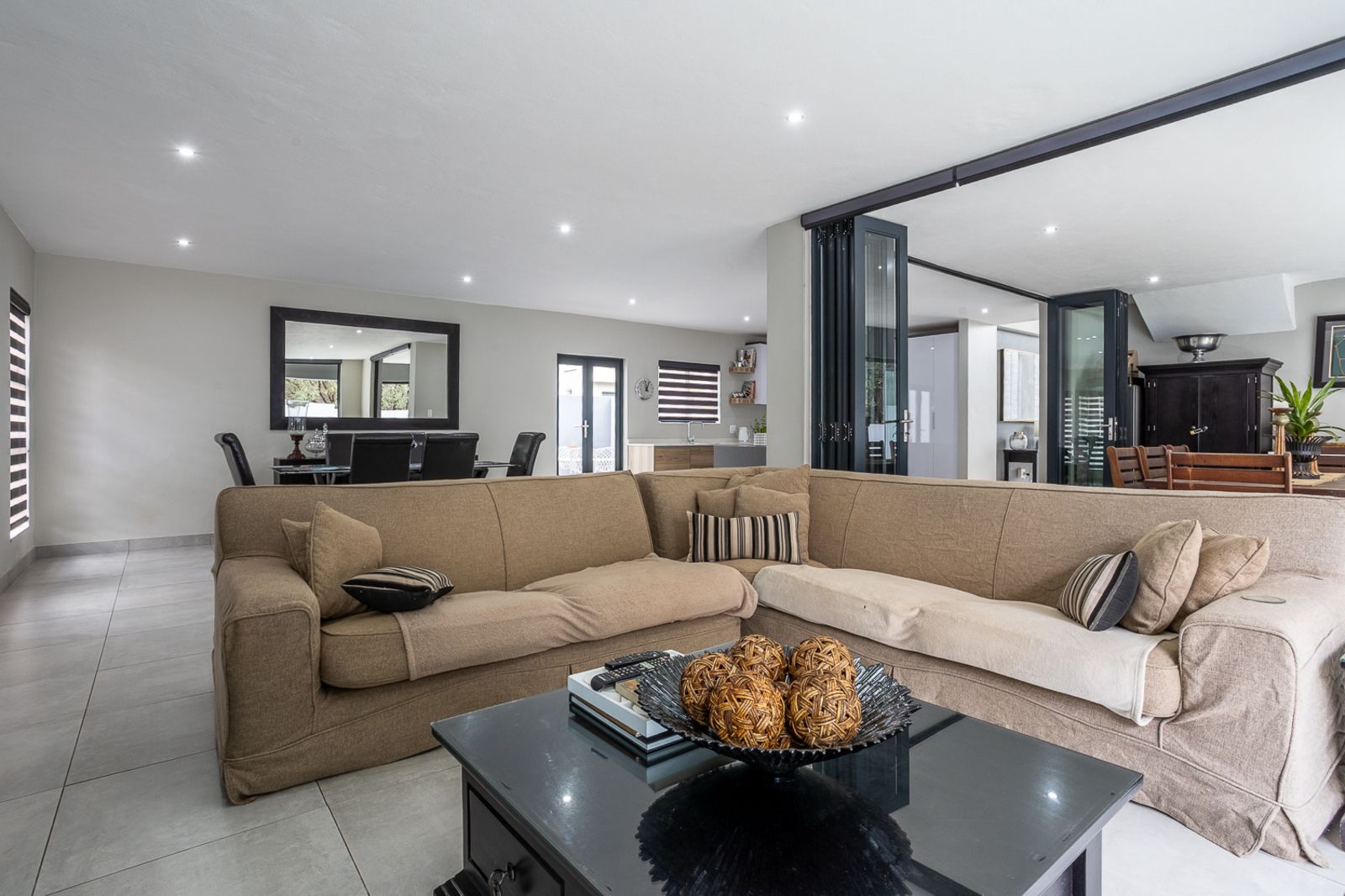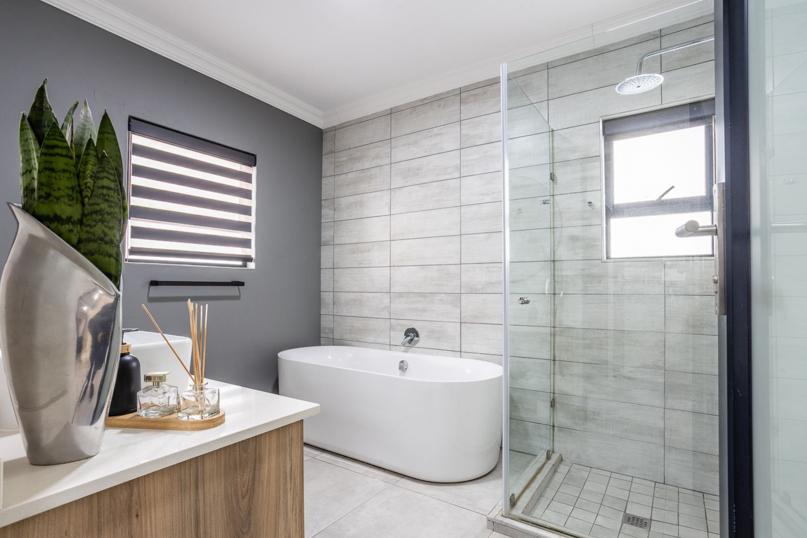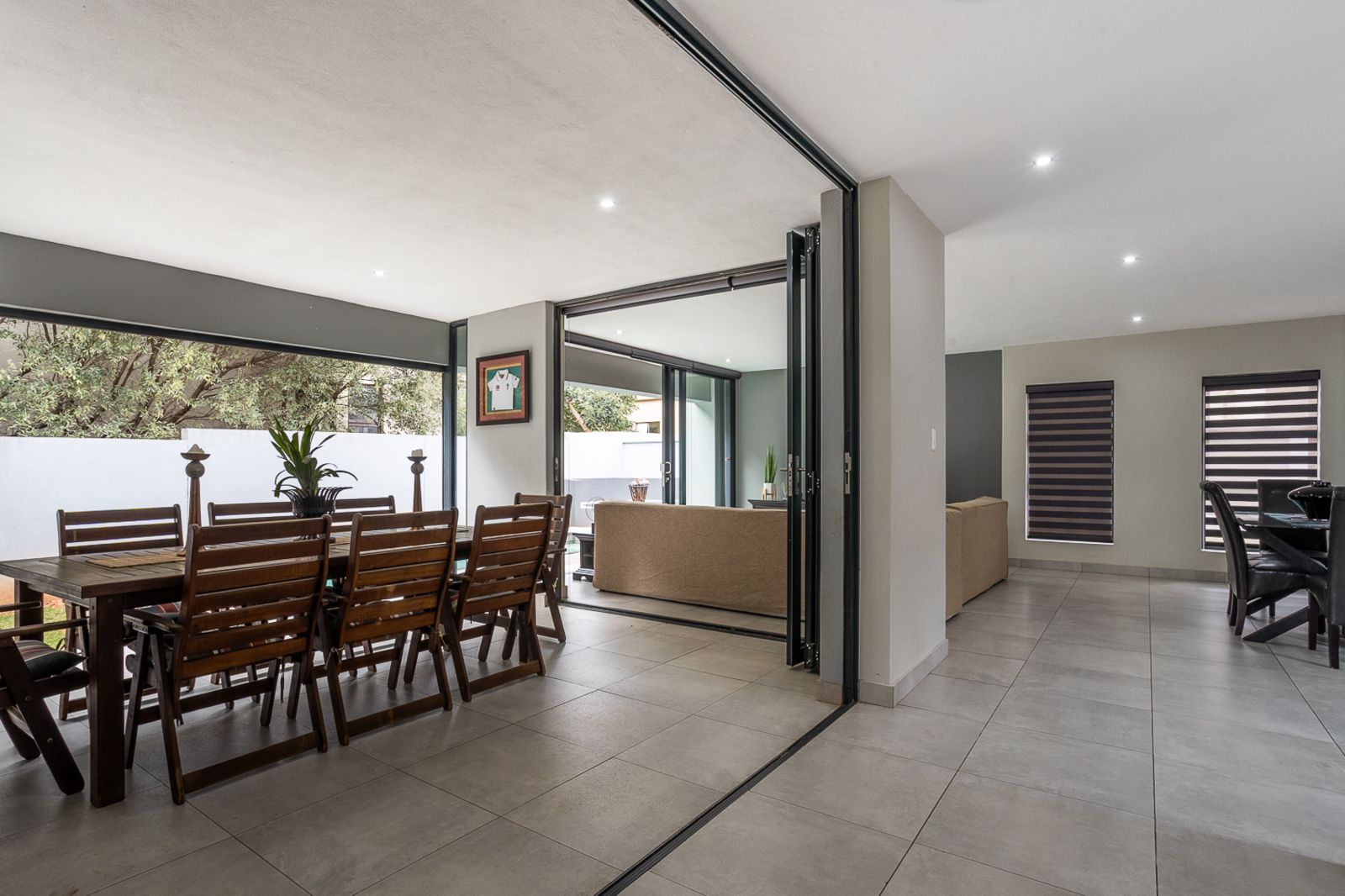 Step outside to a stylish covered patio with frameless glass stacking doors, creating a seamless flow between indoor and outdoor spaces. The built-in braai, landscaped garden, and sparkling swimming pool make this an entertainer’s dream.
