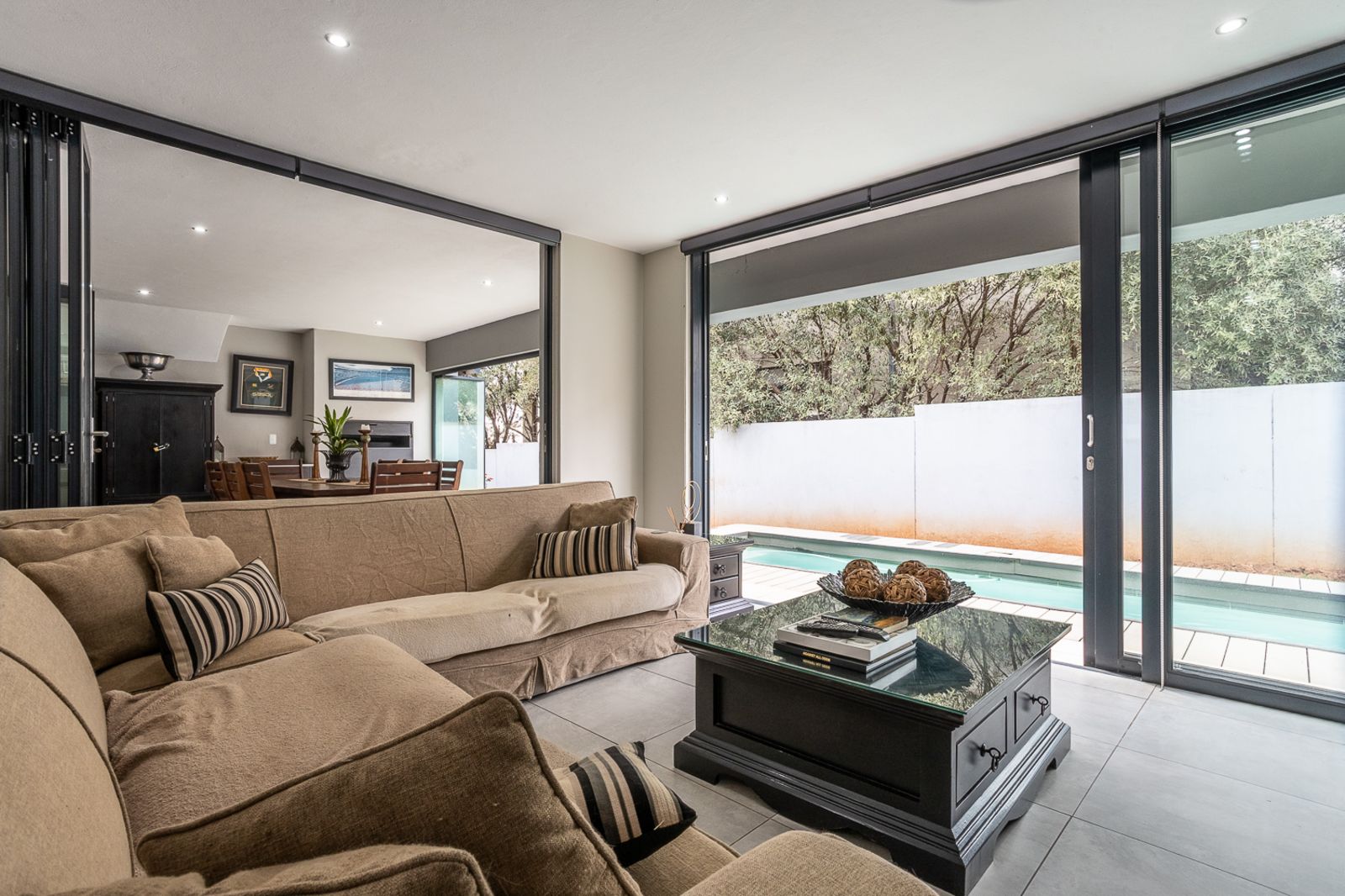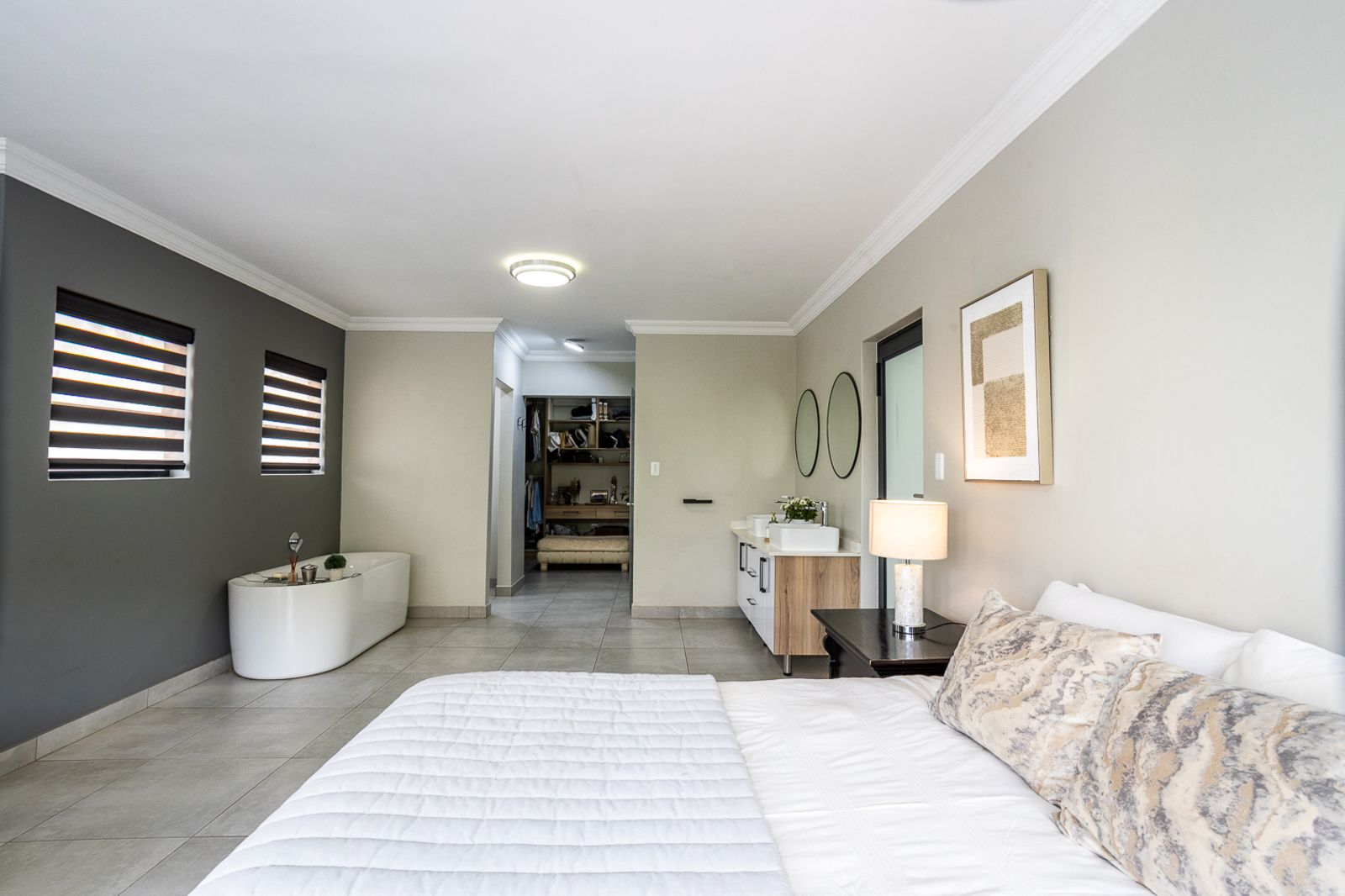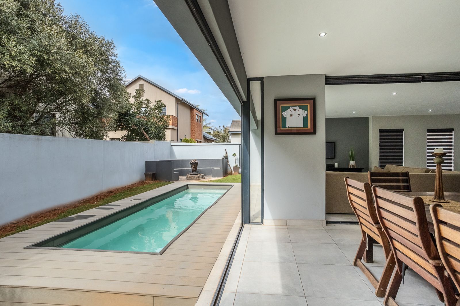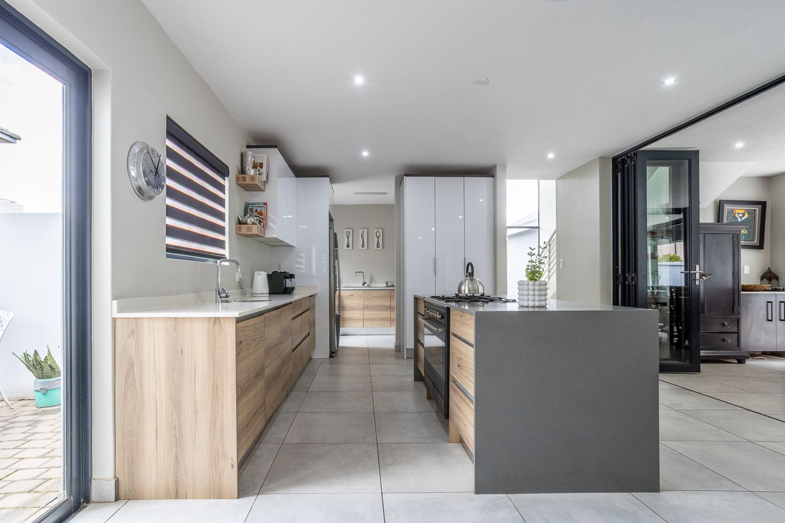 Step outside to a stylish covered patio with frameless glass stacking doors, creating a seamless flow between indoor and outdoor spaces. The built-in braai, landscaped garden, and sparkling swimming pool make this an entertainer’s dream.