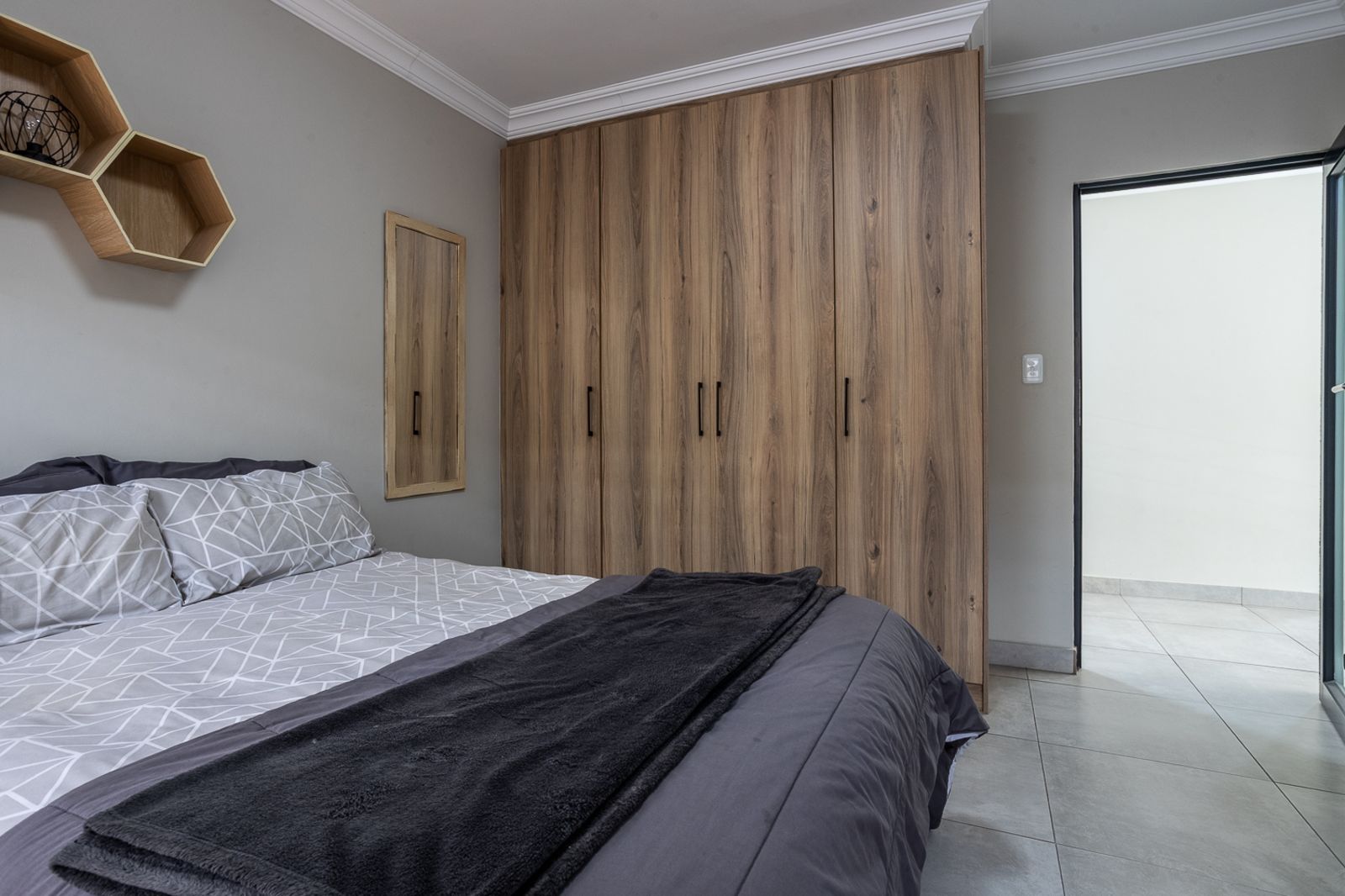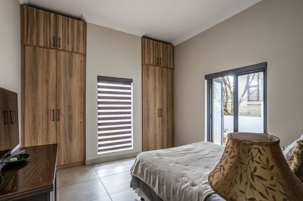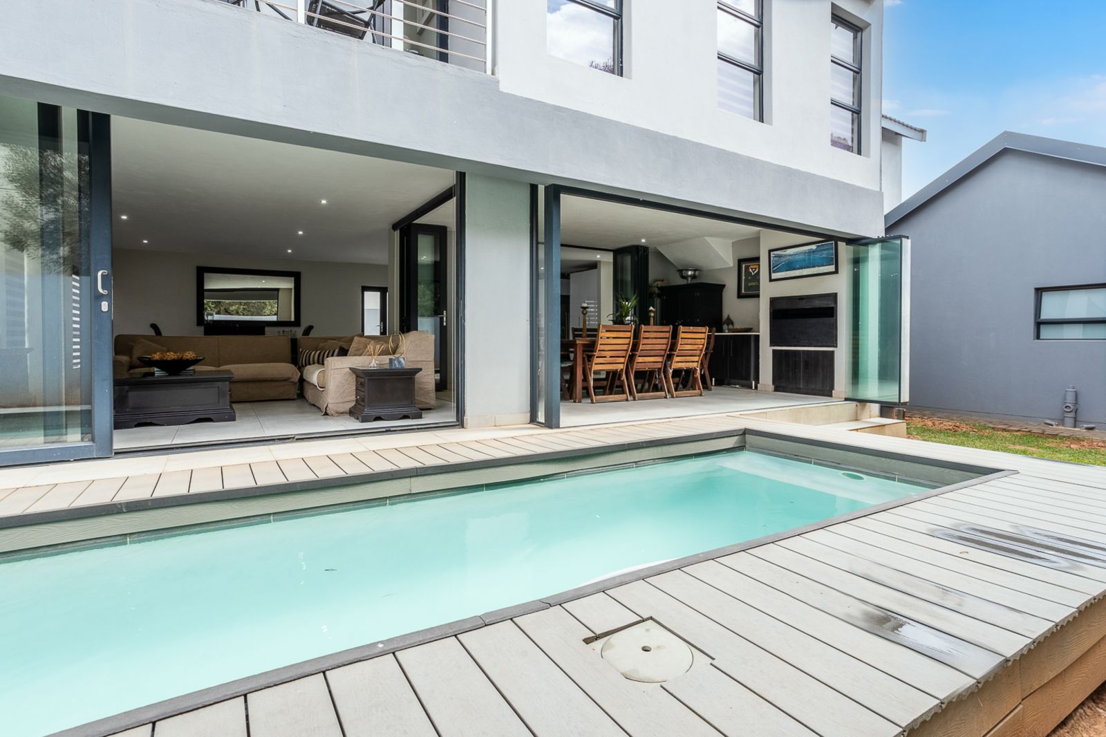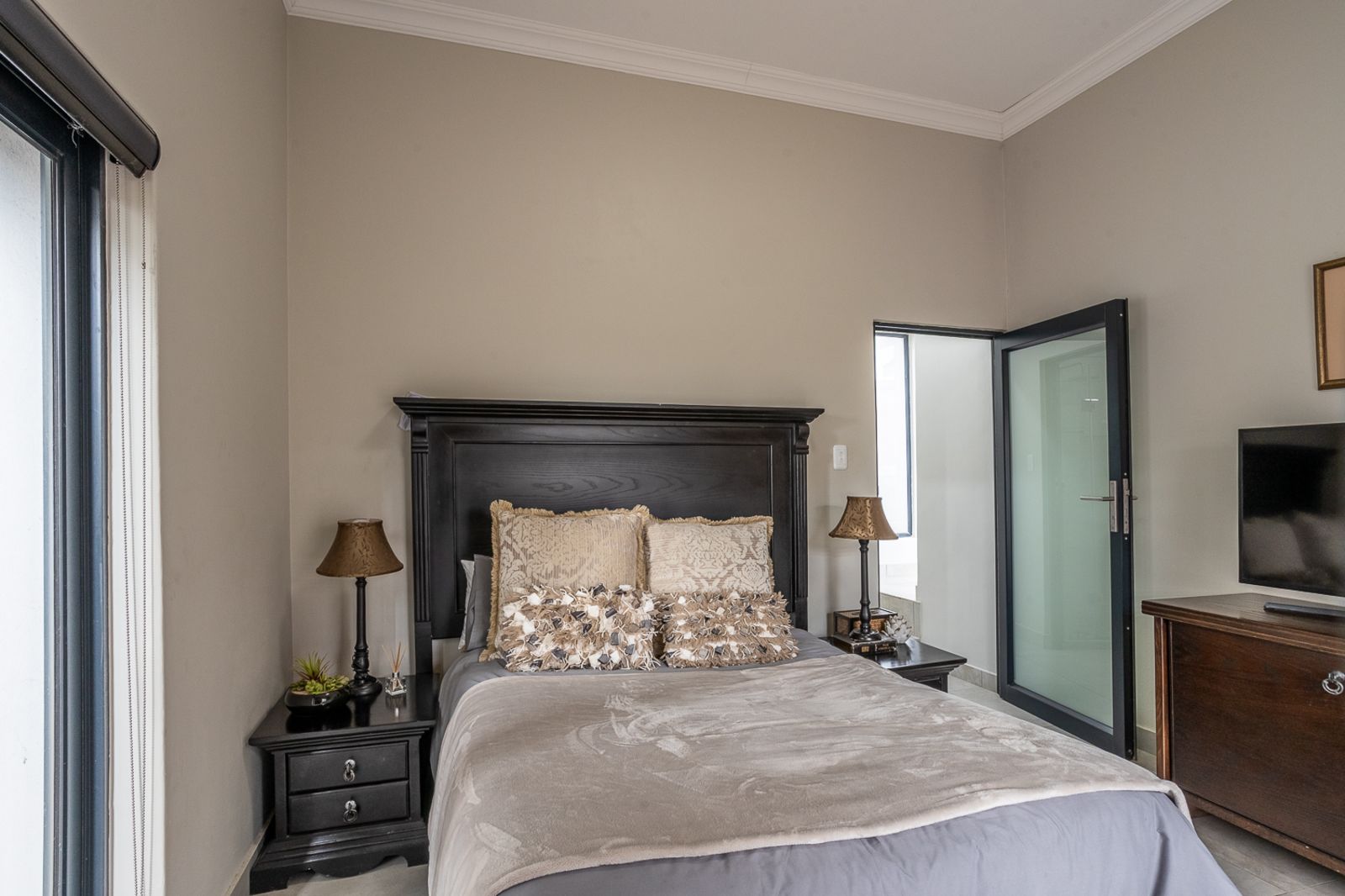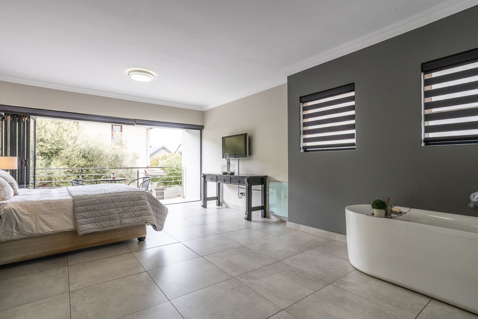 Step outside to a stylish covered patio with frameless glass stacking doors, creating a seamless flow between indoor and outdoor spaces. The built-in braai, landscaped garden, and sparkling swimming pool make this an entertainer’s dream.