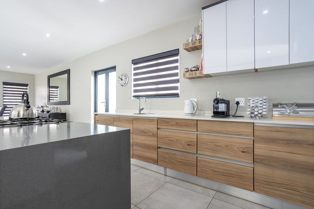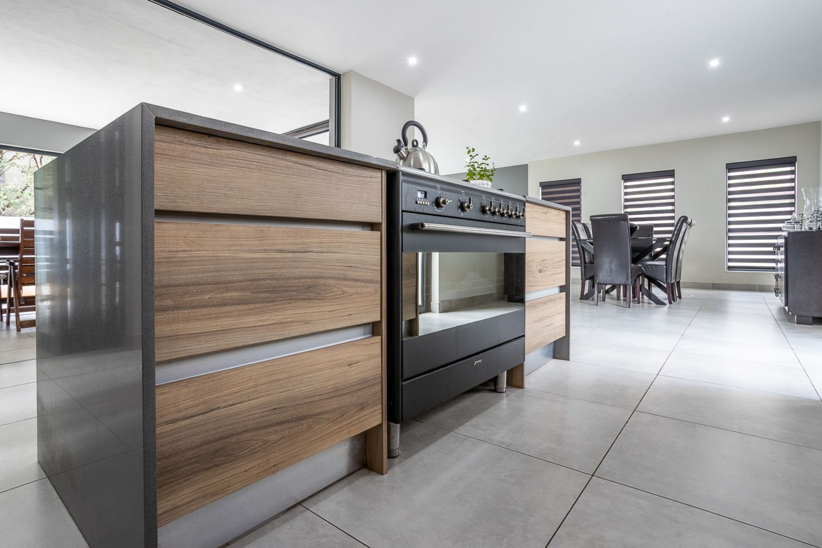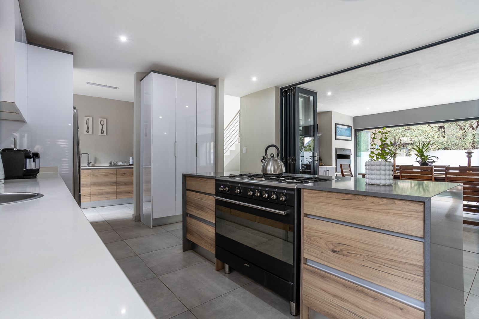The modern kitchen is a chef’s dream, featuring a large centre island, walk-in pantry, and separate scullery, all designed for both functionality and style.