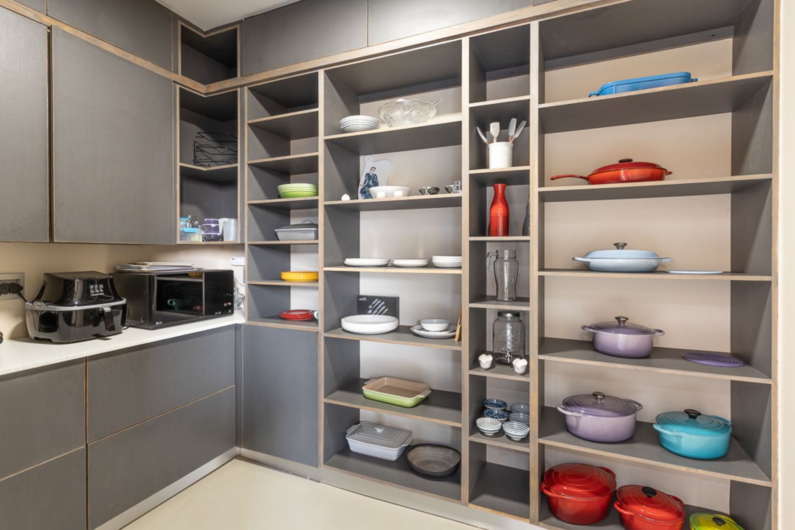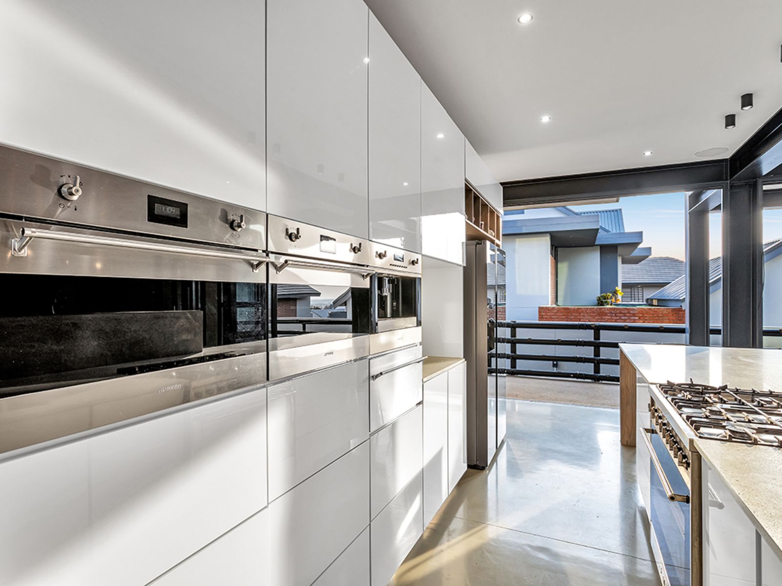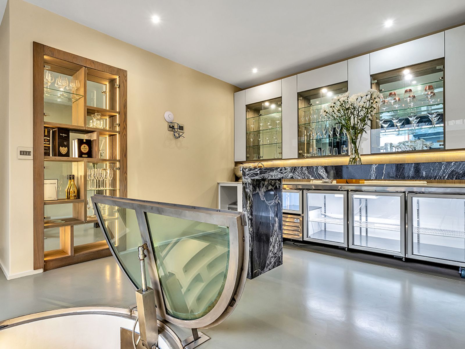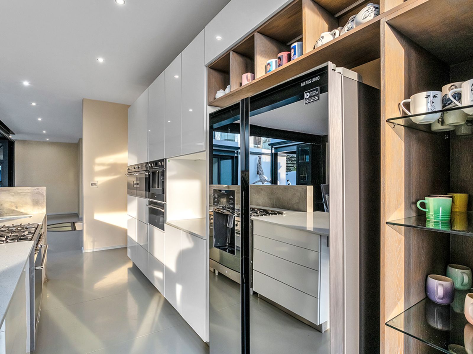 Culinary enthusiasts will fall in love with the gourmet kitchen, boasting a premium Smeg gas stove, built-in microwave, coffee maker, and kitchenette. A scullery, pantry, and laundry with a laundry chute add to the home's functionality, while a wine cellar and hidden storeroom provide smart storage solutions.