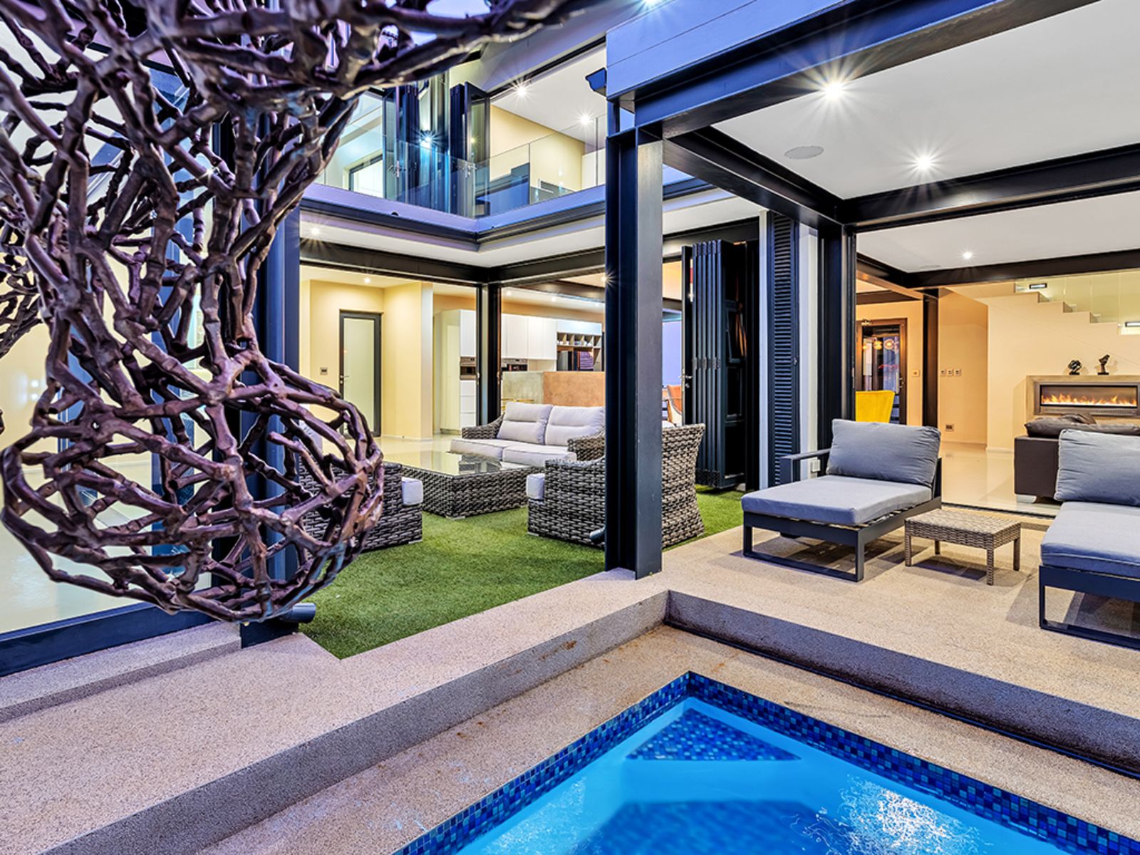 This eco-conscious home also comes equipped with 8 solar panels, an 8.8kVA SunSync inverter, 2 JoJo water tanks, and a borehole—ensuring off-grid capability and sustainability.