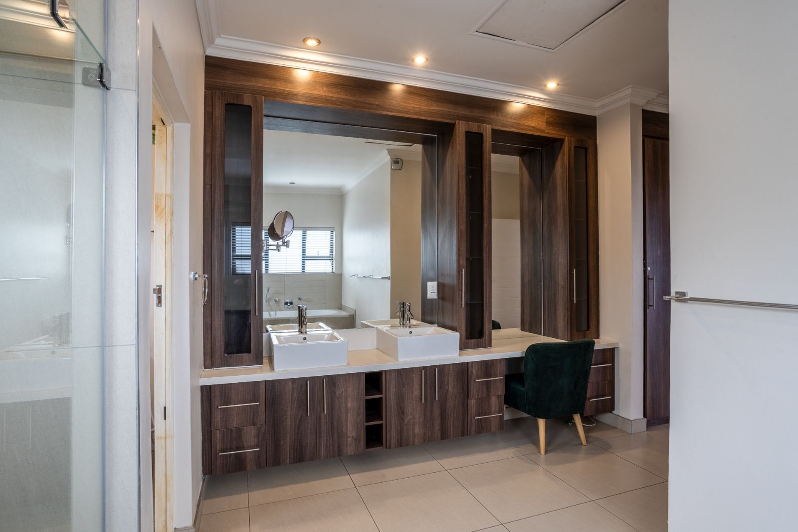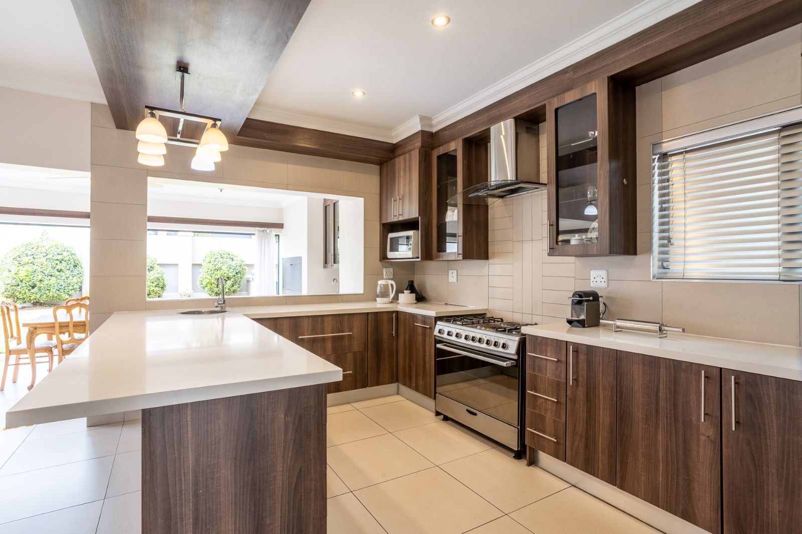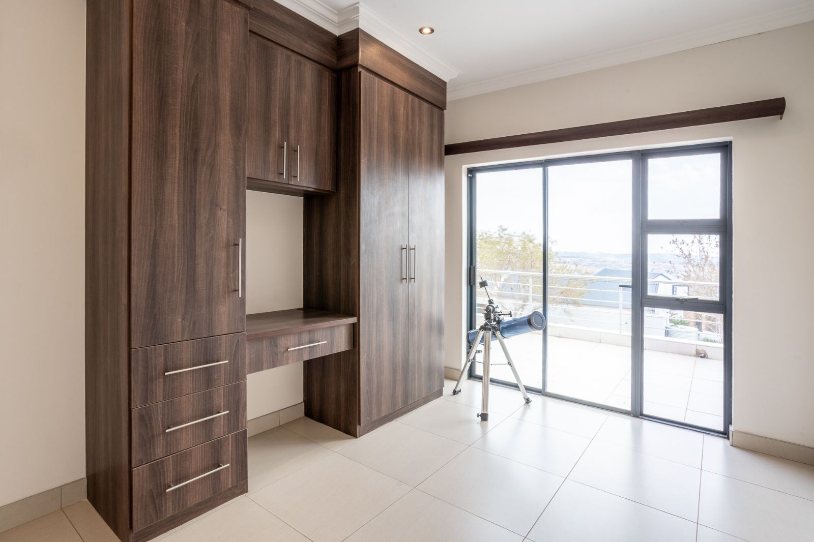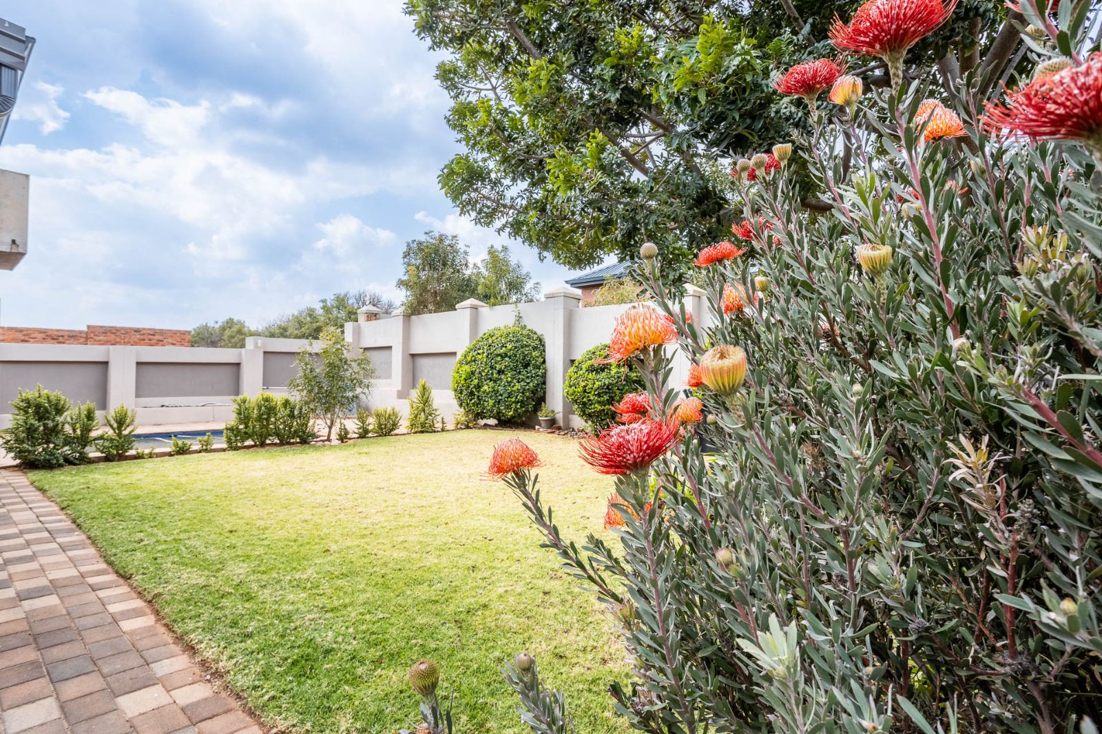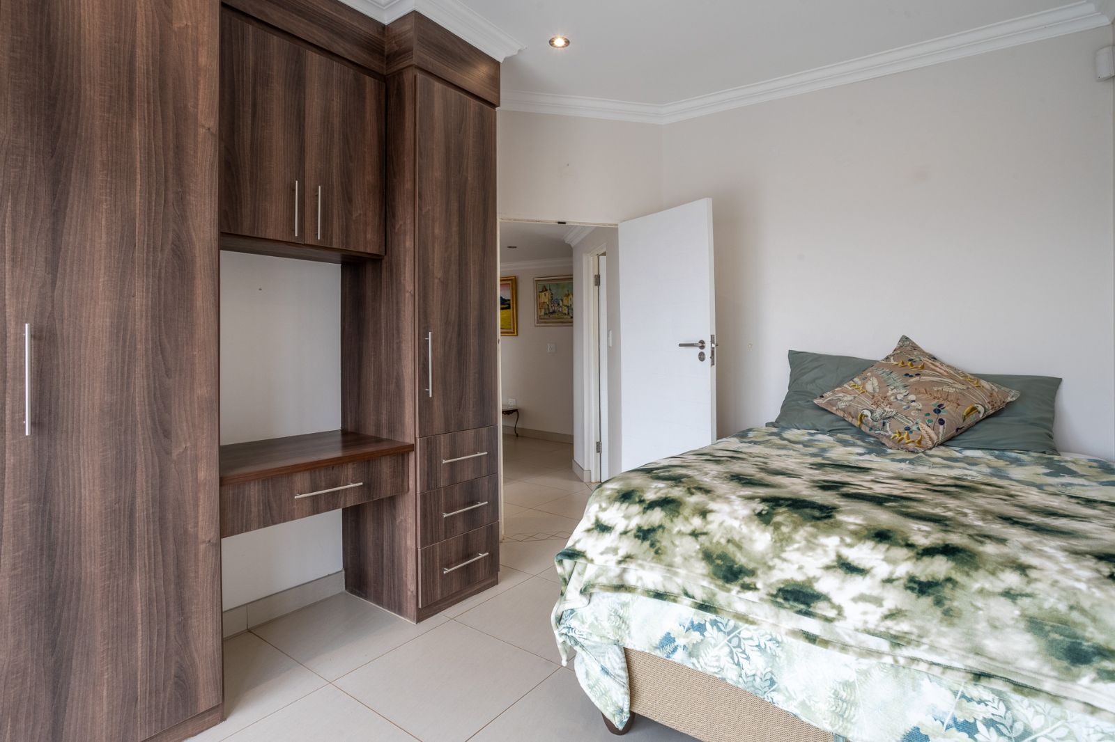 A highlight of this home is the enclosed patio with stack doors and a built-in braai, creating a versatile all-season entertainment space. Open the doors to extend your living area to the boma, sparkling pool, and landscaped garden—perfect for relaxed evenings or entertaining under the stars.