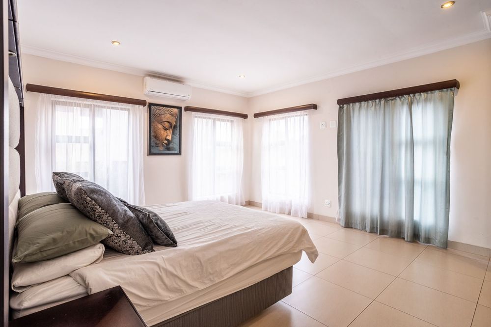 Upstairs, the main bedroom is a luxurious retreat, featuring an air conditioner and a custom dressing table in the en-suite bathroom. The two additional upstairs bedrooms each enjoy access to their own private balconies, providing elevated views and plenty of natural light.