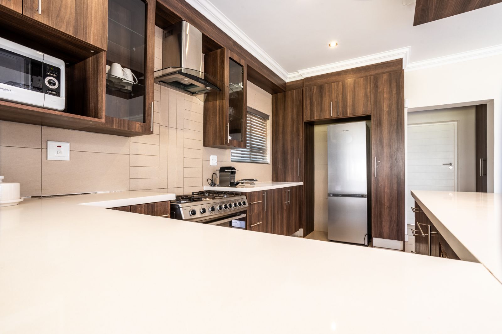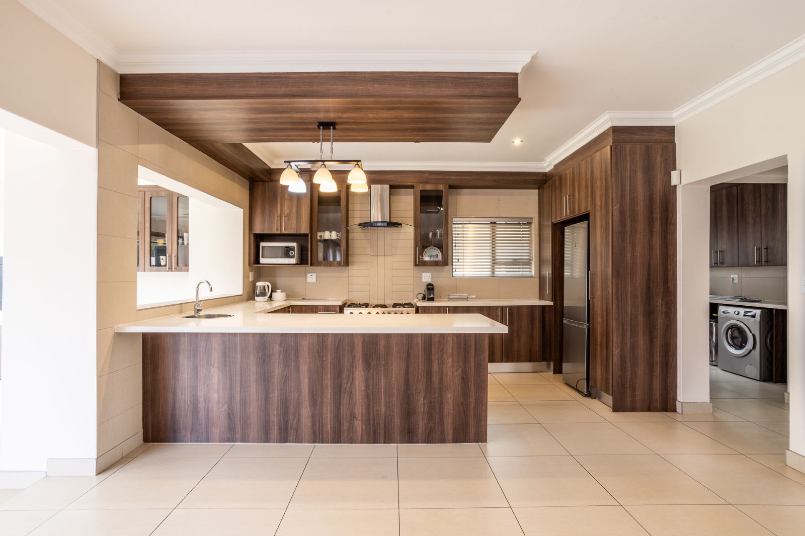The modern kitchen is both stylish and functional, complete with a walk-in pantry, scullery, and laundry room. Whether you're cooking for two or ten, this kitchen has everything you need.
