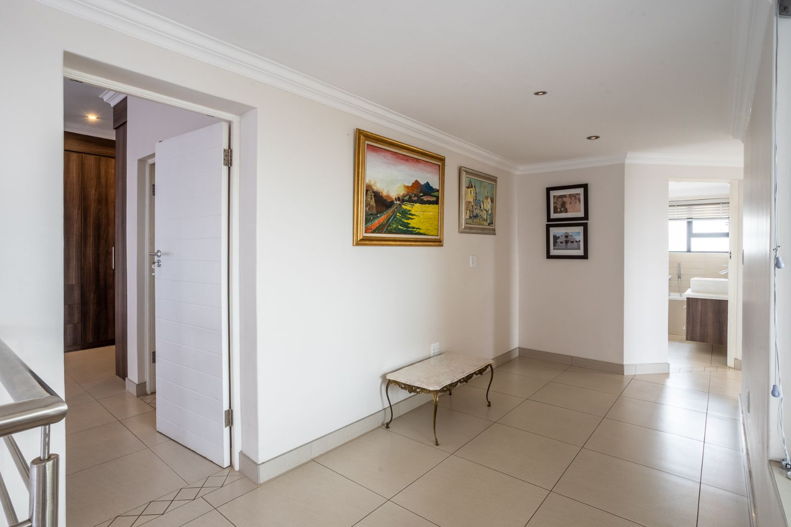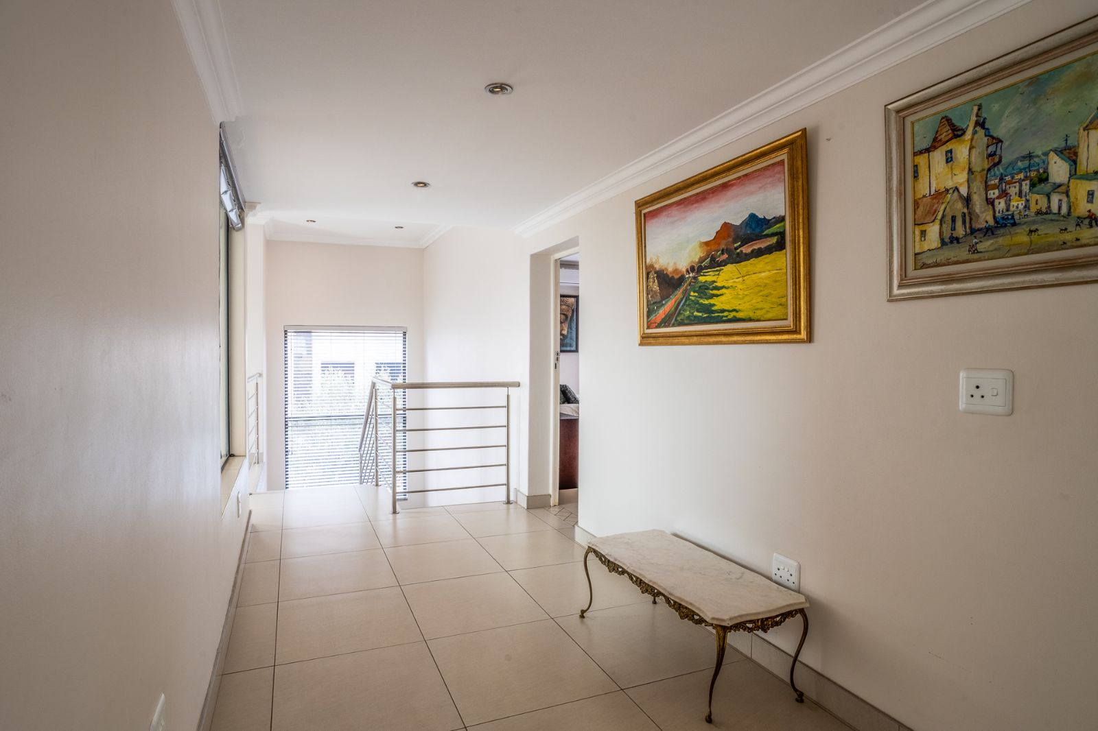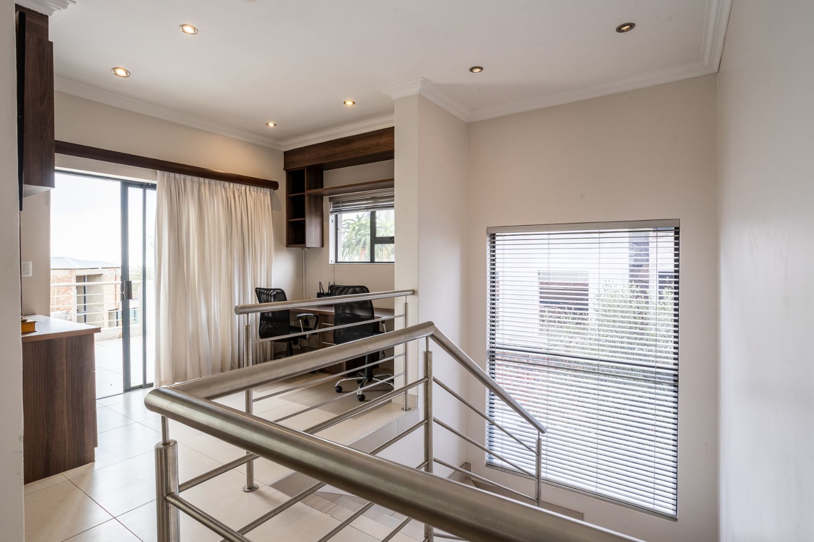 A convenient study nook is located at the top of the stairs—ideal for working from home, studying, or reading. This open-plan workspace also features access to a private patio, adding a tranquil outdoor touch to your workday.