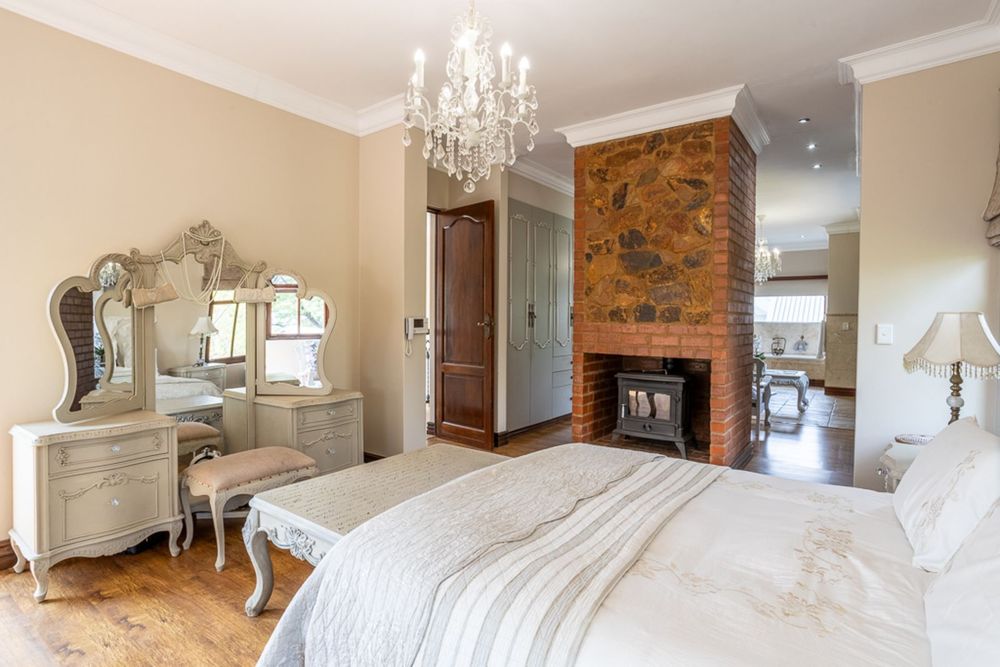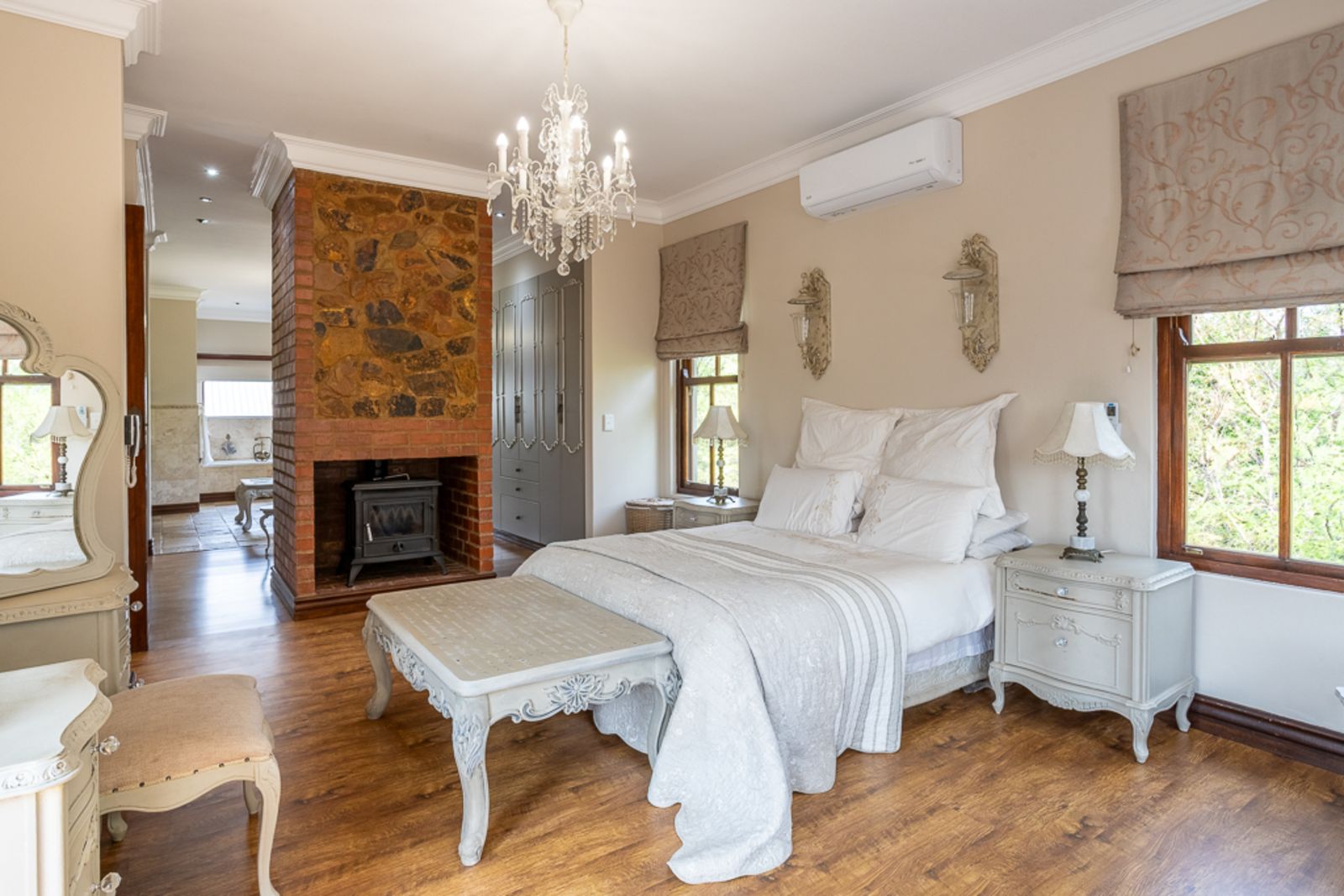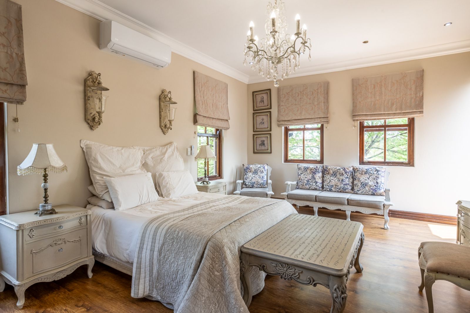 The main suite is a luxurious haven with its own fireplace, air conditioning, walk-in wardrobe, and a beautifully appointed ensuite. Step out onto your private balcony overlooking the pool and lush garden.