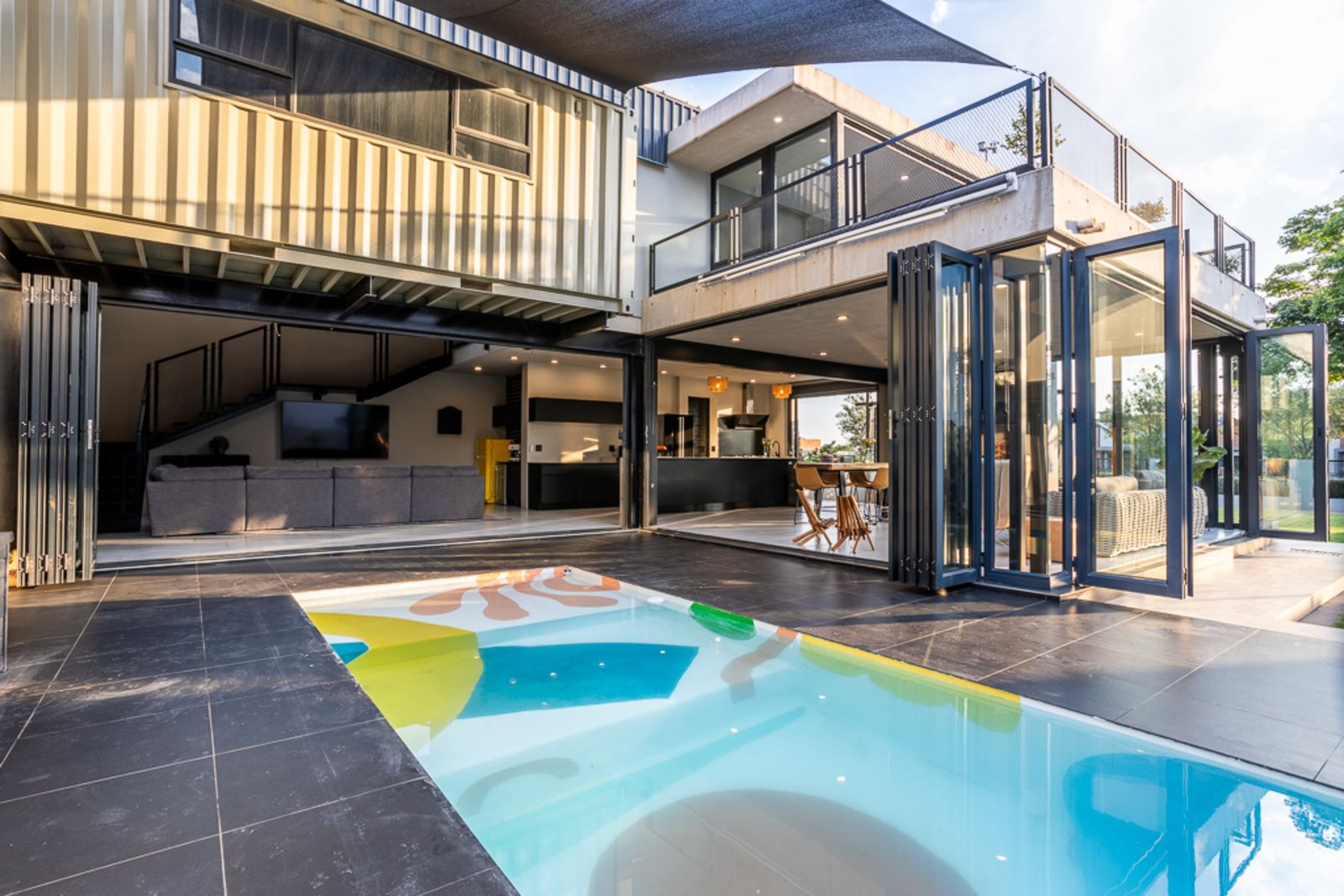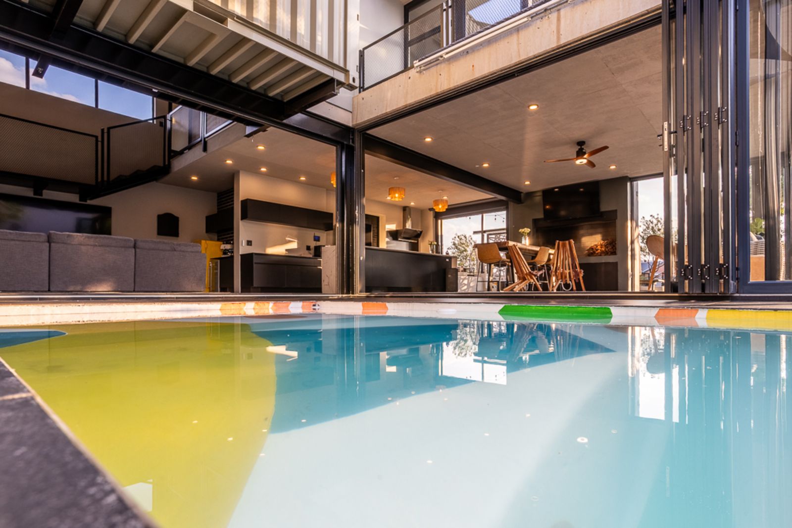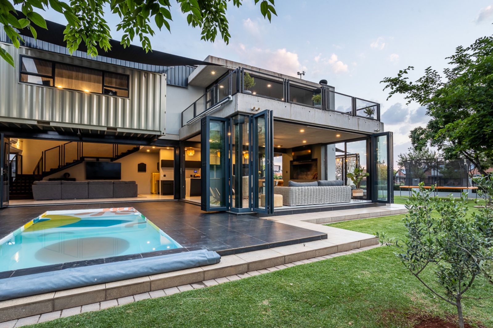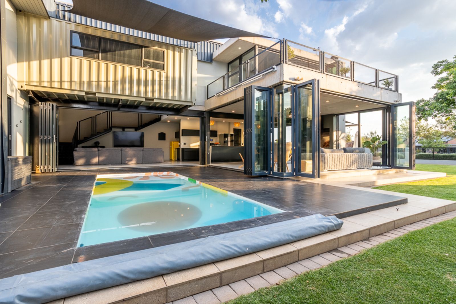 Two upstairs bedrooms share a private balcony, perfect for enjoying sunsets and estate views.