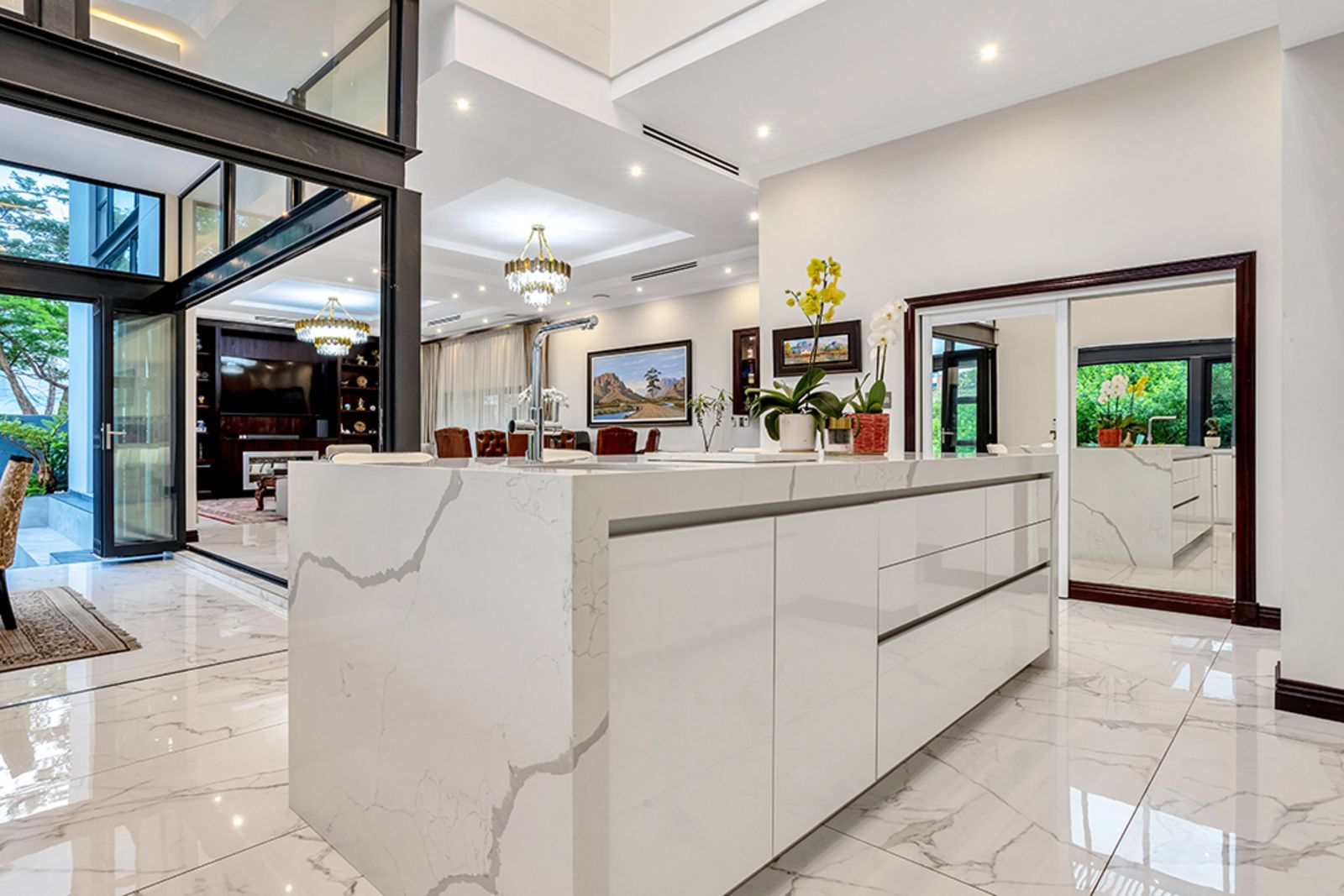 Open-Plan Living – Flowing layout with a stylish TV lounge, two separate dining areas, and high ceilings enhancing the sense of space and light.
