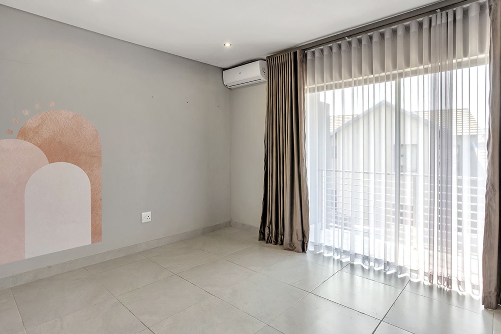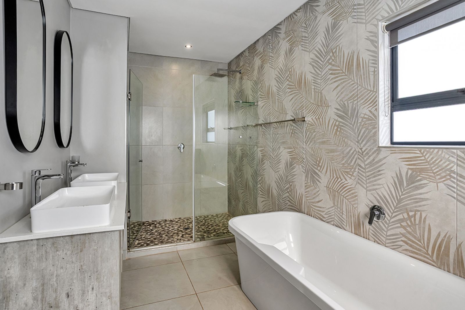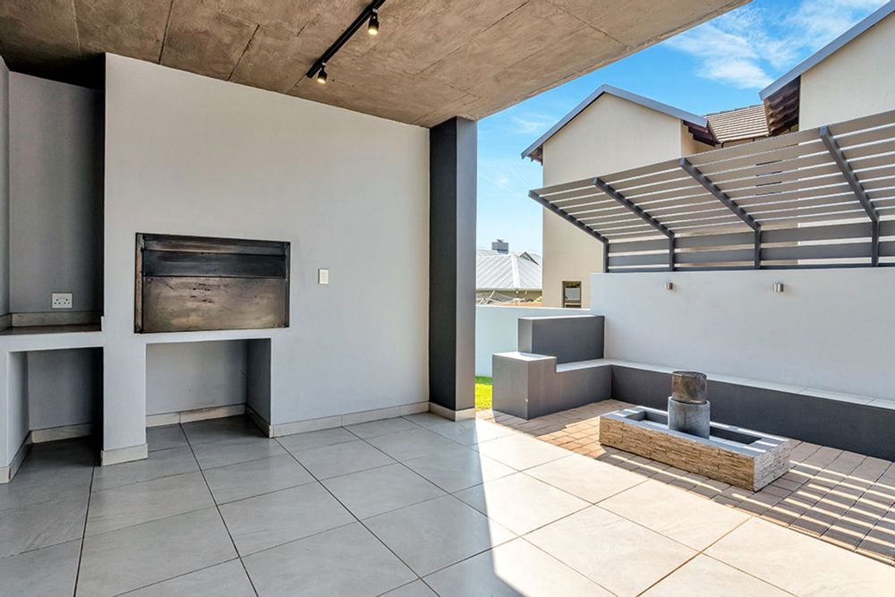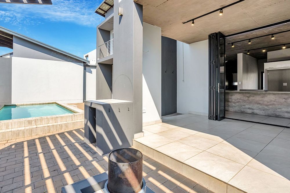 Enjoy outdoor living all year round with a spacious patio, built-in braai, and a welcoming boma area overlooking the heated swimming pool. The landscaped garden is designed for minimal upkeep and includes an automated irrigation system, staff quarters, and an exterior bathroom.