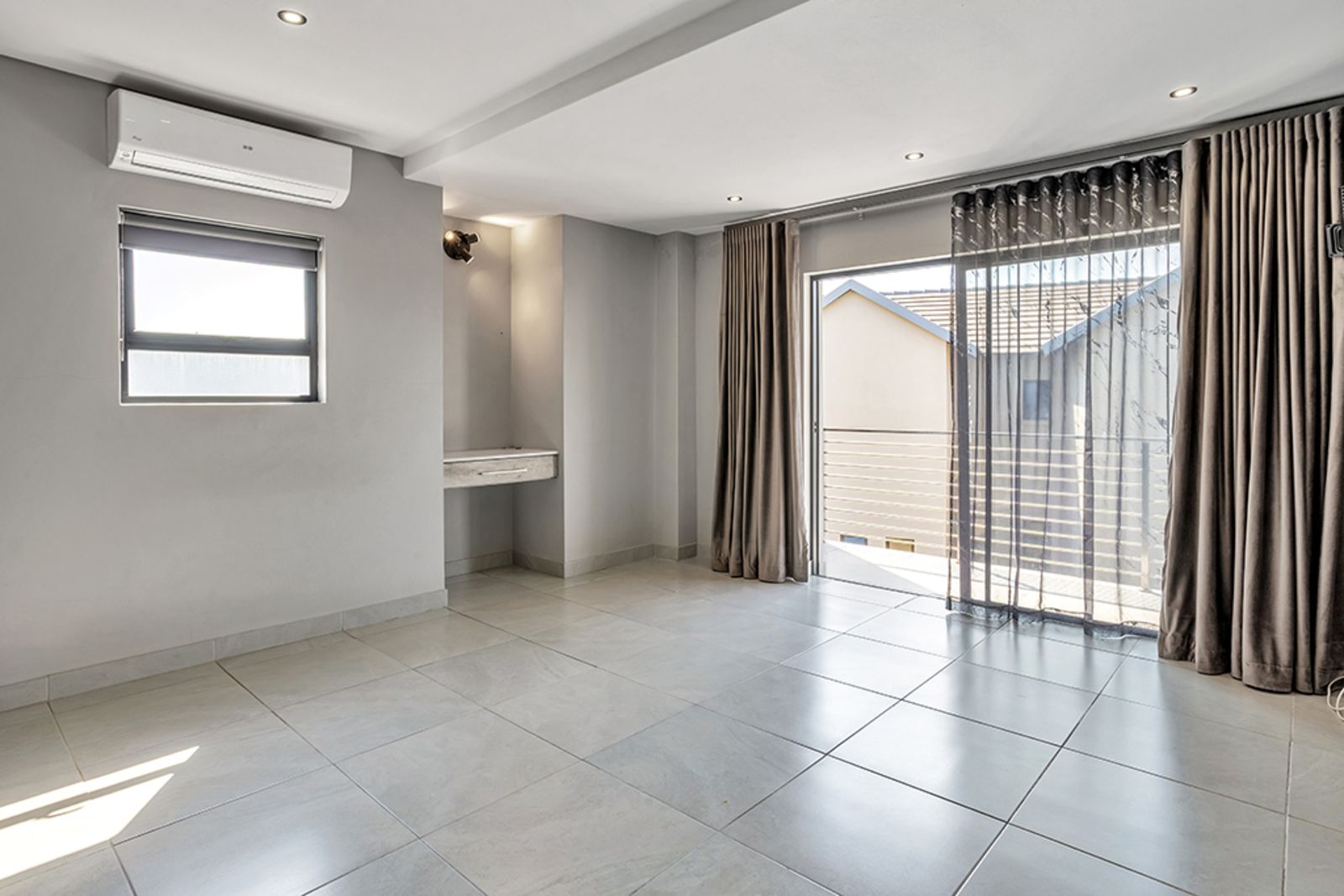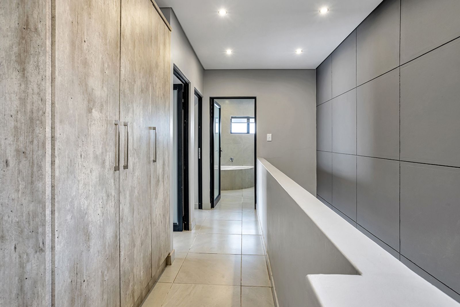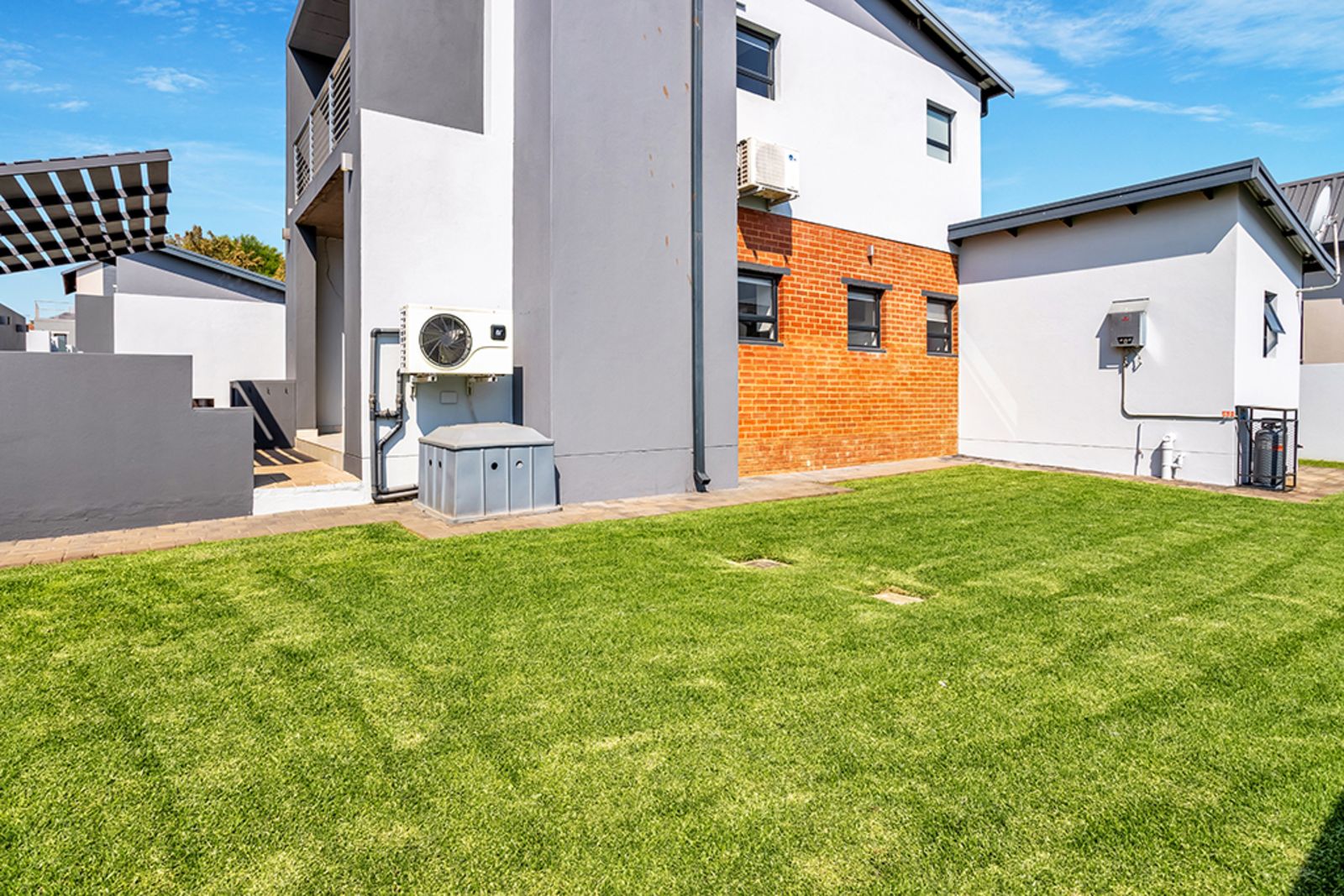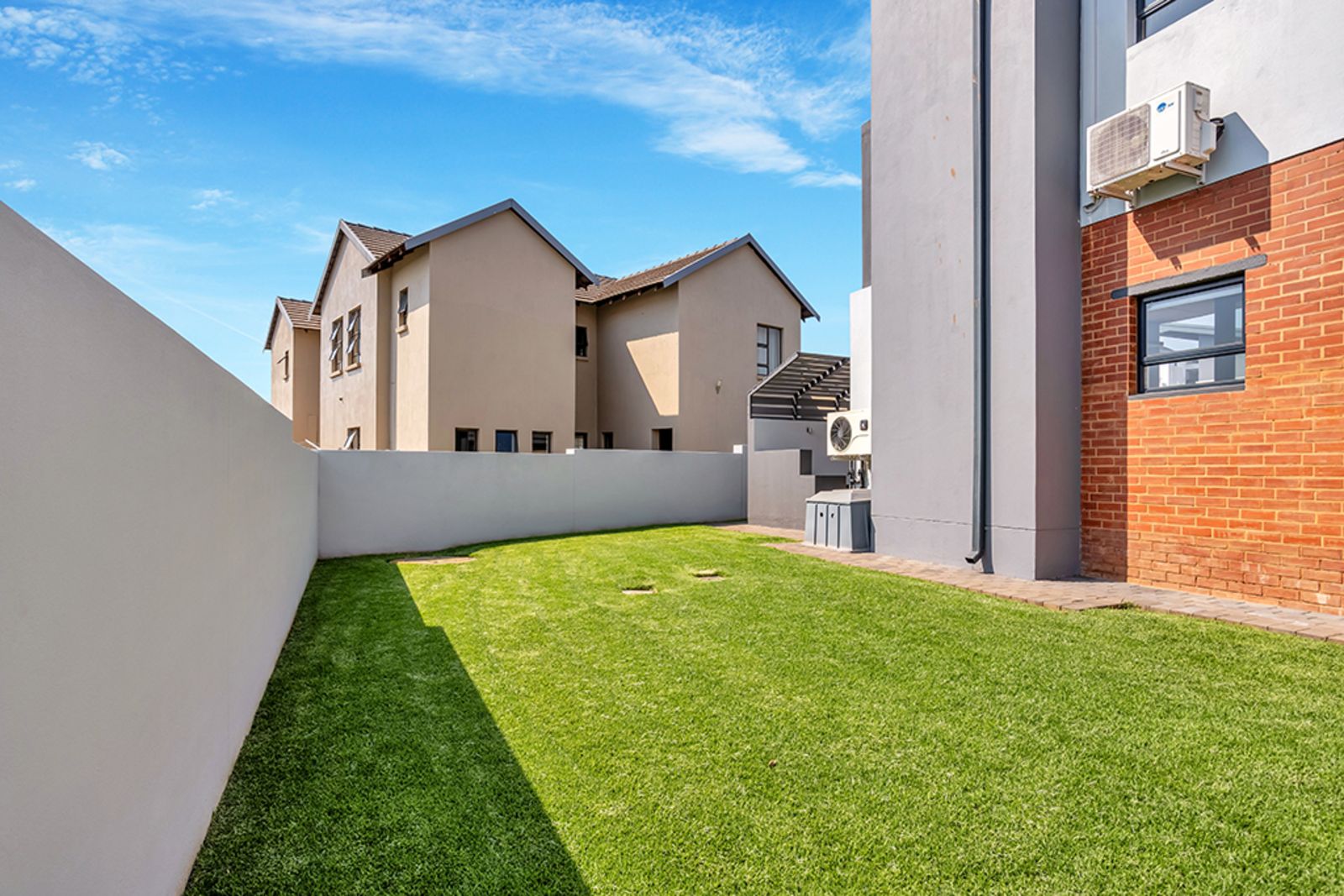 Enjoy outdoor living all year round with a spacious patio, built-in braai, and a welcoming boma area overlooking the heated swimming pool. The landscaped garden is designed for minimal upkeep and includes an automated irrigation system, staff quarters, and an exterior bathroom.