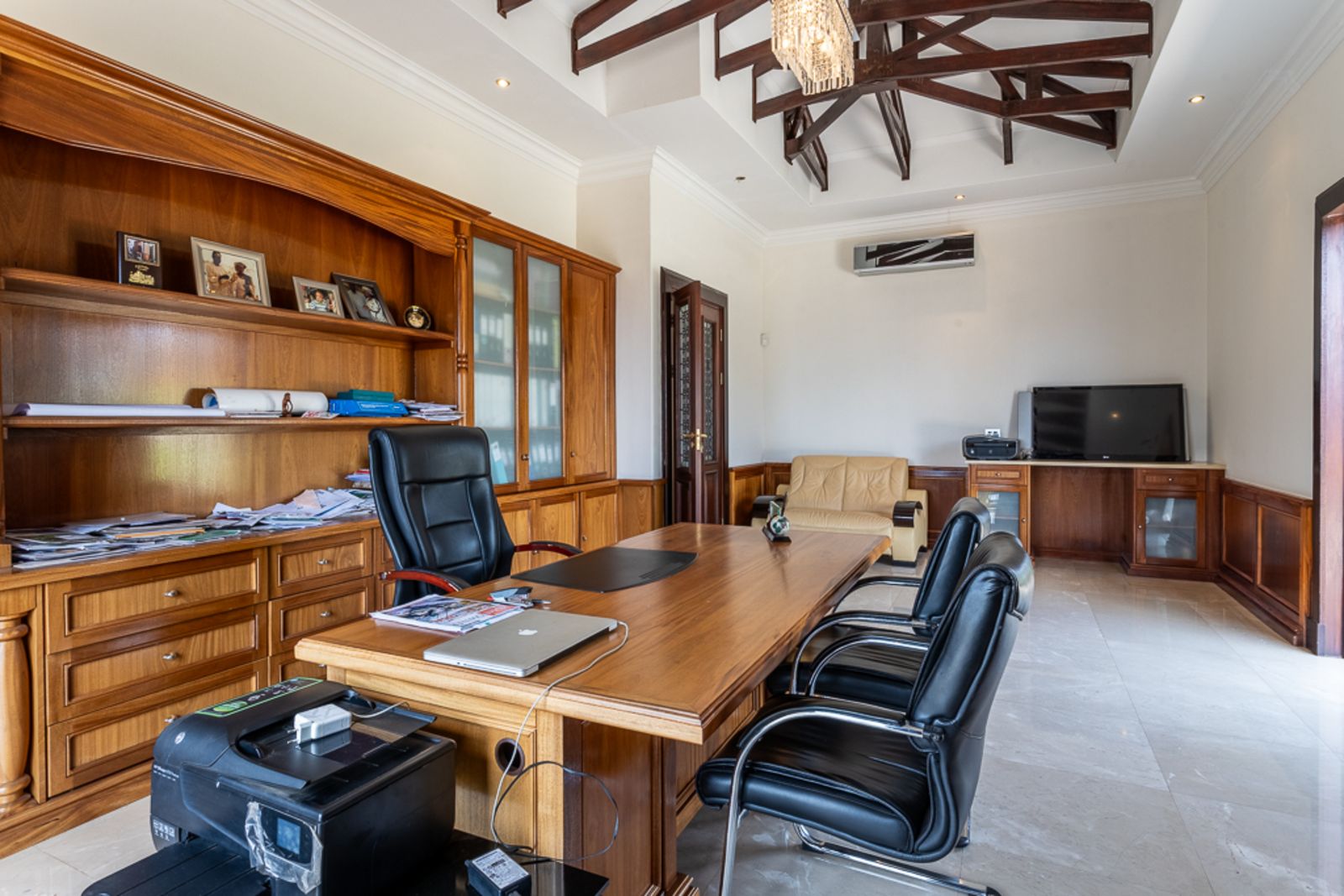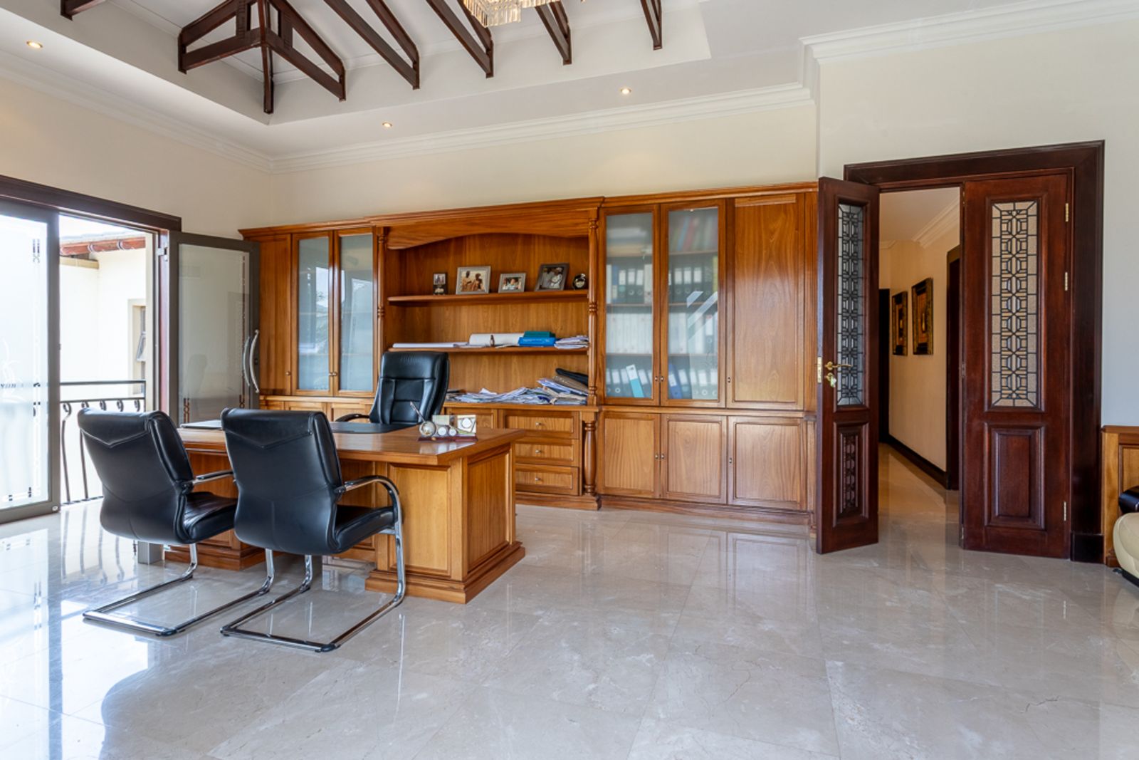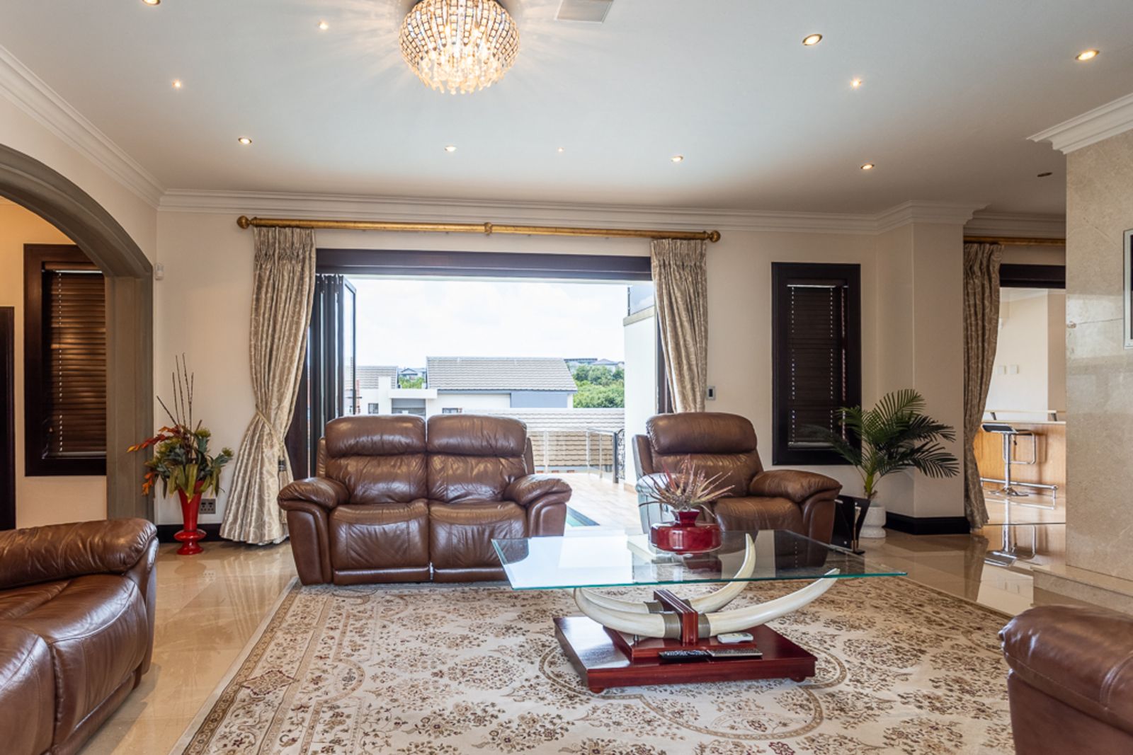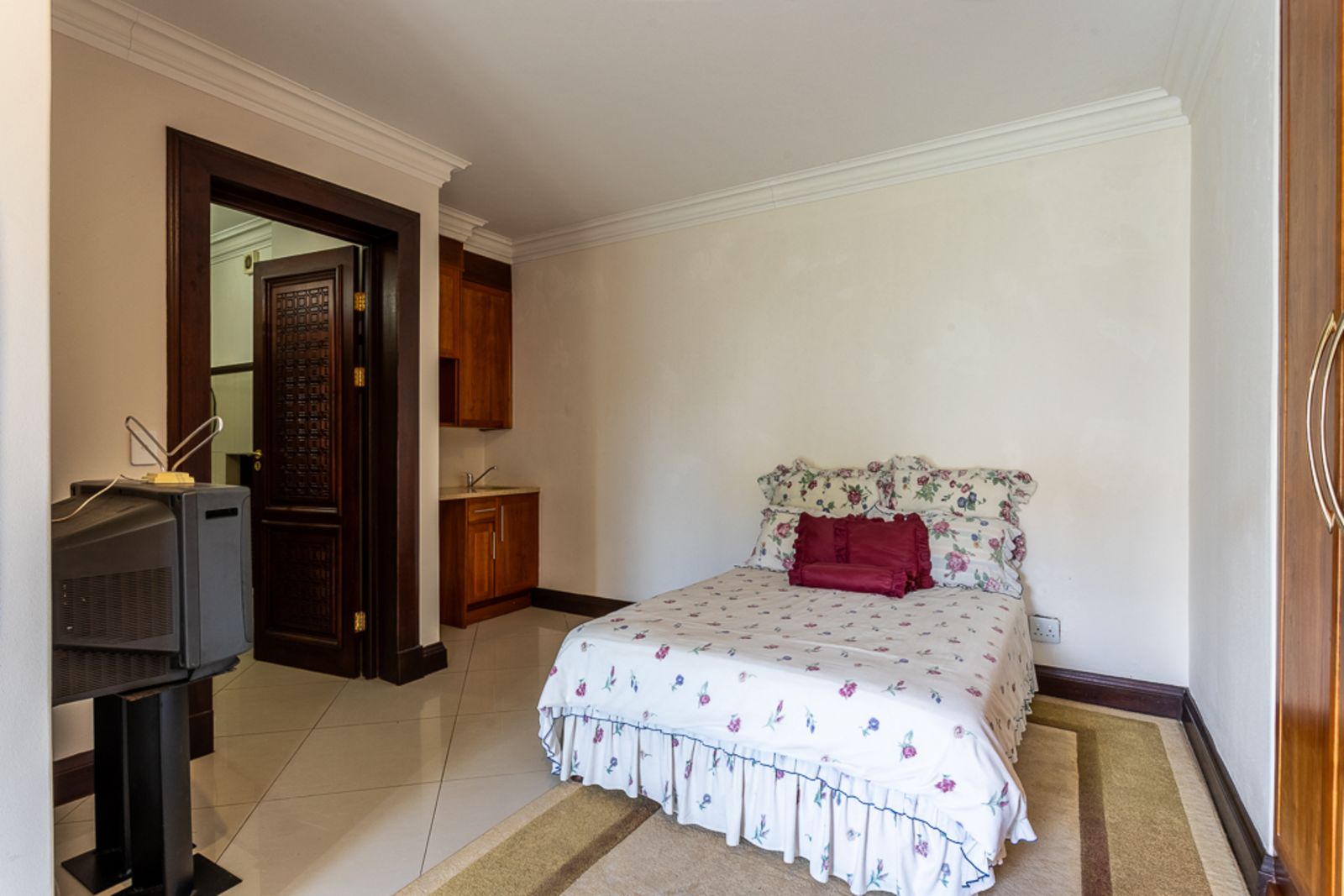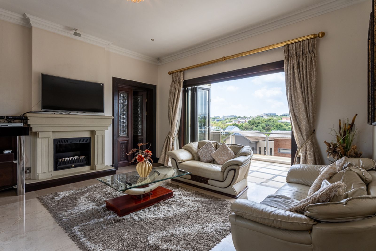 Additional features include air-conditioning in most rooms, two gas fireplaces, underfloor heating in selected areas, two geysers, automated irrigation, storage under the staircase, staff quarters, three garages, and a balcony with beautiful open views.
