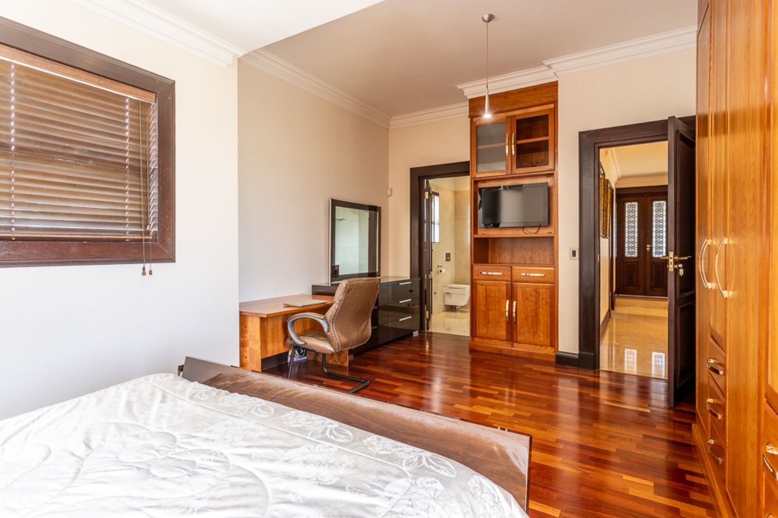 Upstairs features three well-sized bedrooms, each with wooden doors and refined detailing. Two PJ lounges create warm, inviting spaces for family time. The main suite includes a dressing area with solid-wood finishes, while the bathrooms offer heated towel rails and a calm, spa-like feel.
