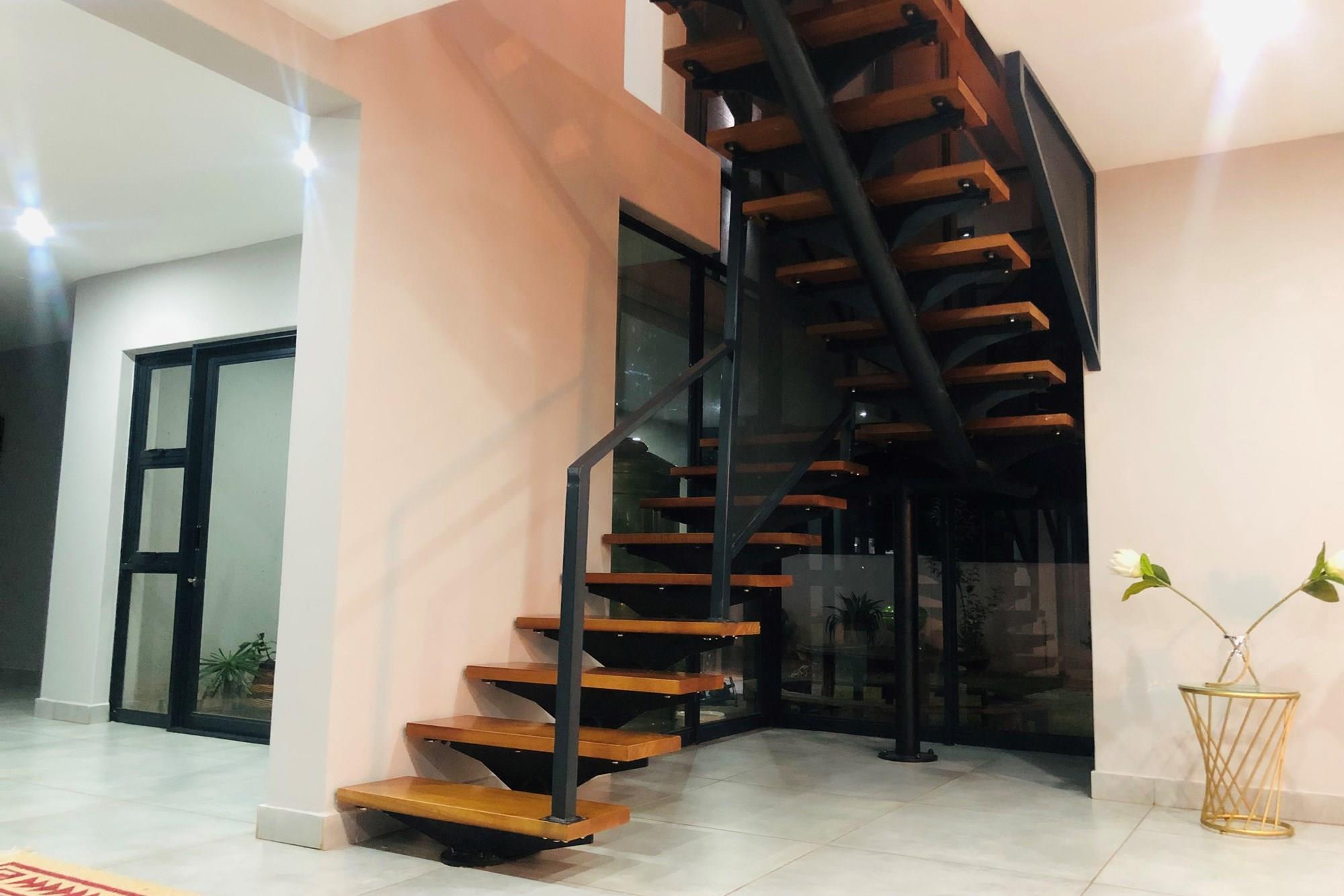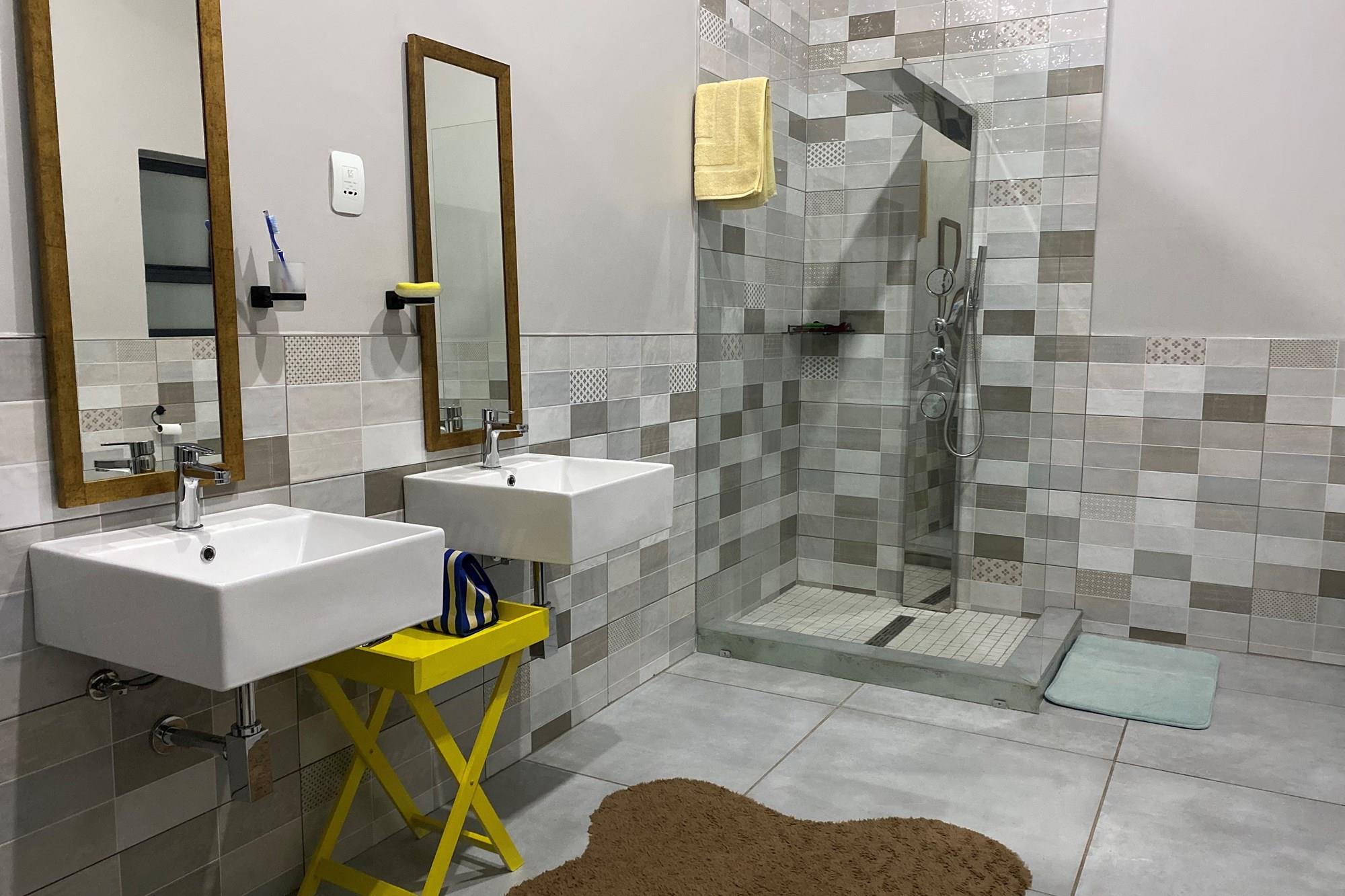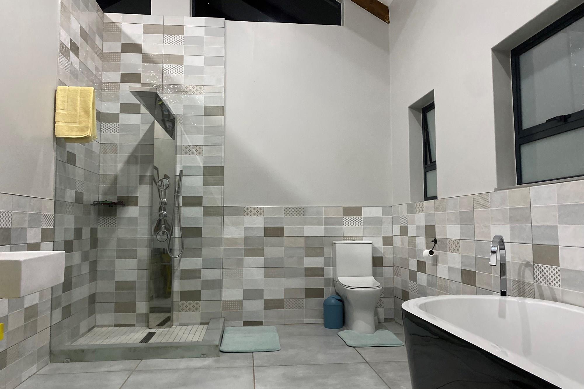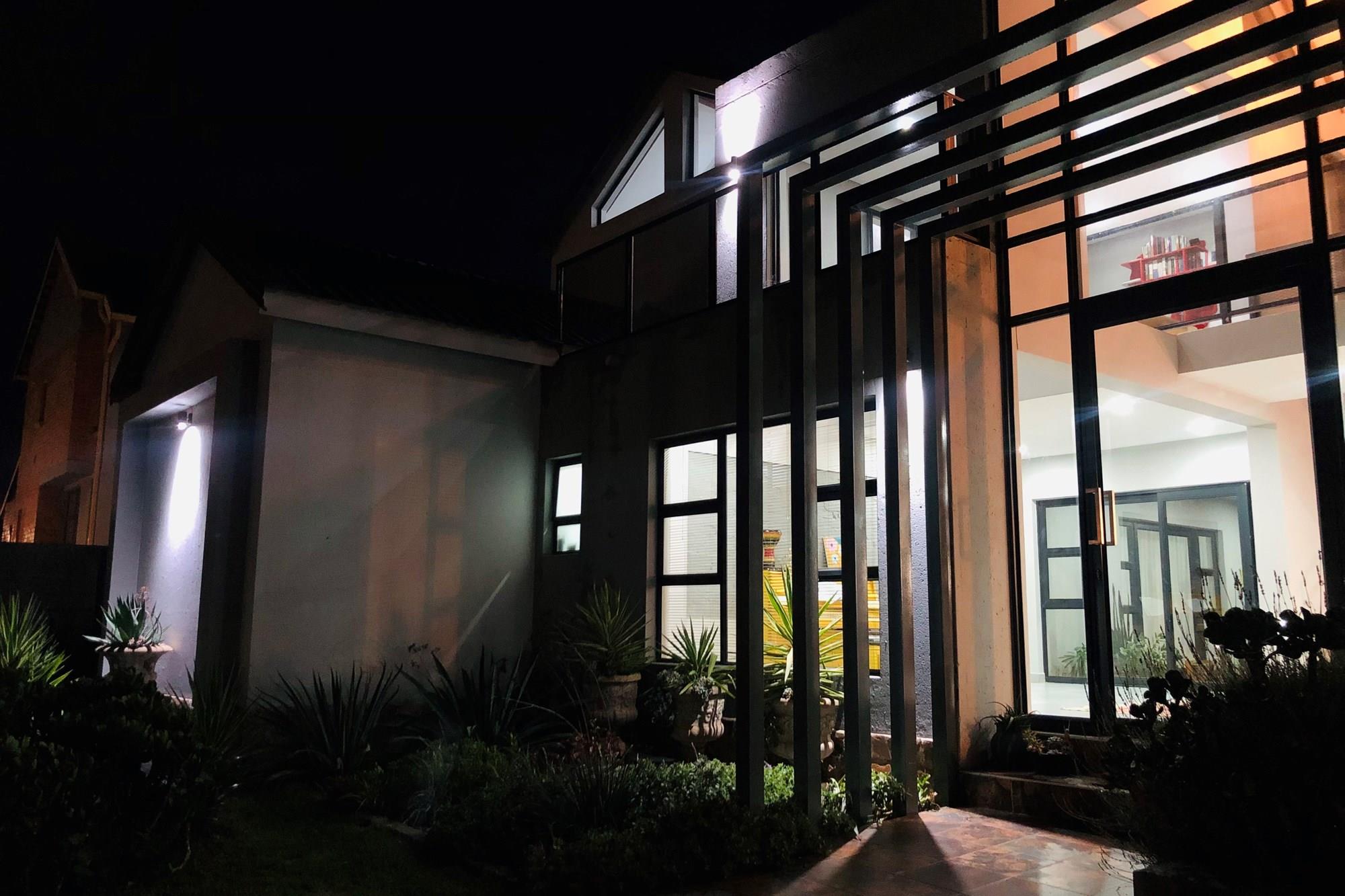 The house boasts a beautifully designed open plan kitchen, complete with a 5 burner gas stove, glass display cupboards and built in ovens, providing the perfect setting for culinary enthusiasts. Additionally, a spacious scullery with a laundry tube and 2 solar geysers of which one is solar powered, promoting energy efficiency and sustainability.