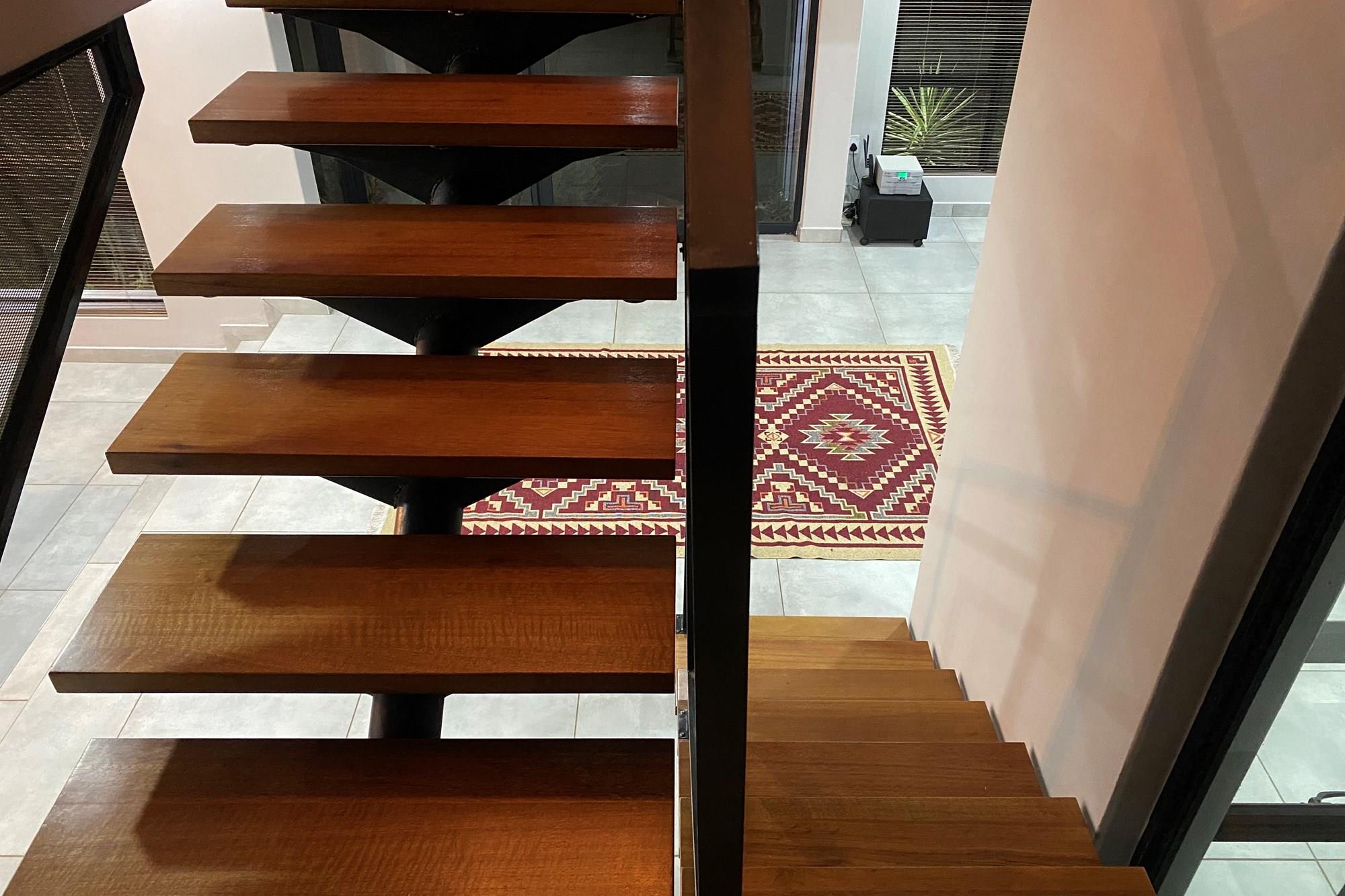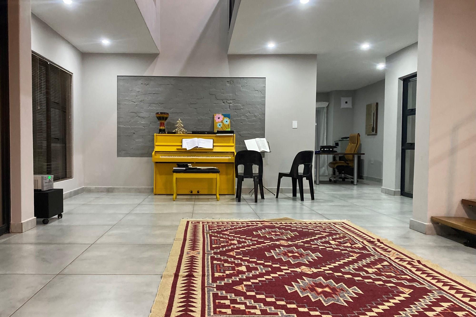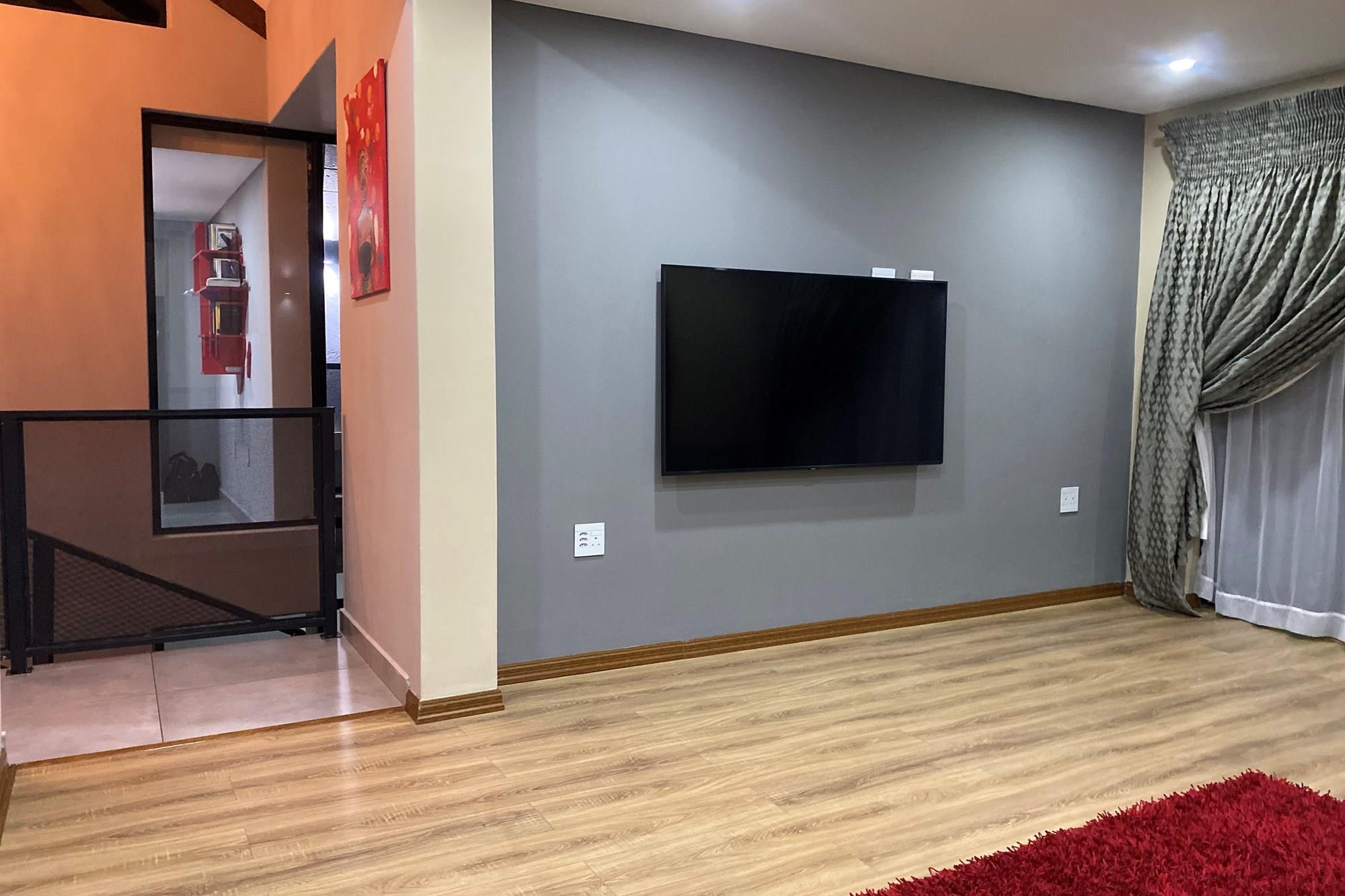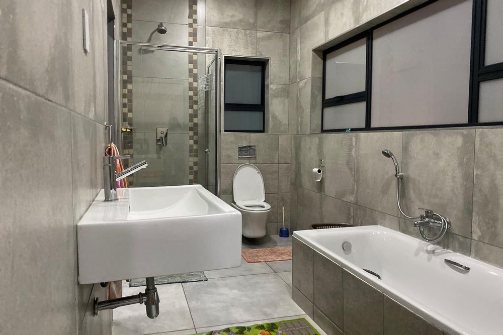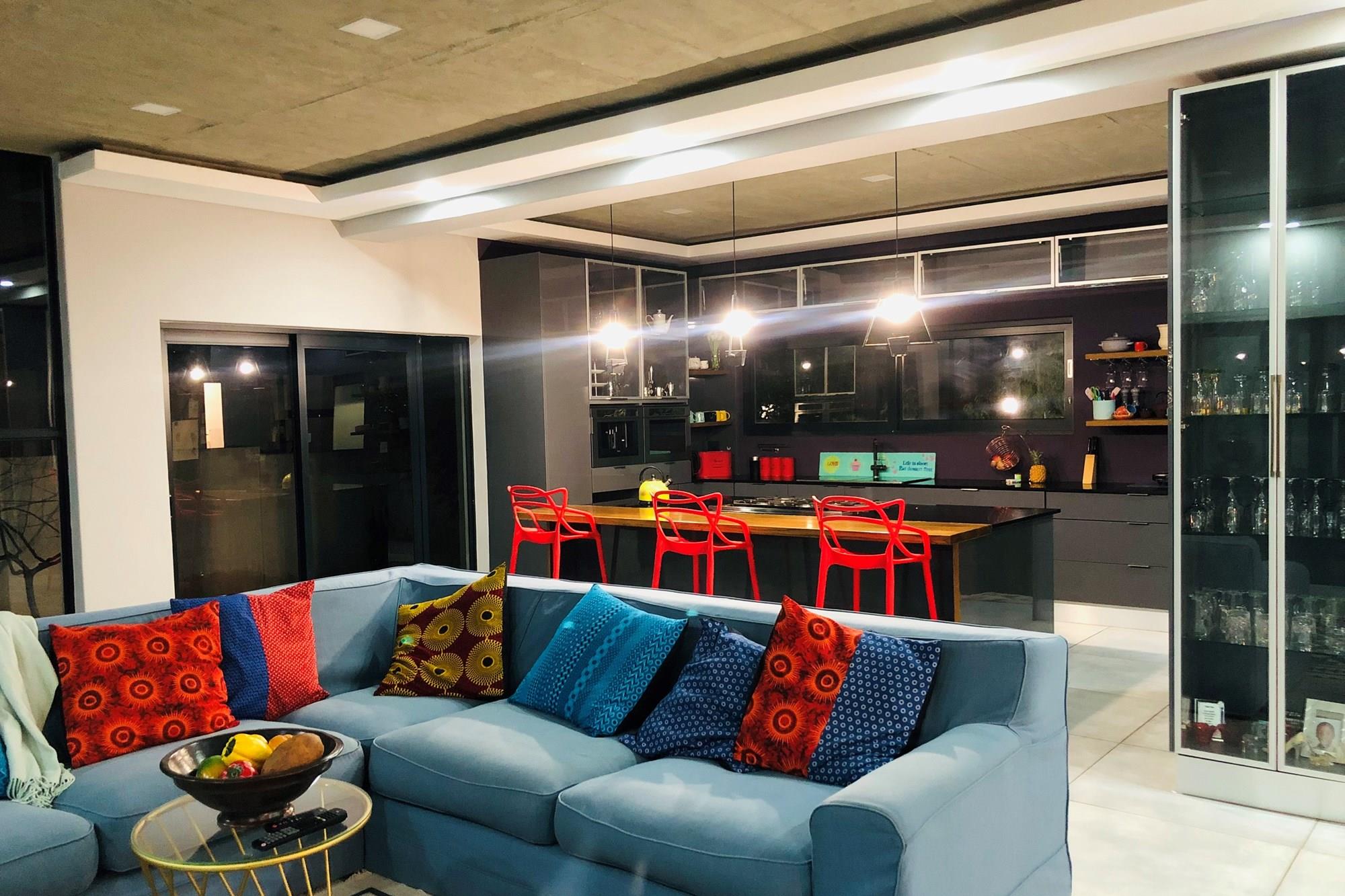 The house boasts a beautifully designed open plan kitchen, complete with a 5 burner gas stove, glass display cupboards and built in ovens, providing the perfect setting for culinary enthusiasts. Additionally, a spacious scullery with a laundry tube and 2 solar geysers of which one is solar powered, promoting energy efficiency and sustainability.