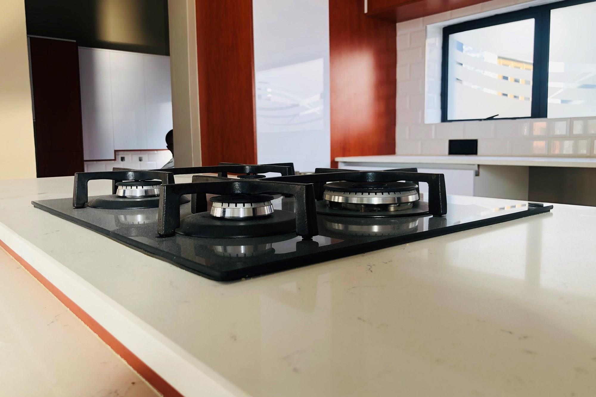 This stunning modern house is designed to provide the perfect combination of comfort and style. As you enter the house, you are greeted by an open and spacious living area that seamlessly flows into the open plan kitchen. The kitchen is equipped with a gas stove, providing a convenient and efficient cooking experience.