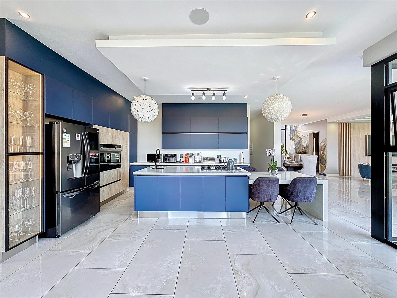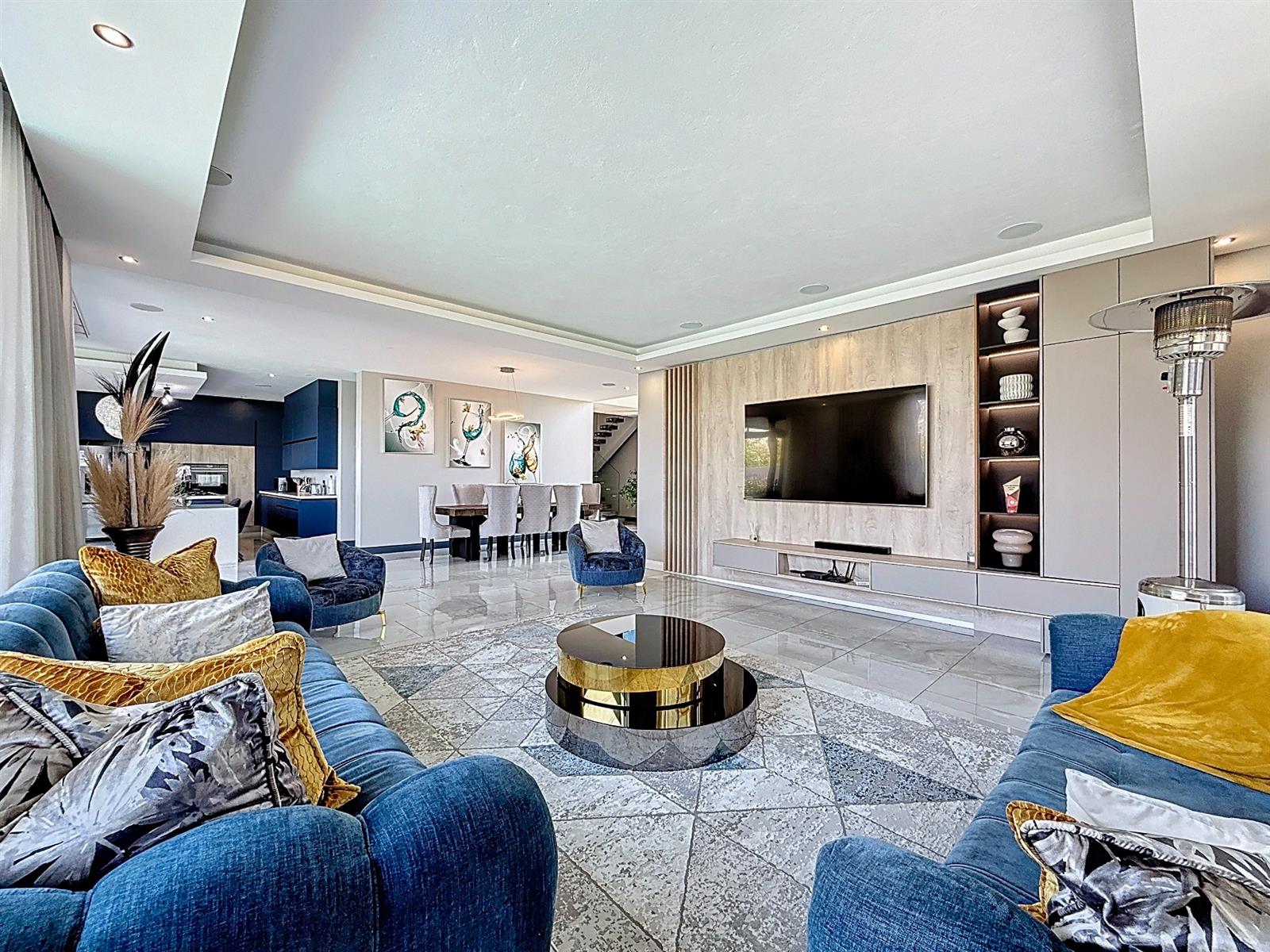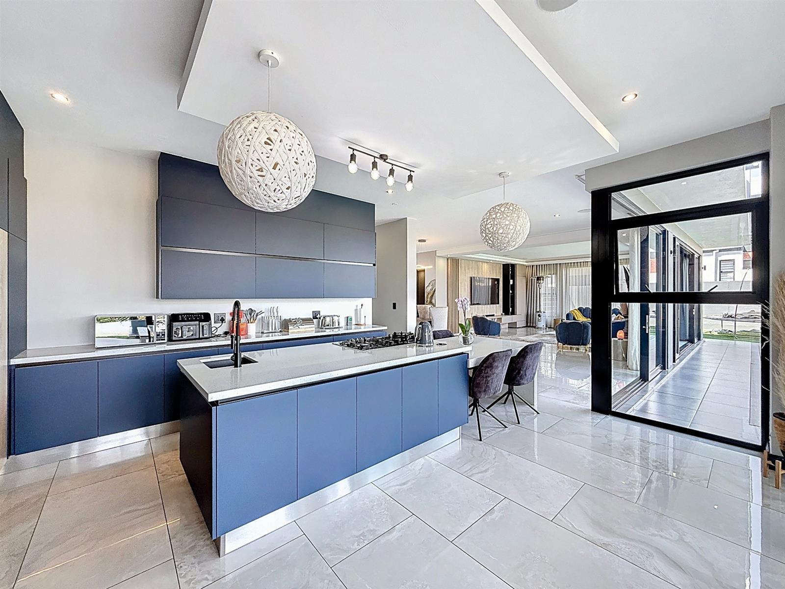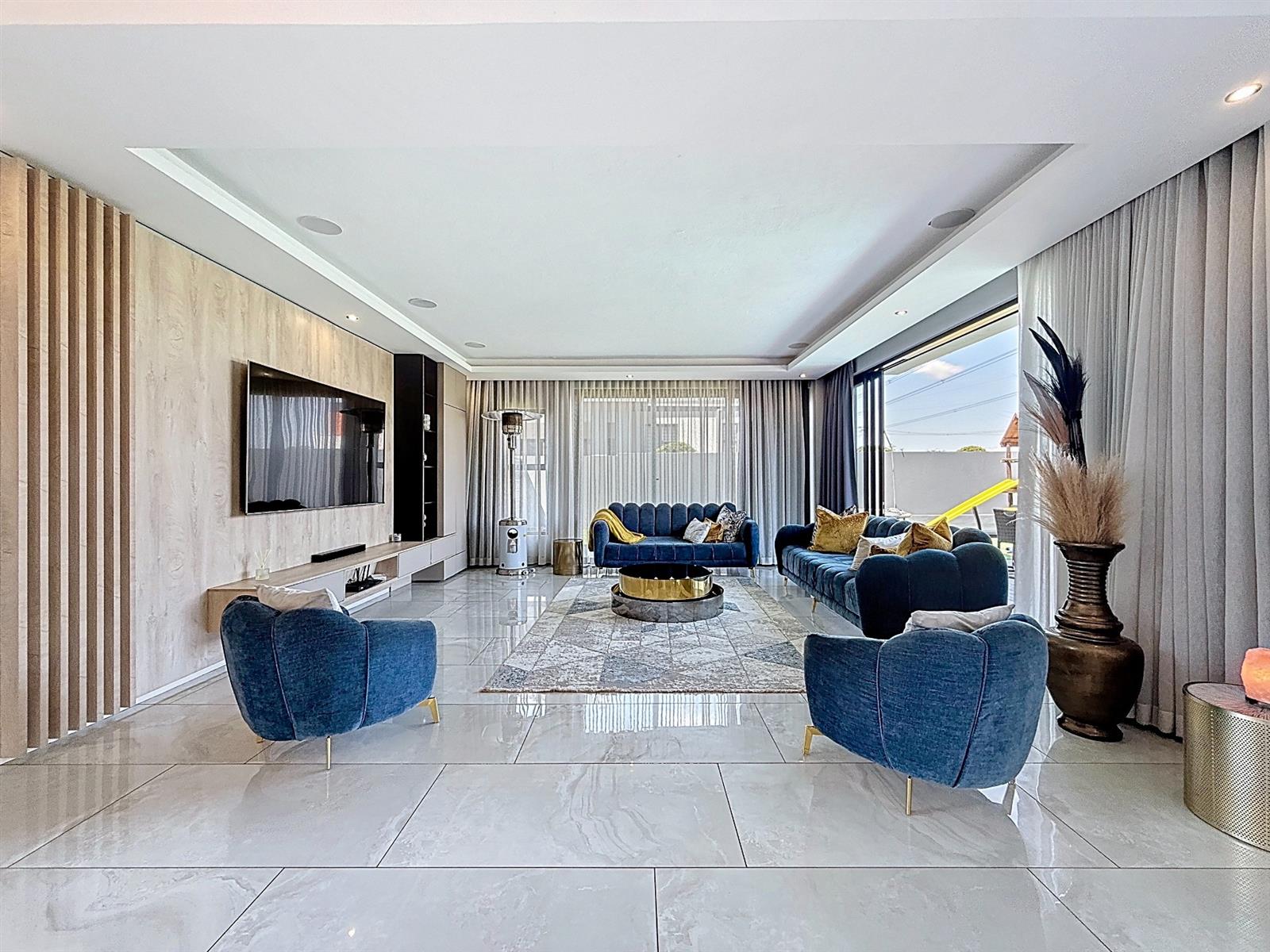 Step inside to discover expansive open-plan living areas that flow effortlessly from a contemporary lounge and dining space into a beautifully appointed gourmet kitchen, complete with scullery and pantry and laundry room. The separate study is ideal for working from home, while the entertainment area and dedicated braai room open onto a manicured garden with a sparkling pool — a perfect space for family gatherings and summer evenings.