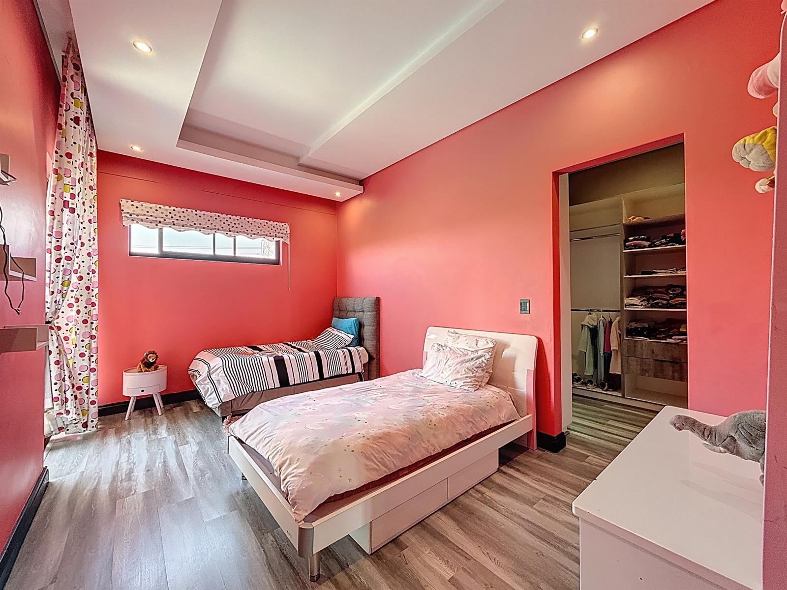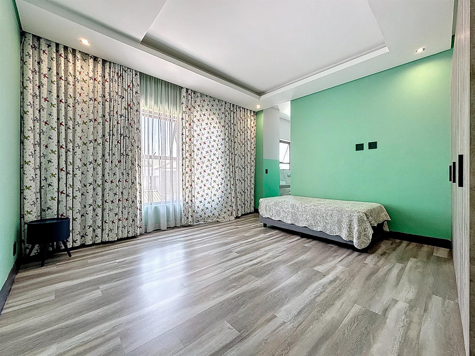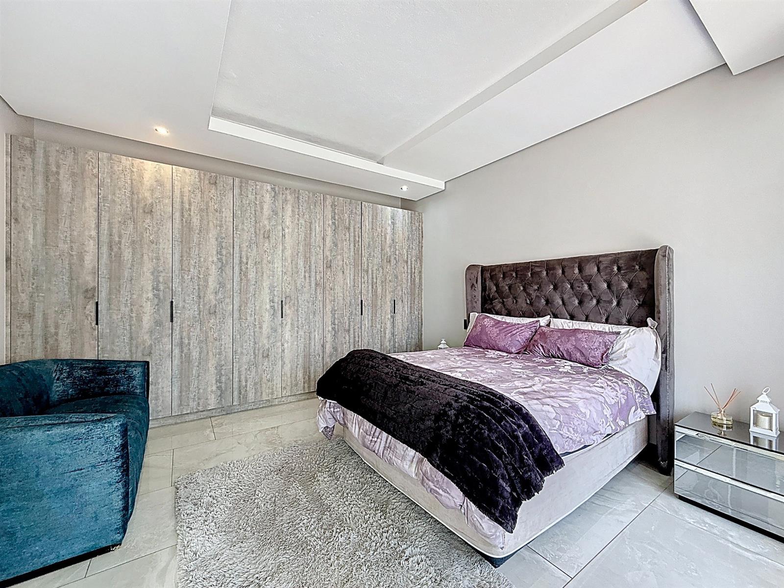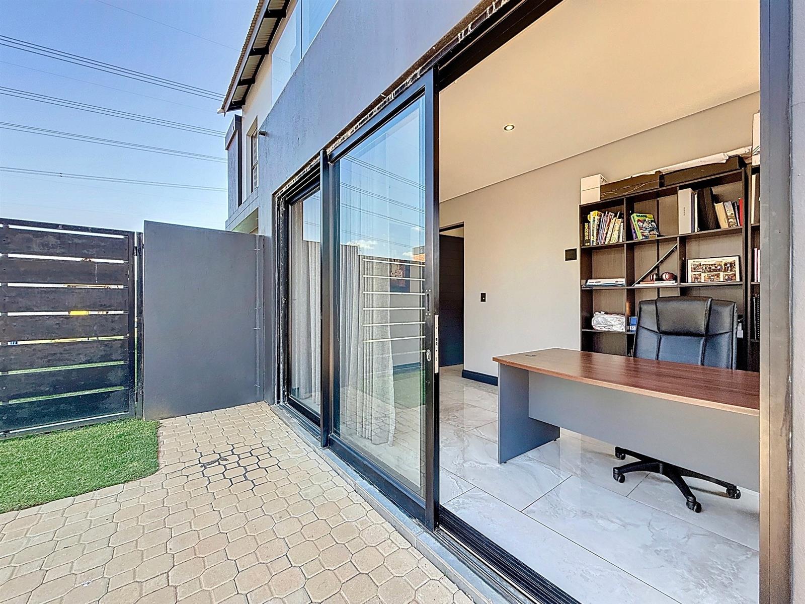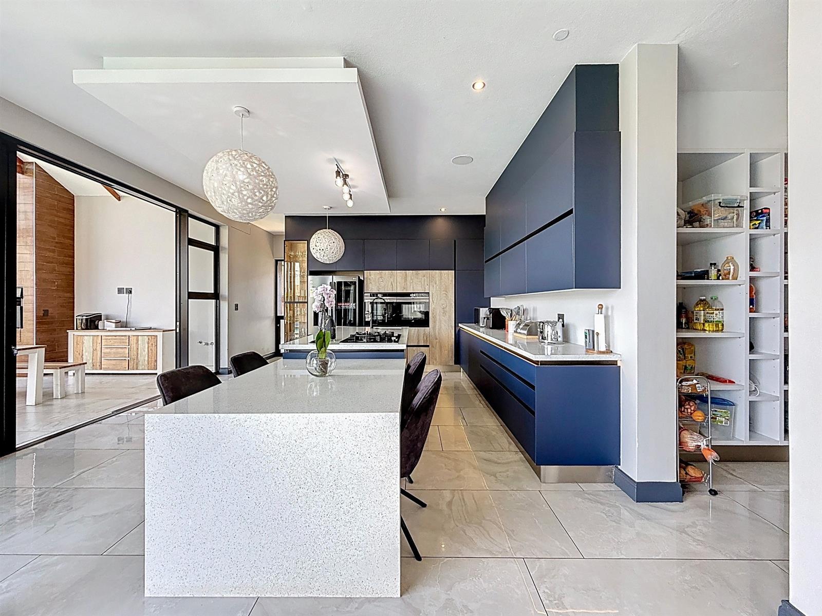 Step inside to discover expansive open-plan living areas that flow effortlessly from a contemporary lounge and dining space into a beautifully appointed gourmet kitchen, complete with scullery and pantry and laundry room. The separate study is ideal for working from home, while the entertainment area and dedicated braai room open onto a manicured garden with a sparkling pool — a perfect space for family gatherings and summer evenings.
