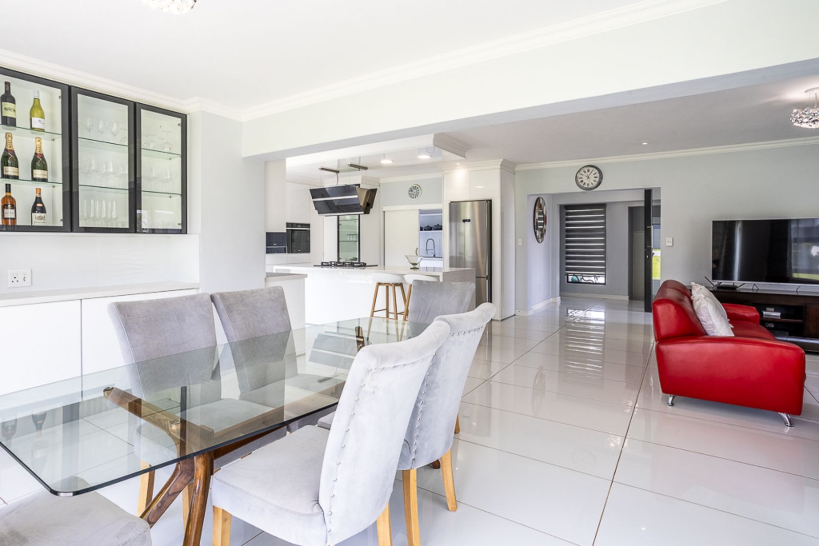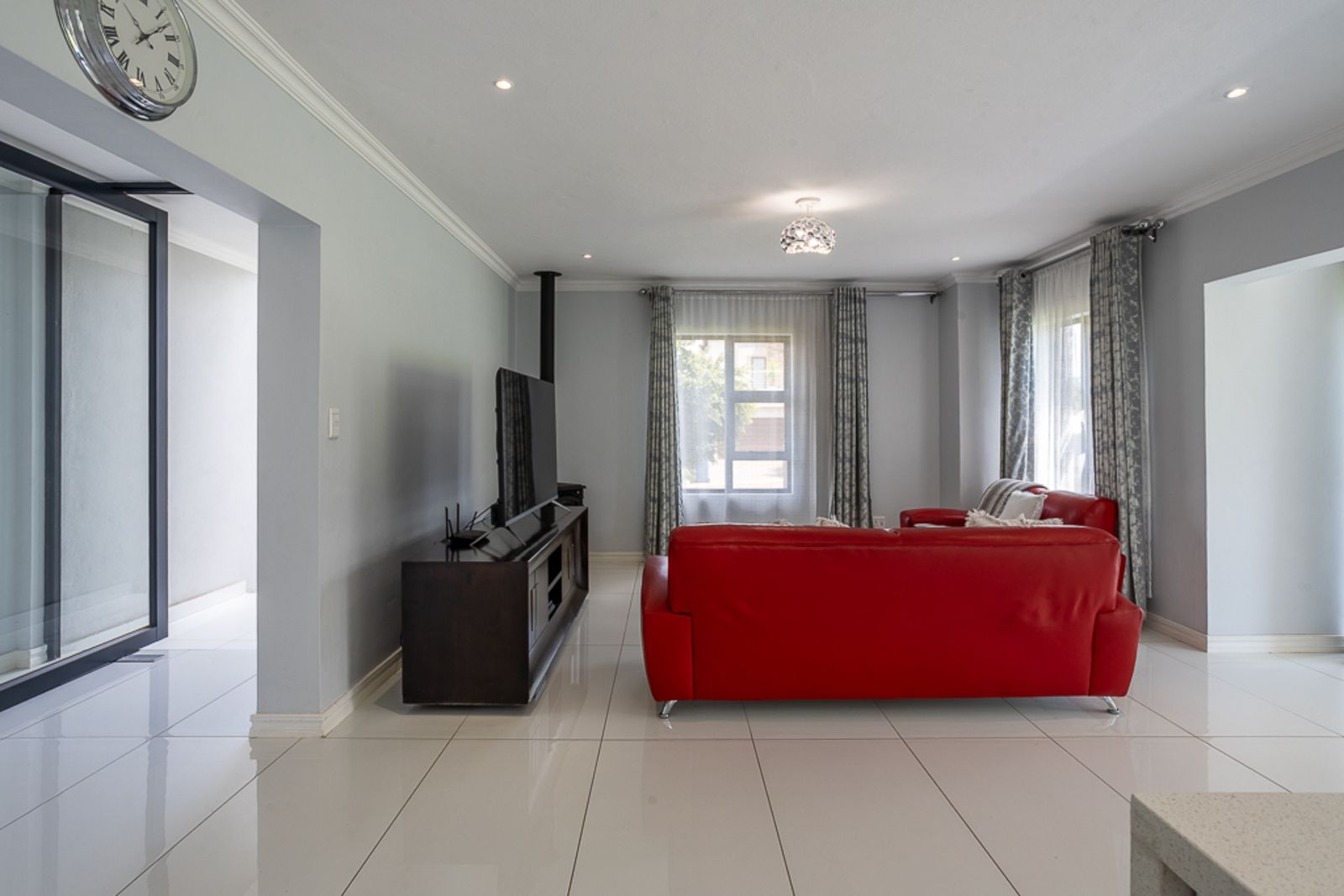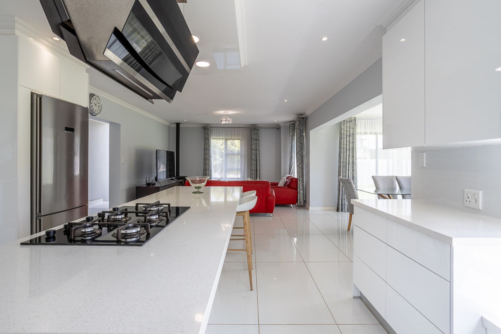 The modern kitchen is both stylish and practical, featuring quality finishes and flowing seamlessly into a separate scullery, pantry, and laundry area. From the living spaces, the home opens onto a closed patio with a built-in braai, perfect for entertaining in any season. Outside, a boma and a large garden provide plenty of room for outdoor living and family gatherings.
