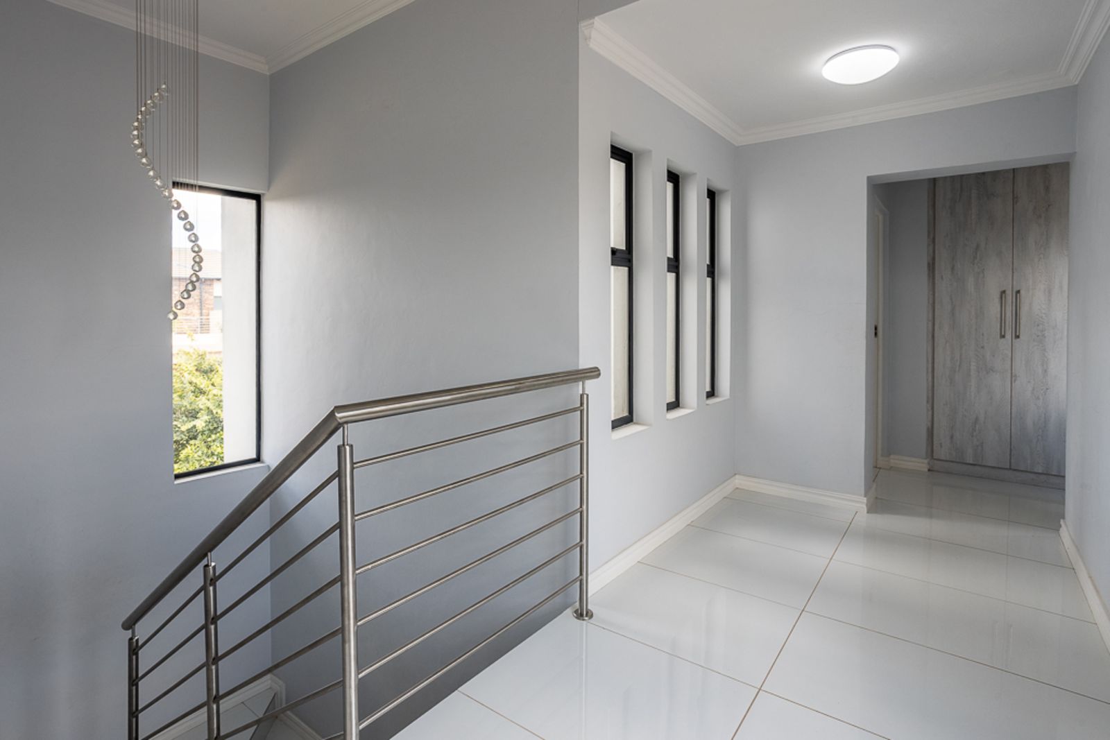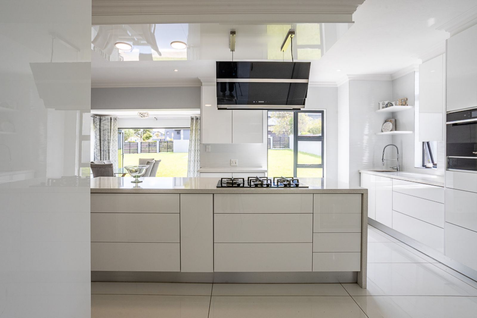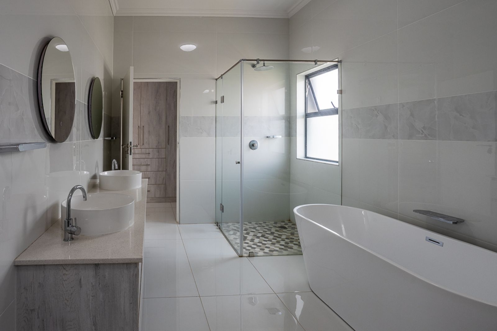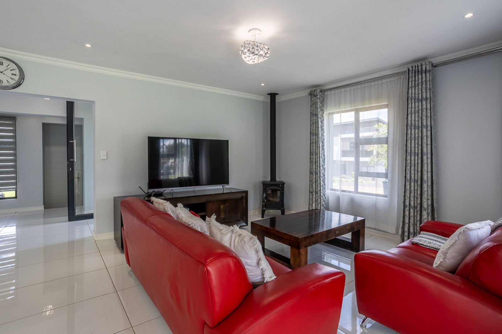 The modern kitchen is both stylish and practical, featuring quality finishes and flowing seamlessly into a separate scullery, pantry, and laundry area. From the living spaces, the home opens onto a closed patio with a built-in braai, perfect for entertaining in any season. Outside, a boma and a large garden provide plenty of room for outdoor living and family gatherings.