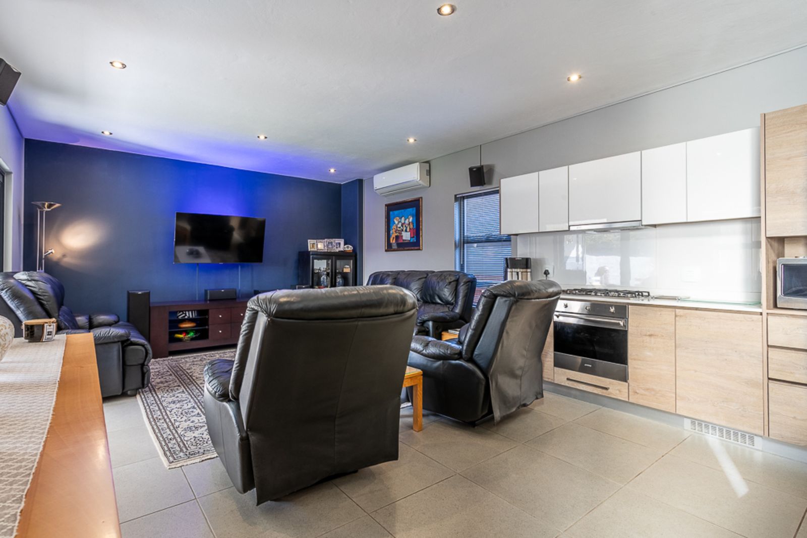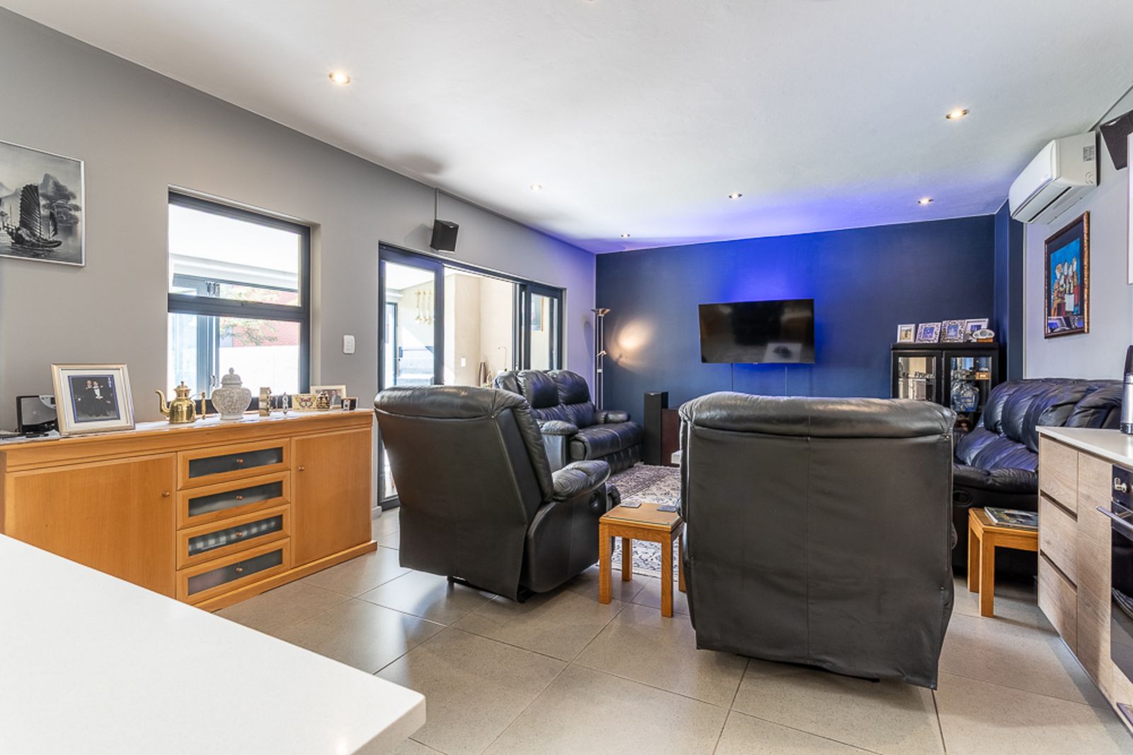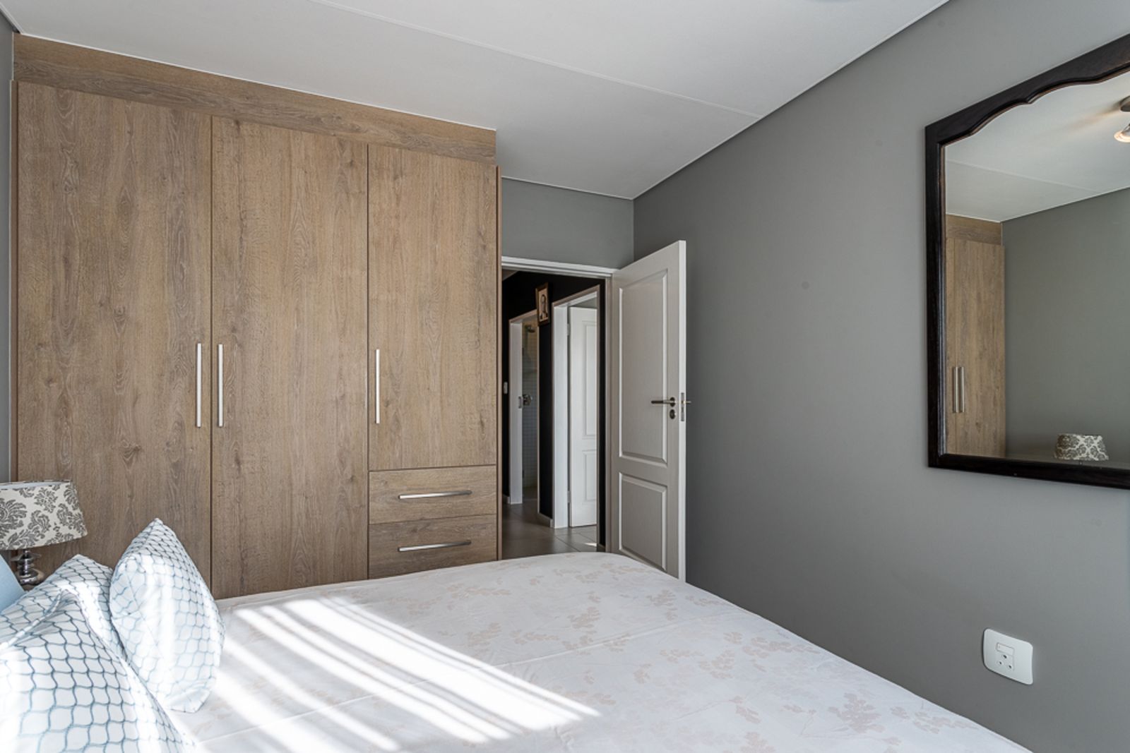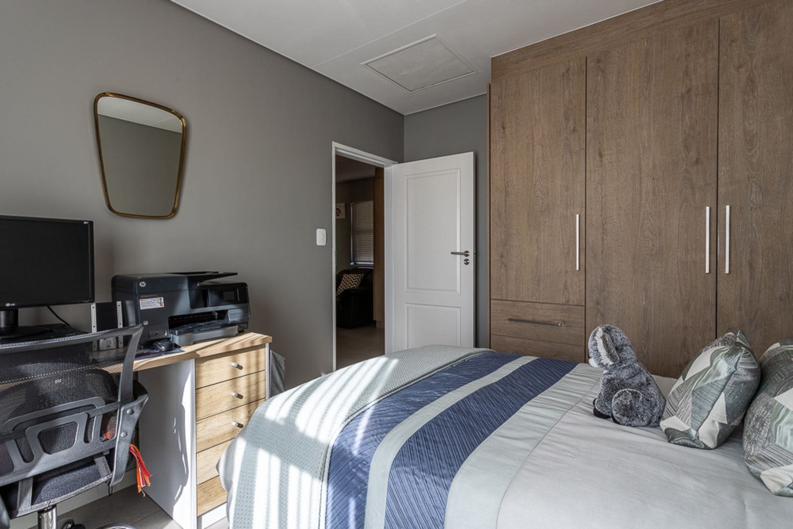 French doors lead to a covered patio, perfect for entertaining, complete with built-in cupboards and a built-in braai. The living areas and pyjama lounge are designed with attention to detail, including tiled window sills that add a touch of sophistication throughout.
