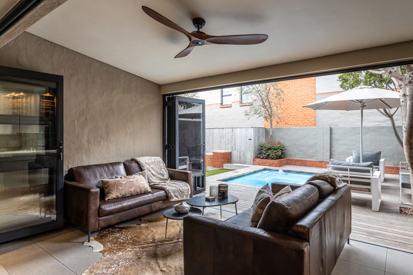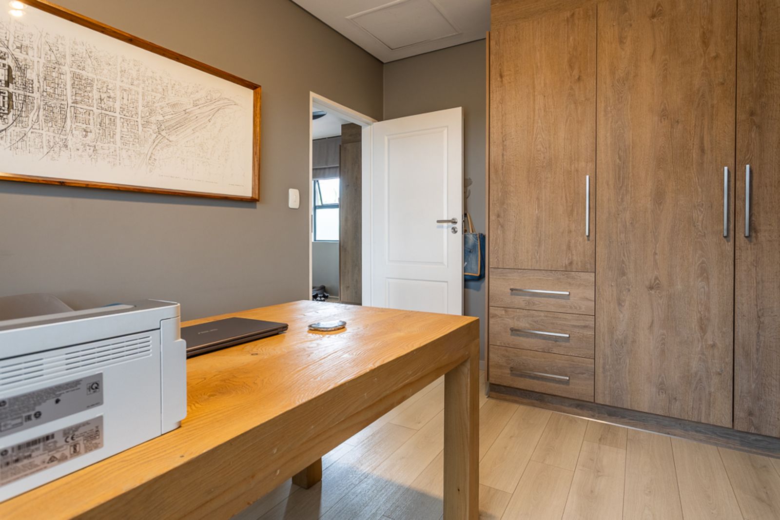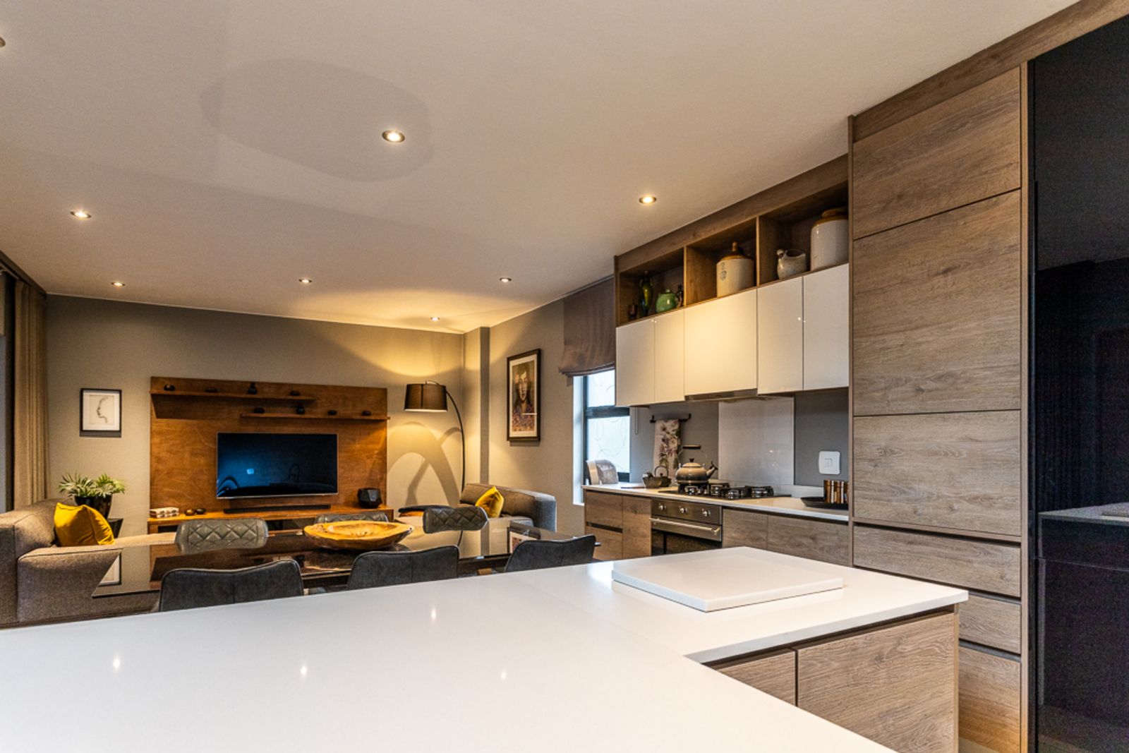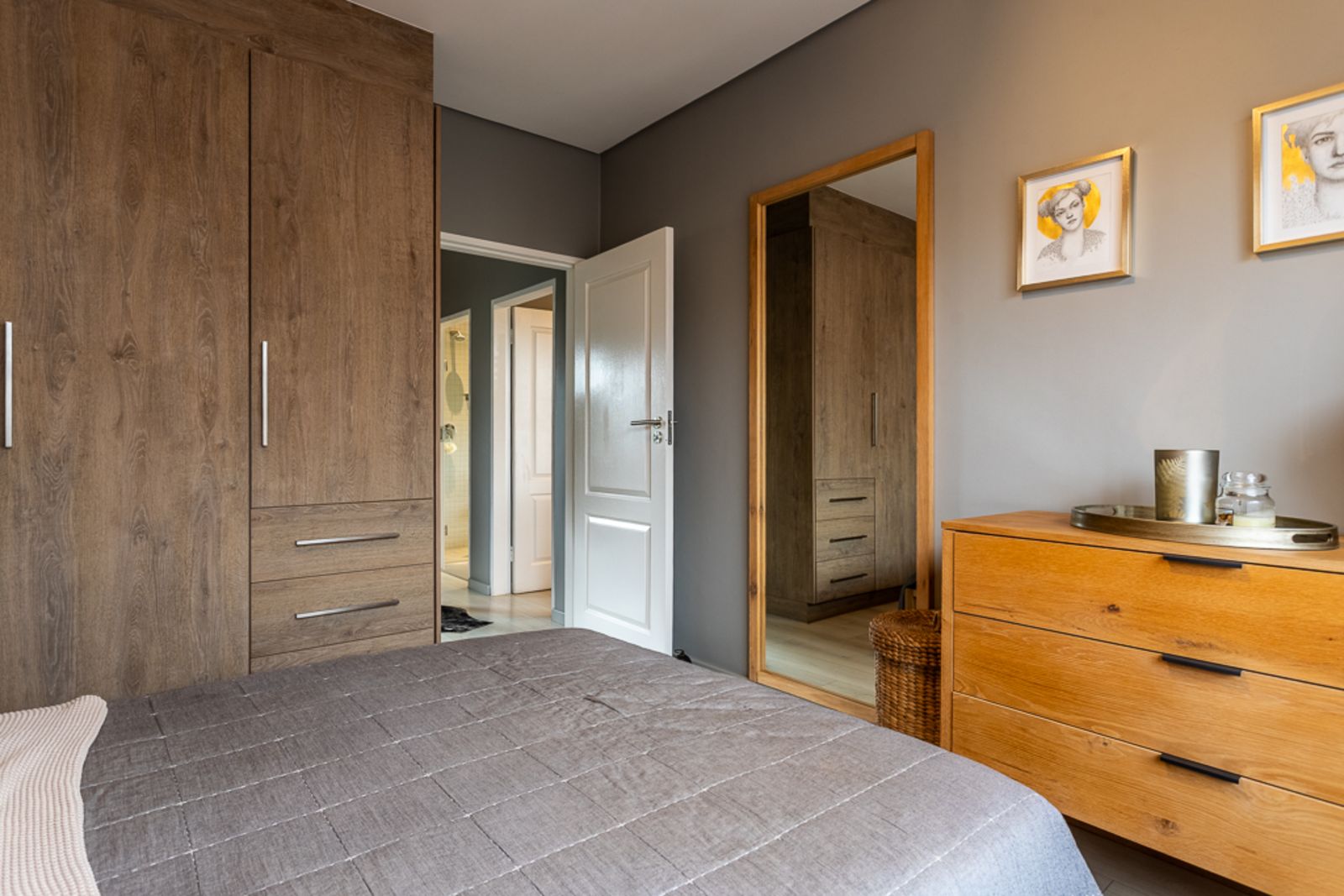 French doors open onto a covered entertainment patio, complete with a built-in braai, extra cupboards, and views of the private pool fitted with a heat pump—perfect for year-round enjoyment. Sophisticated details such as tiled window sills and a well-appointed pyjama lounge add a touch of elegance throughout.