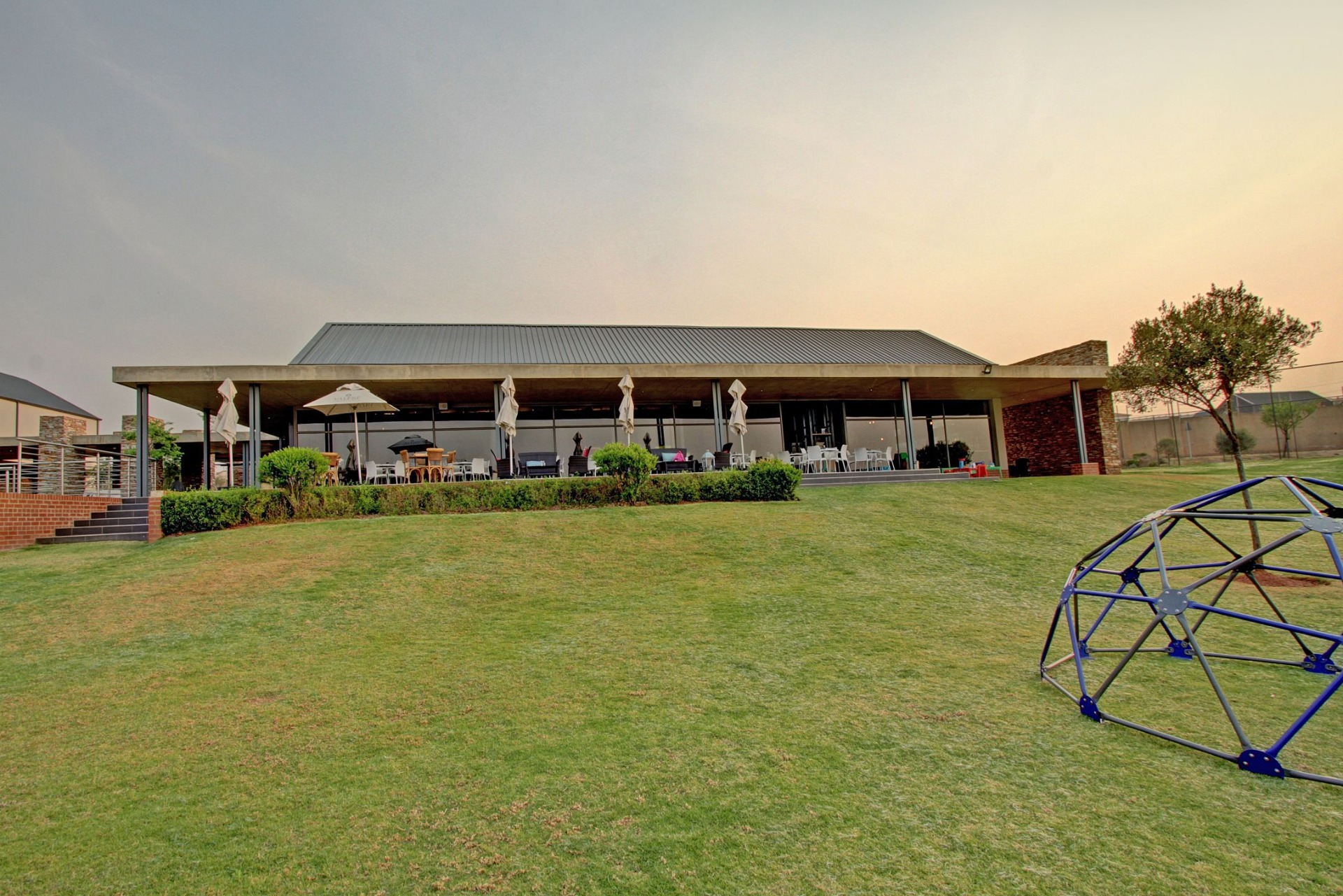 A CLUBHOUSE designed to enhance the unique South African outdoor lifestyle overlooking the nature reserve and fishing dam, and also includes a restaurant, swimming pool and gym.