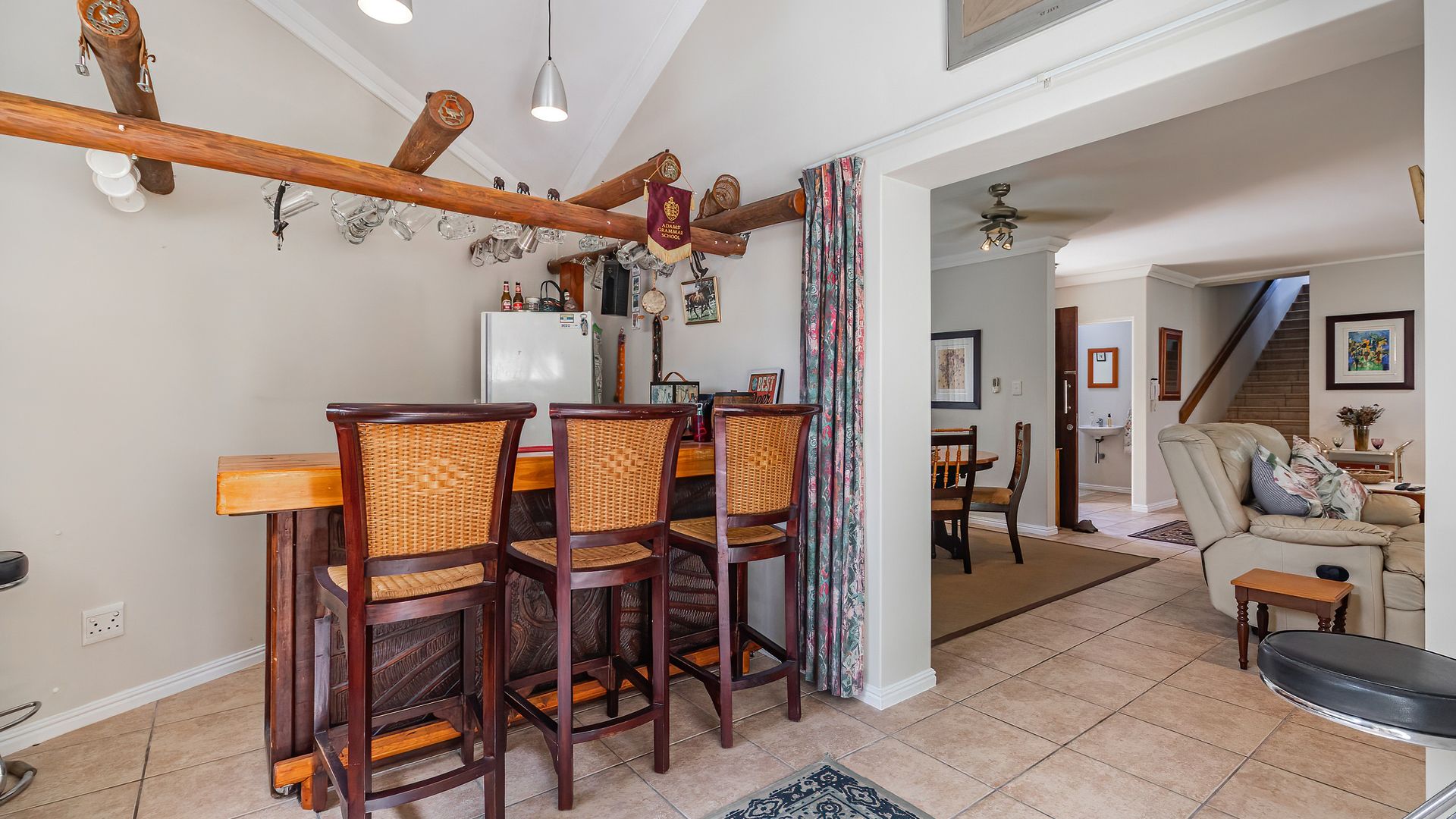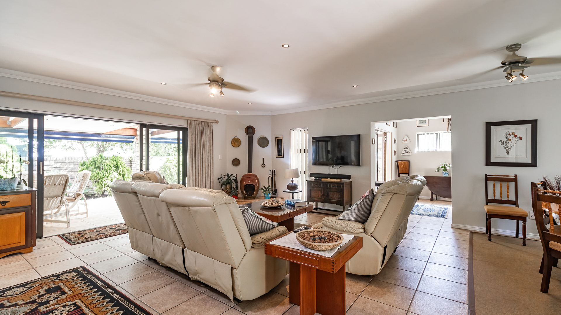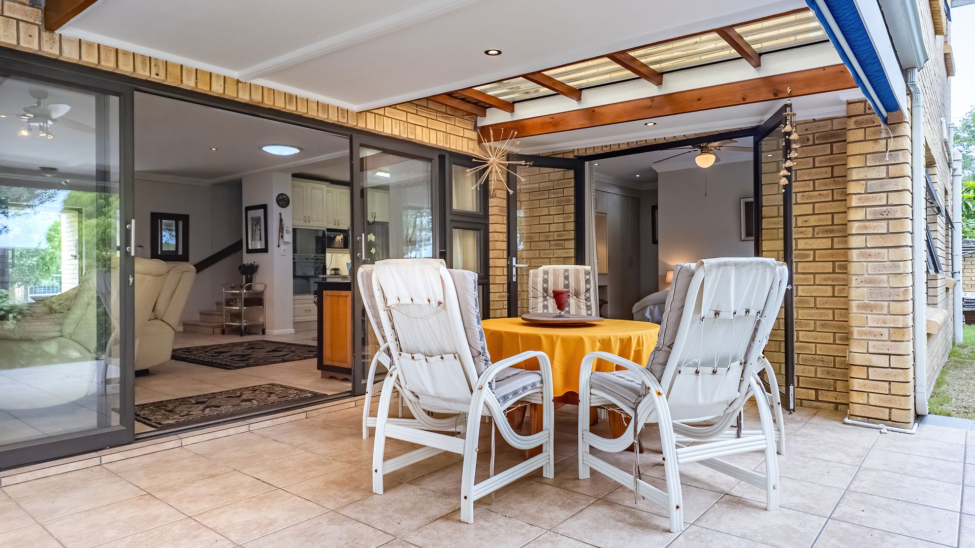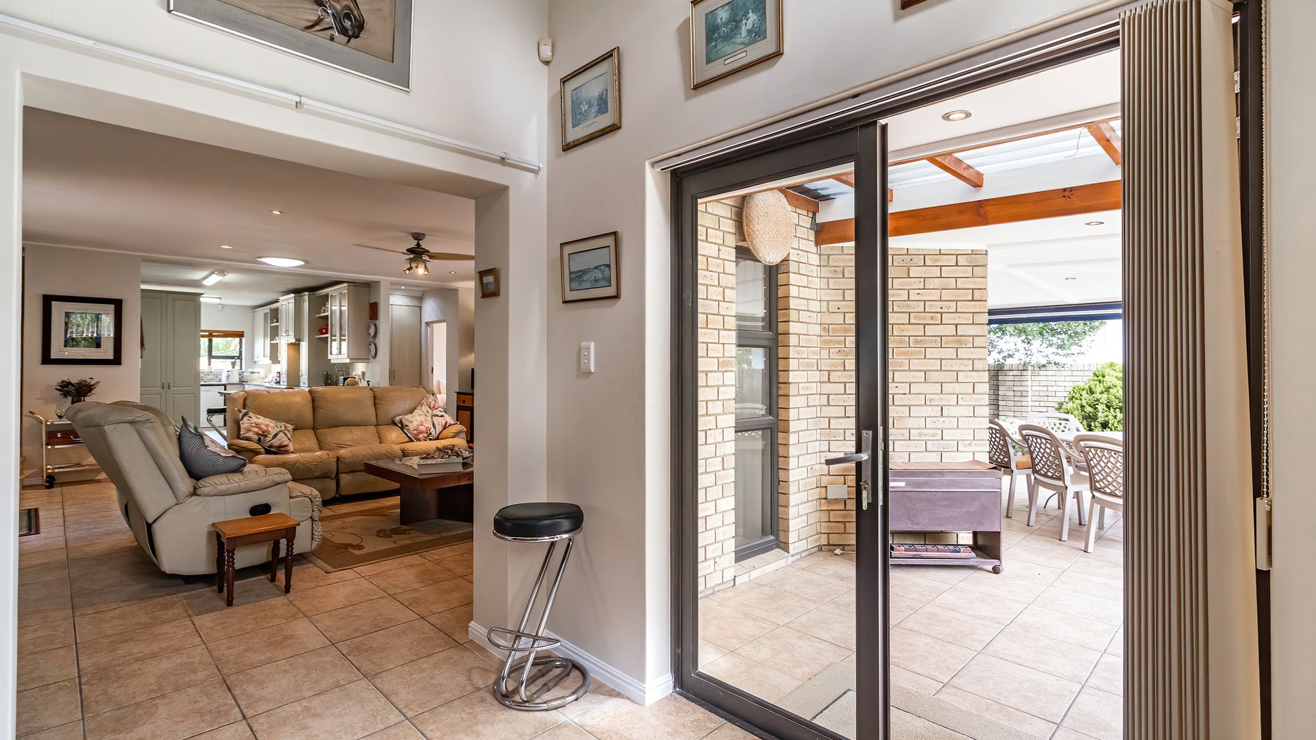 Sliding doors from both the lounge and pub open onto a wrap-around, under-roof entertainment area complete with a built-in braai - ideal for effortless indoor-outdoor living. A spacious guest bedroom with full en-suite bathroom also opens onto this area, perfect for visitors.