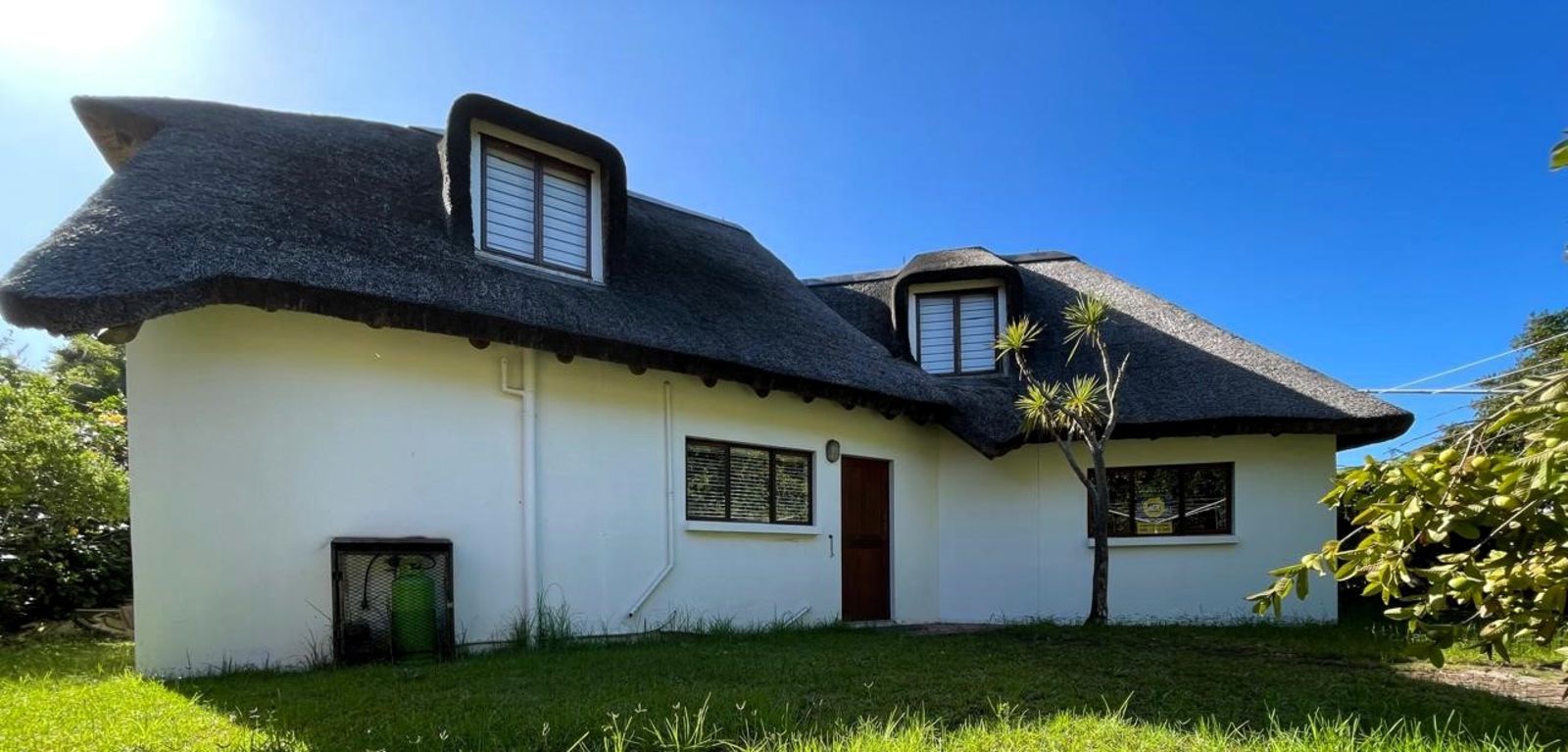 Step into this absolutely gorgeous thatch home and instantly feel like you're living your African dream which is bordering the Island Conservancy nature reserve, tucked away in a cul-de-sac and close to the lagoon. This charming 3-bedroom home offers a unique blend of natural beauty and comfortable living allowing you to unwind in the lovely garden, complete with mature trees. A serene OUTDOOR oasis.