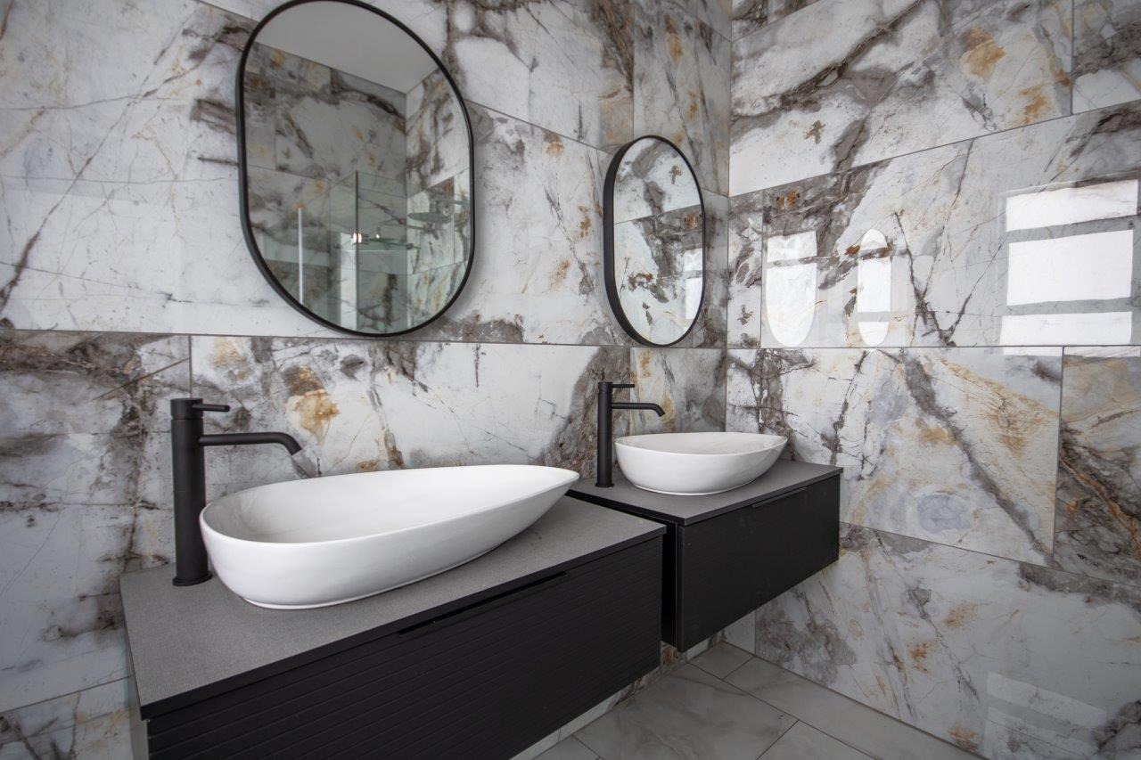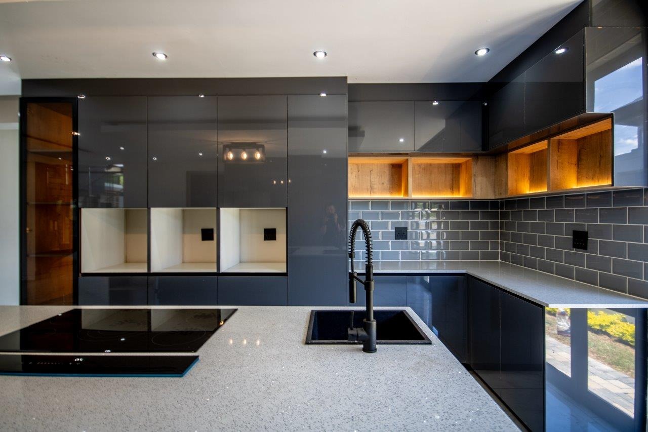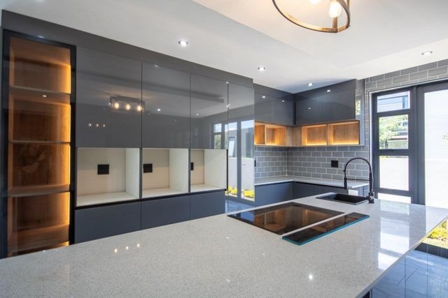 The kitchen is nothing short of spectacular. Its generous proportions are matched by impeccable design, with a central island as its centerpiece and ample storage complemented by a spacious scullery that connects conveniently to the garage, adding practicality to the luxury.