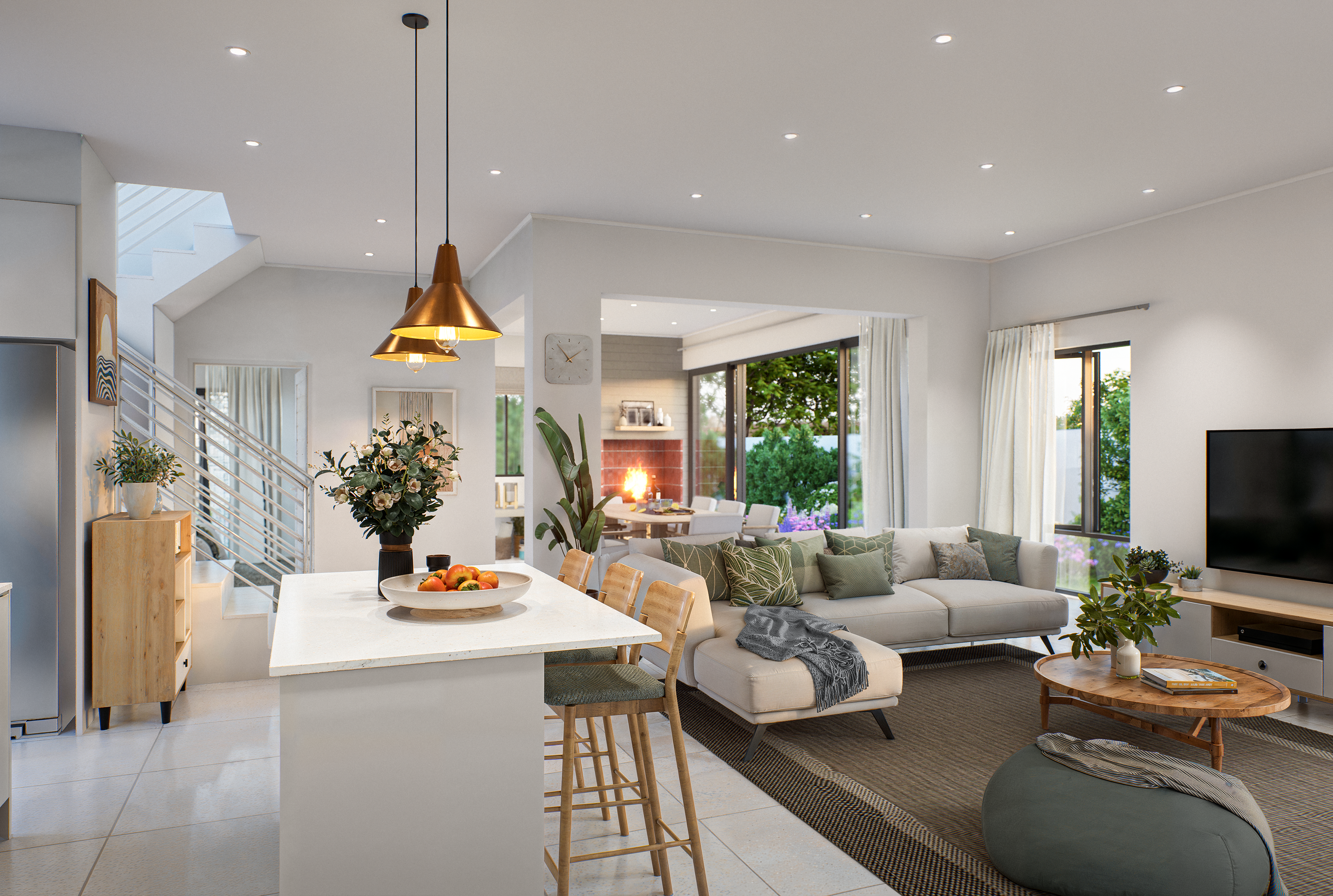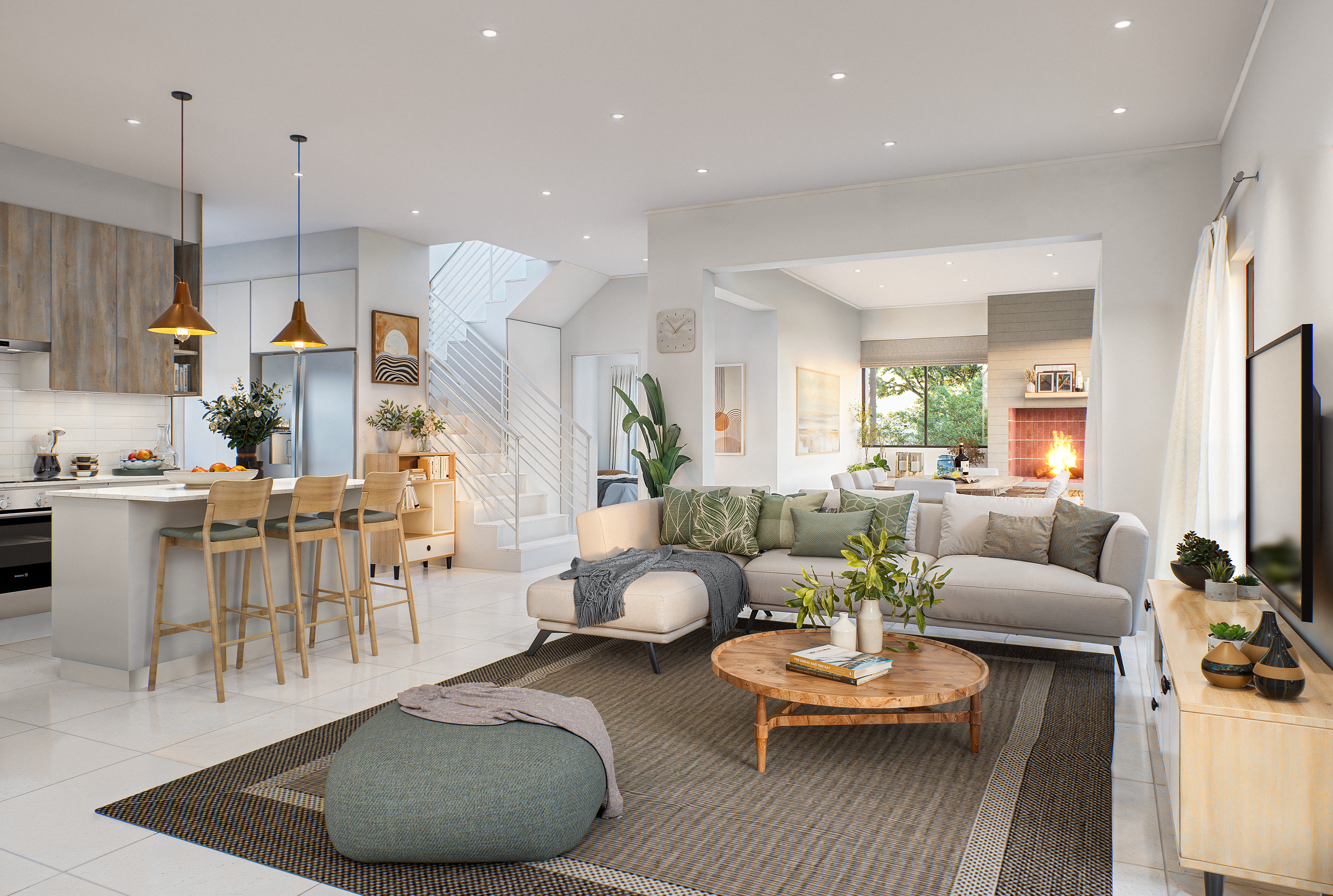 Unit Type 6 in Phase 1 presents a ground floor layout that includes an open-plan kitchen with a separate scullery, flowing into the lounge area. Additionally, there is a dining room and an enclosed braai stoep for entertainment or relaxation amidst the tranquil beauty of nature. A guest toilet and a double garage add to the convenience of this home.