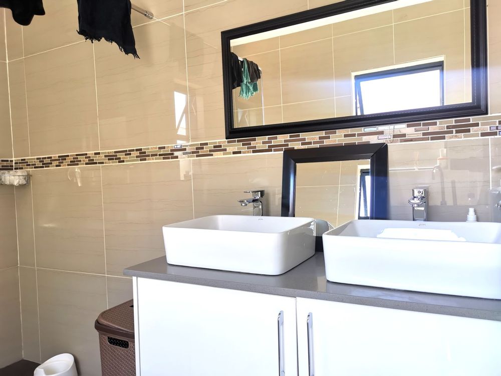 From the moment you walk through the door, you’ll be welcomed by bright, open spaces and high-end finishes that reflect true attention to detail. The open-plan living and dining areas flows seamlessly into a beautifully designed kitchen, featuring sleek cabinetry, a scullery, and everything you need to make family mealtimes a pleasure.
