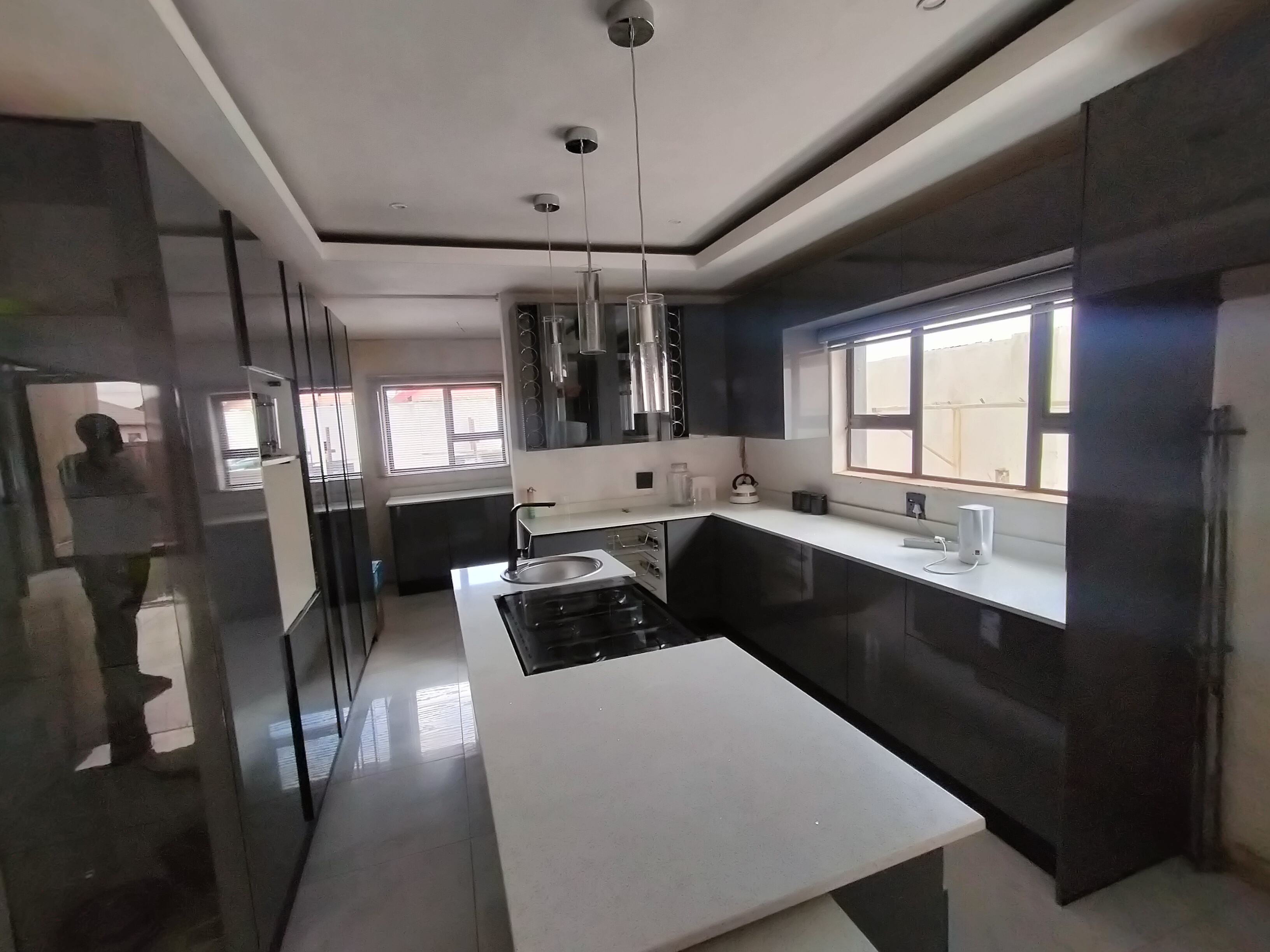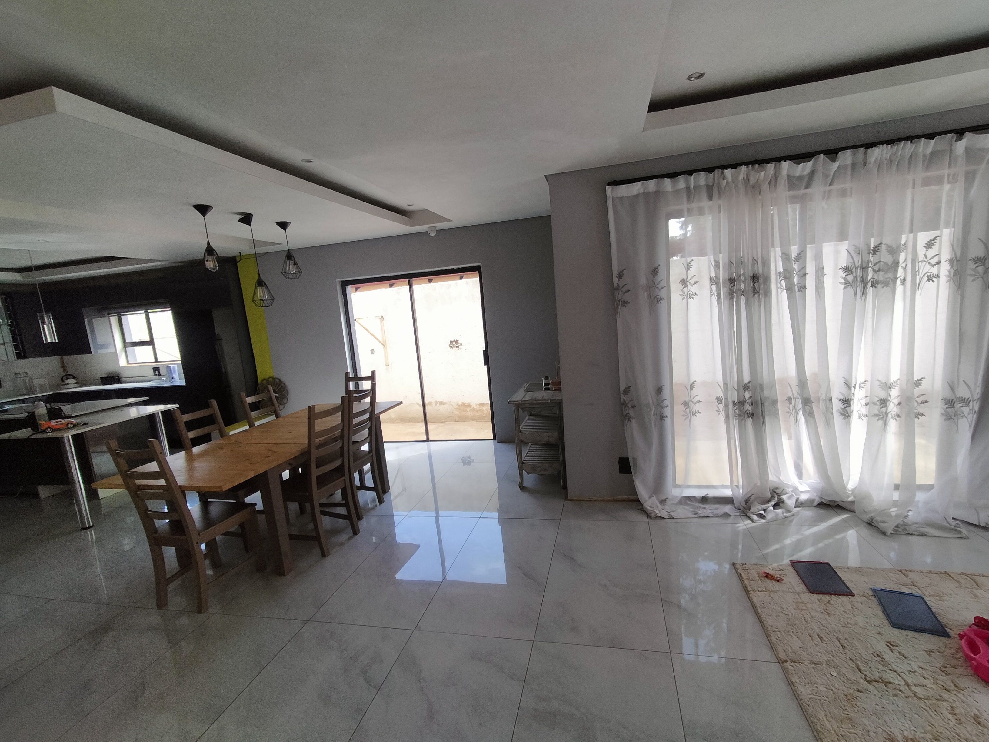 This impressive double-storey home in The Orchards is in the final stages of completion — offering a modern design with spacious living areas and quality finishes throughout. The home features a sleek open-plan kitchen with a scullery, aluminium doors and windows fitted with safety glass, and large open spaces filled with natural light. The ground floor includes three living areas, a guest room, a modern full bathroom, and direct access to a double automated garage — perfect for family living and entertaining.