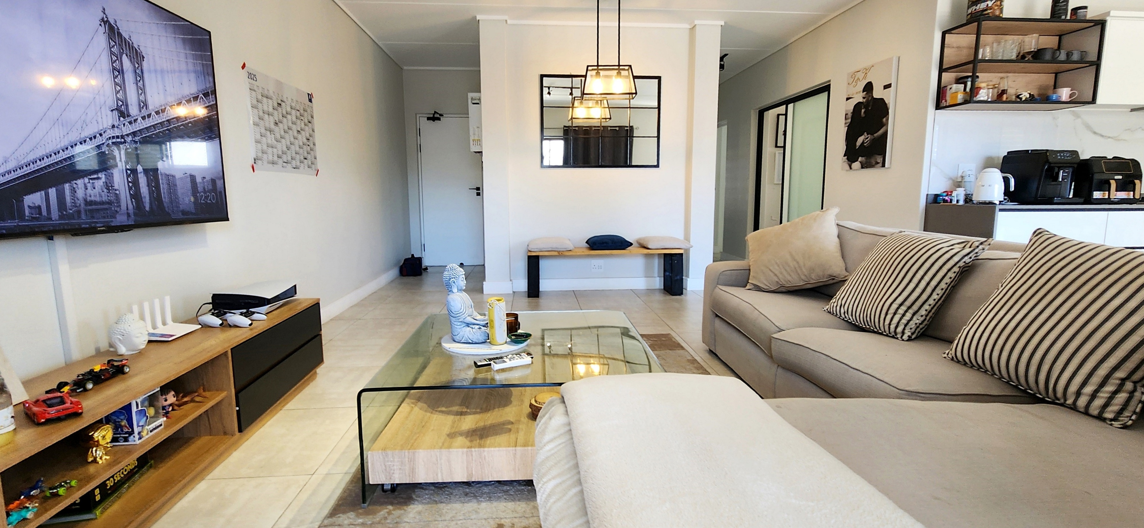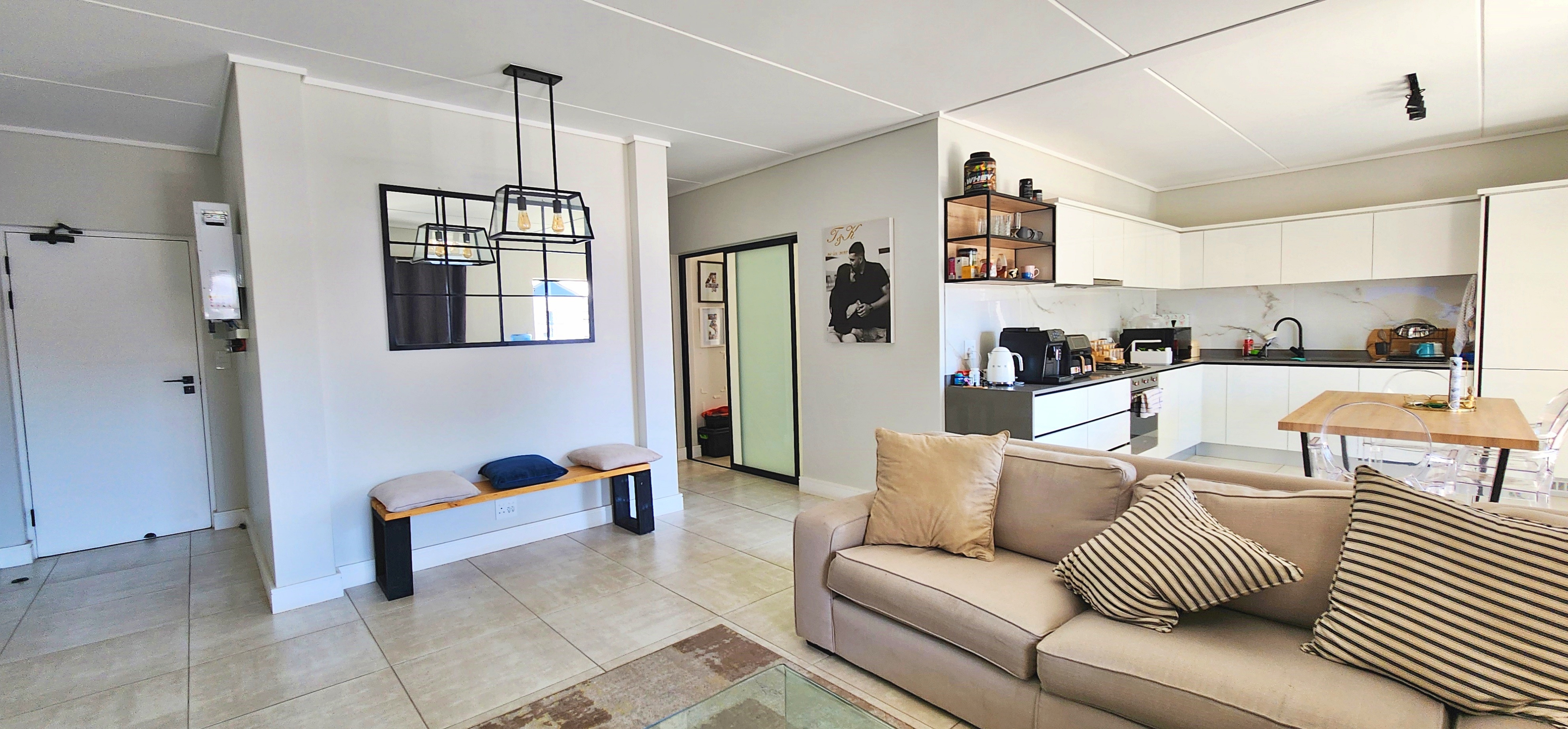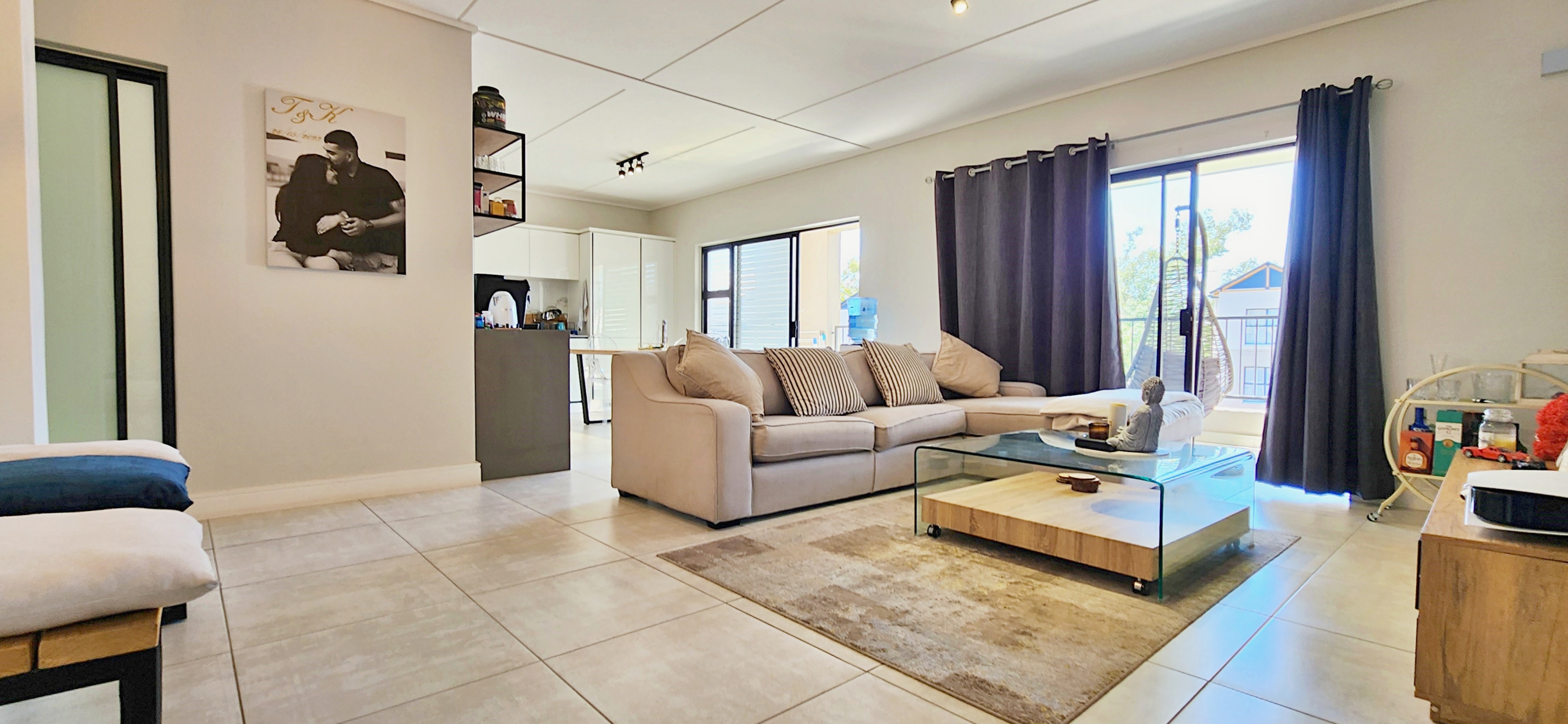 Located just below the renowned Lifestyle Centre, this newer unit is tucked away in a quiet pocket of the estate, offering both convenience and peace. The spacious open-plan layout welcomes you with a seamless flow from the sleek, fully fitted kitchen through the lounge and dining areas, spilling out onto a full-length, sunny balcony—perfect for morning coffee or sunset wind-downs.