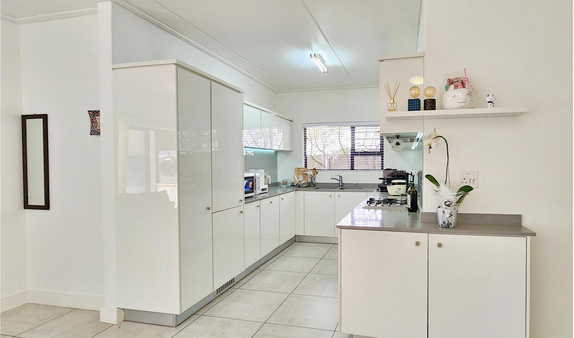 Designed with modern living in mind, the tiled open-plan layout flows seamlessly from the entrance into the living and dining areas, extending through glass sliders to a covered patio and private garden—ideal for morning coffee, weekend braais, or simply unwinding outdoors.