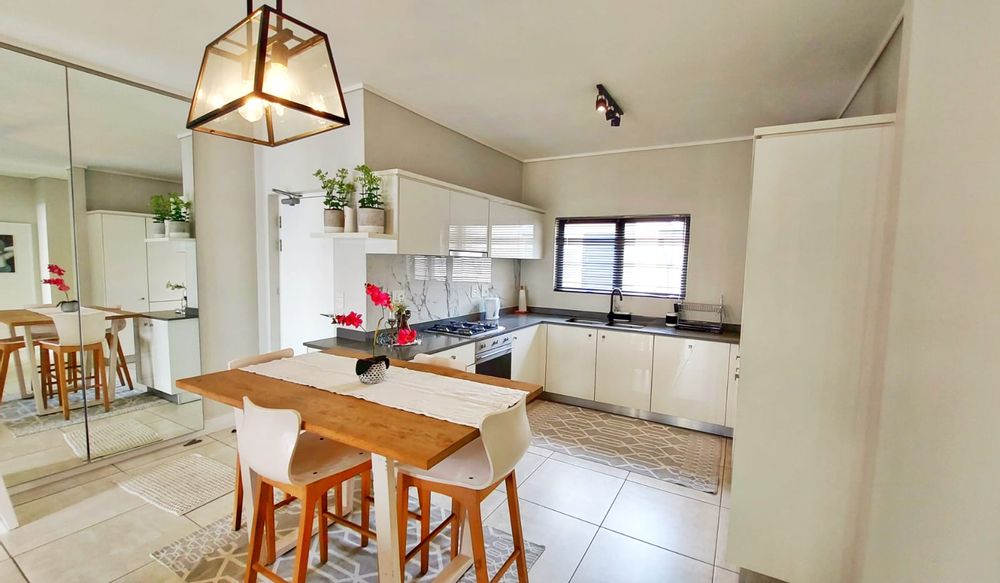 Available immediately. What you will love is the large private balcony with its own braai area and view, ideal for relaxed evenings or easy entertaining. A sleek open-plan living space, thoughtfully furnished for modern living. The Main bedroom with built-in cupboards and a modern en-suite (shower, sink, loo) which leads to the large balcony. The Second bedroom with built-in cupboards and stunning finishes, serviced by a separate bathroom with a bathtub, sink, and loo.
