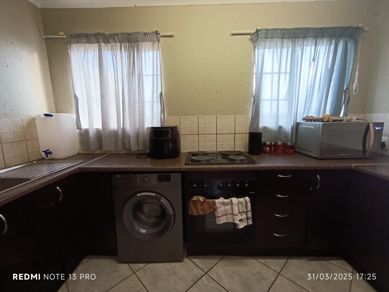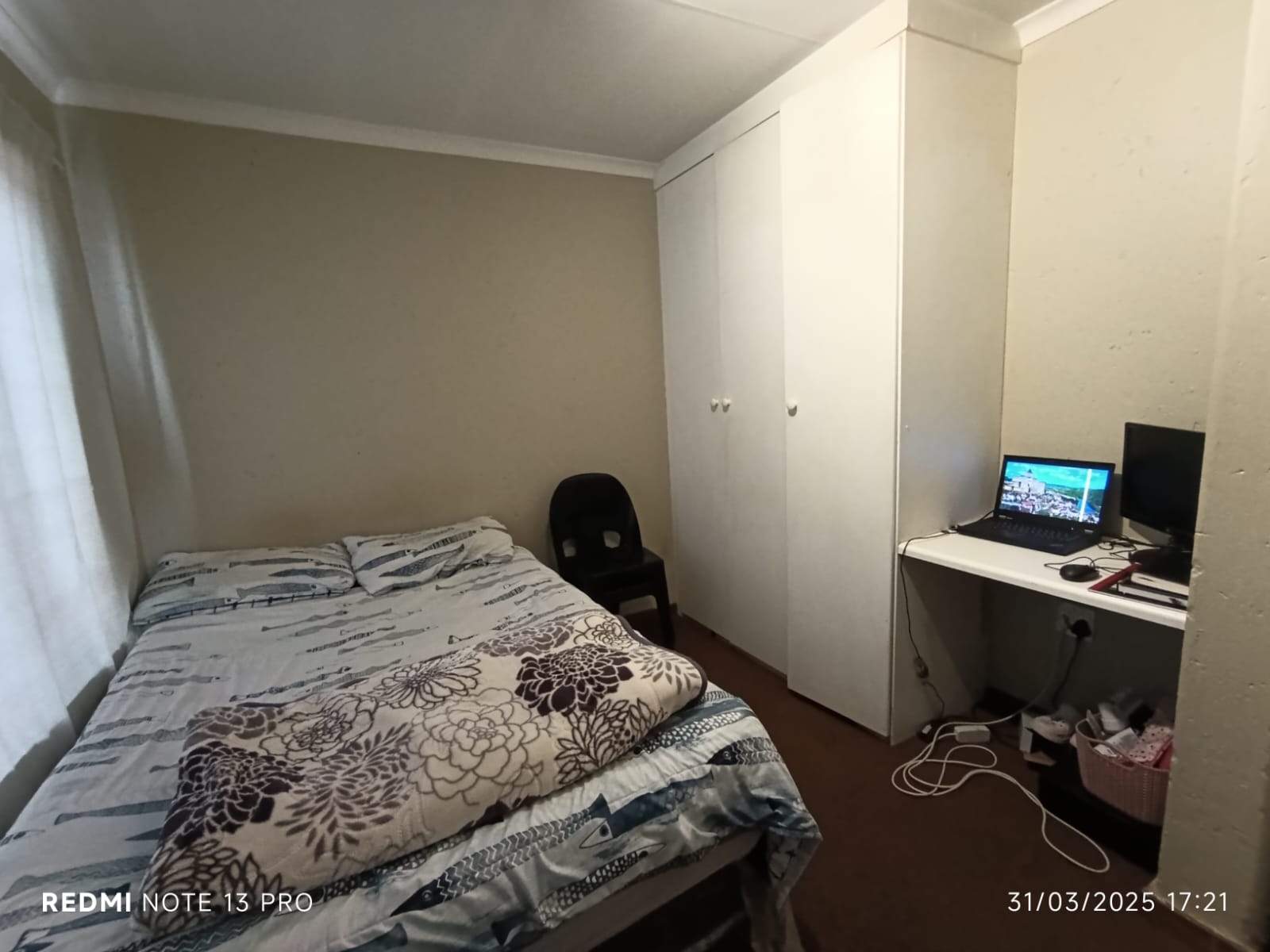 This is the perfect opportunity to get your foot in the property sector. This one bedroom unit comes with a spacious kitchen that opens up to the living room. The kitchen has lots of cupboard space. The bedroom is big enough for a queen sized bed. The unit has a full bathroom (a shower and a bathtub). Downstairs there is a covered parking and communal braai area. Water is included in the levies and electricity is prepaid. Call now to arrange a private viewing!
