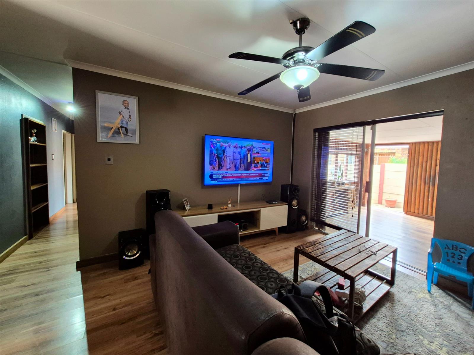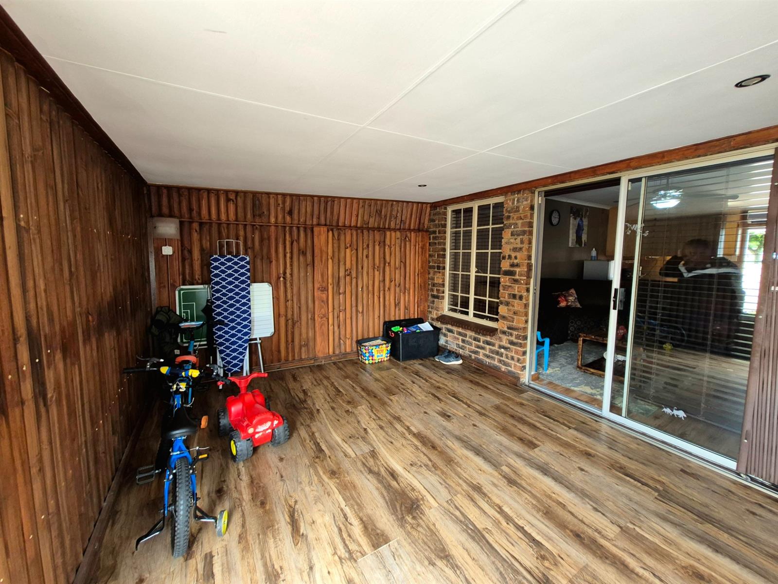 The large living area flows out onto an enclosed patio which can easily be used as a home office, playroom or extra living space