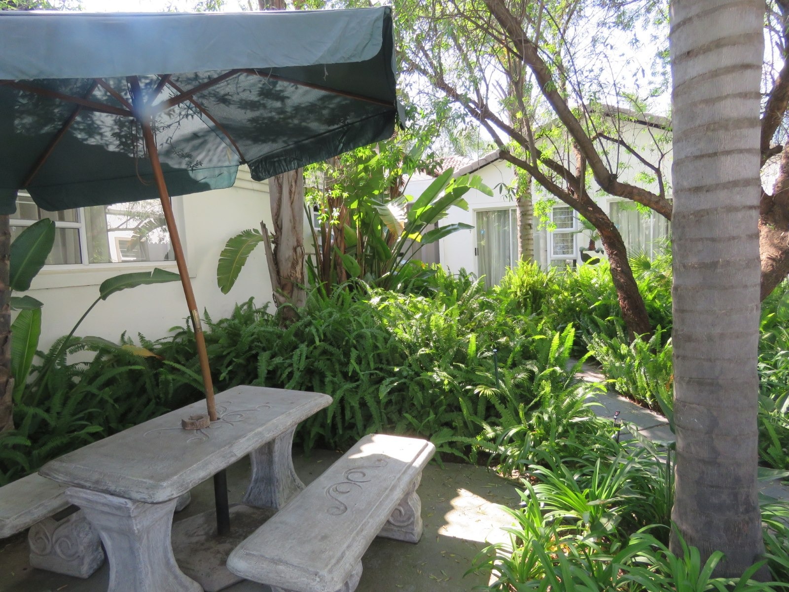 The guest house consists of 6 luxurious bedrooms, with en-suite bathrooms plus 2 smaller bedrooms that share a bathroom. Three bedrooms open up to private patios.