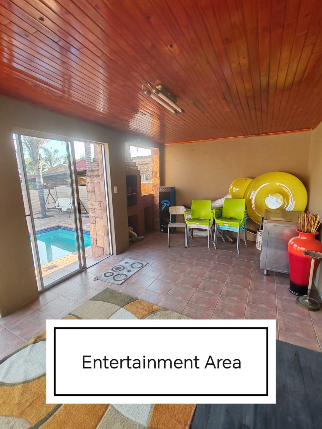 Entertainment is a breeze with an enclosed entertainment area featuring a built-in braai, perfect for hosting friends and family year-round. The outdoor space is further enhanced by a sparkling swimming pool, offering a refreshing escape during the warmer months.