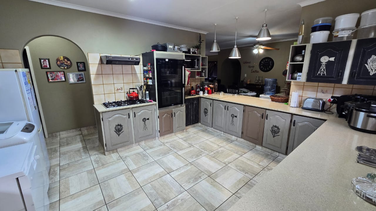The heart of the home is the expansive living area, thoughtfully designed with open-plan sitting and dining spaces that are perfect for entertaining. The neat and functional kitchen is equipped with a gas stove and ample room for additional appliances, making meal preparation a delight.