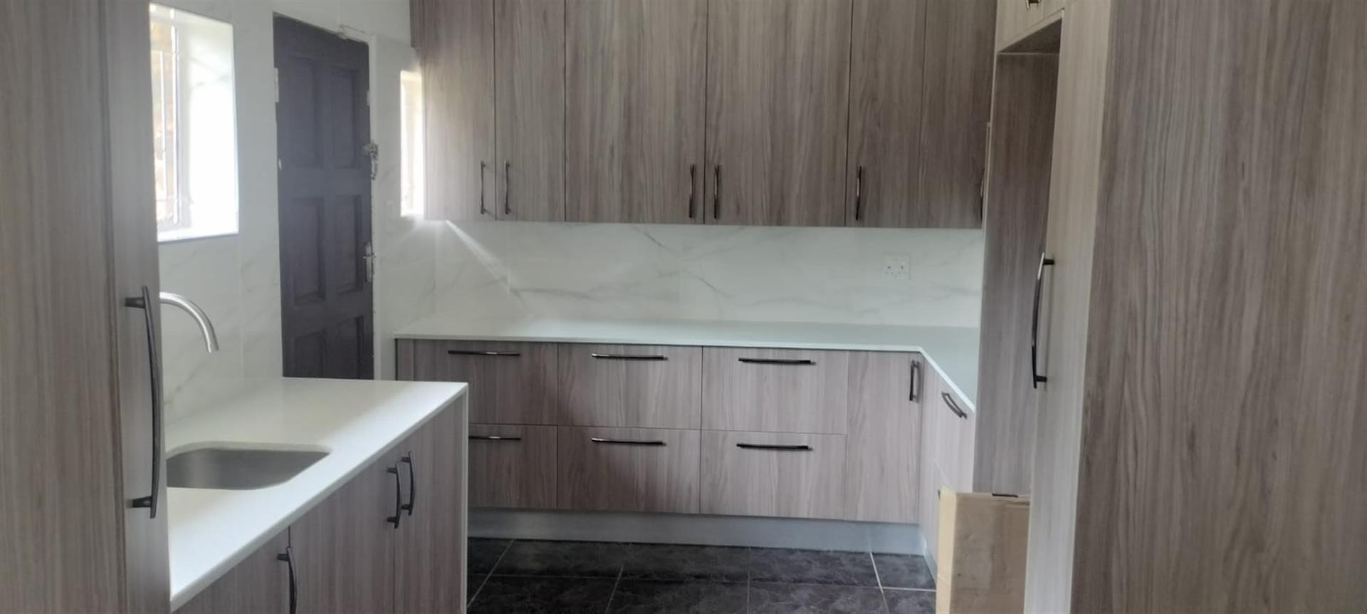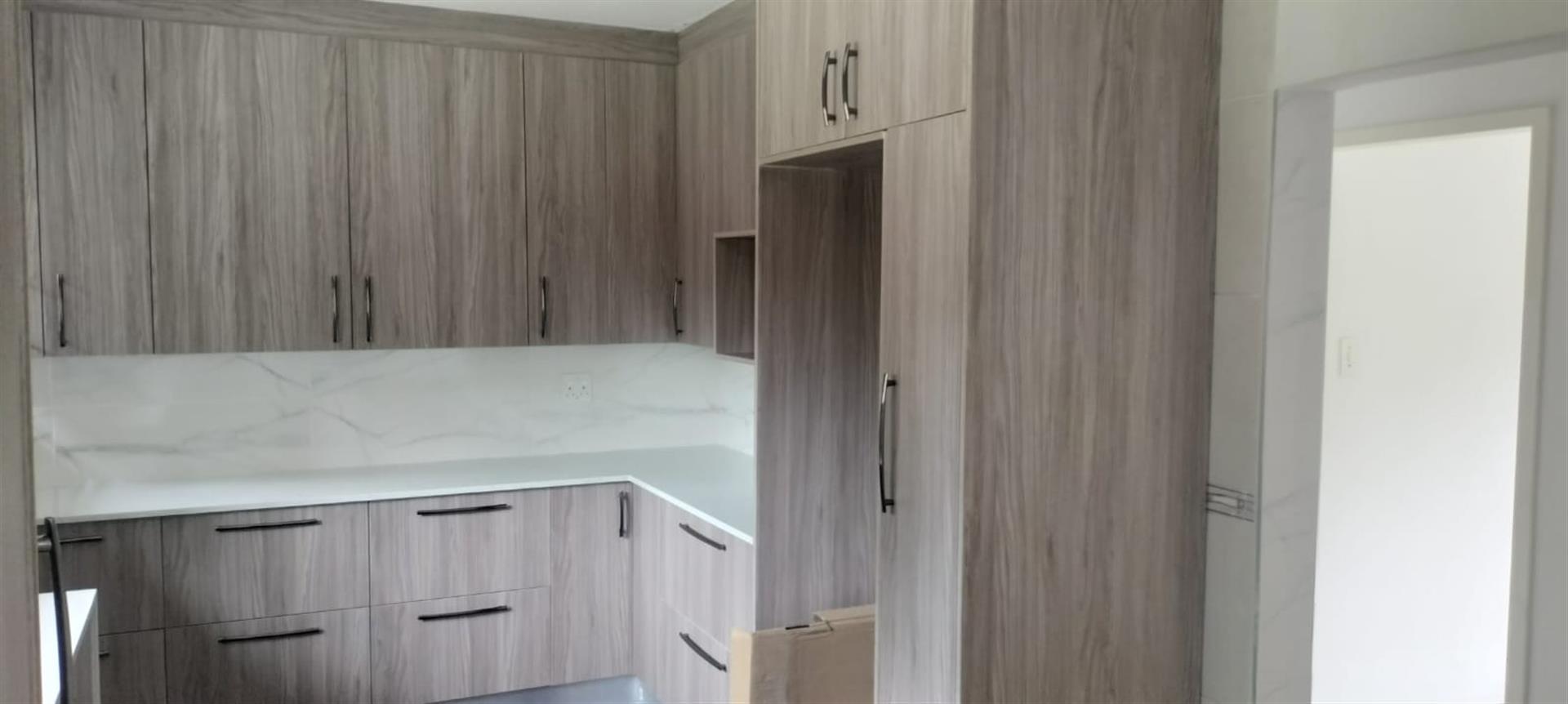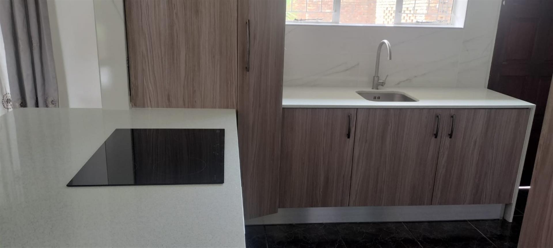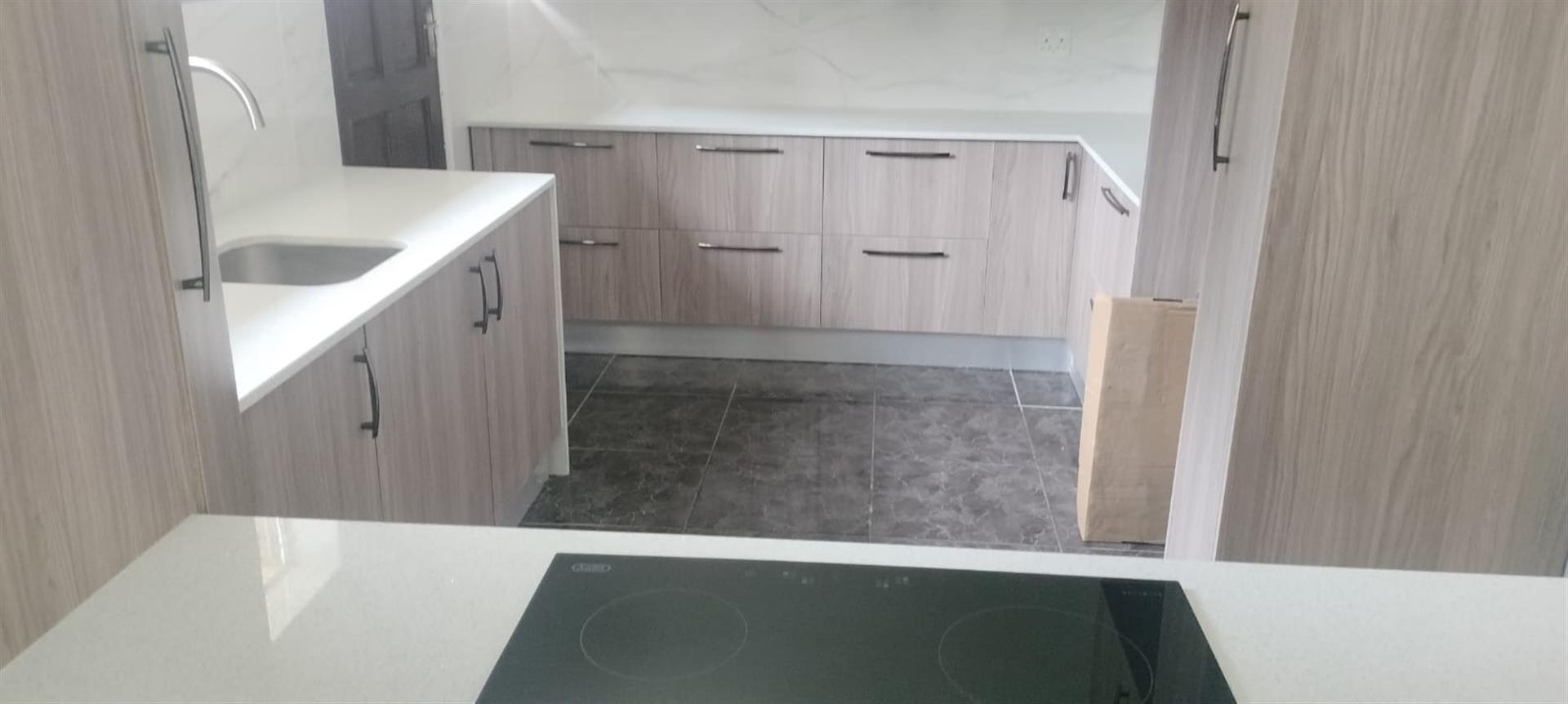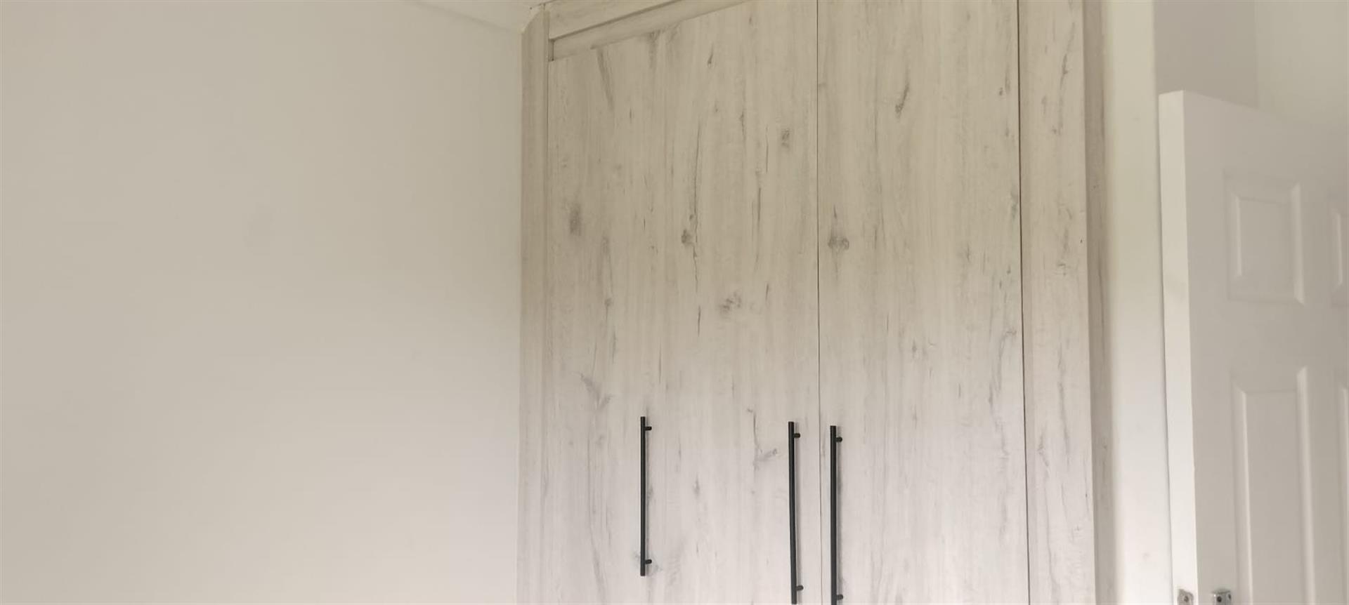 The property features three bedrooms with laminated flooring and newly installed built-in cupboards, as well as a fully tiled bathroom. The modern, renovated kitchen is fitted with a built-in stove, creating a practical and stylish space for everyday cooking.