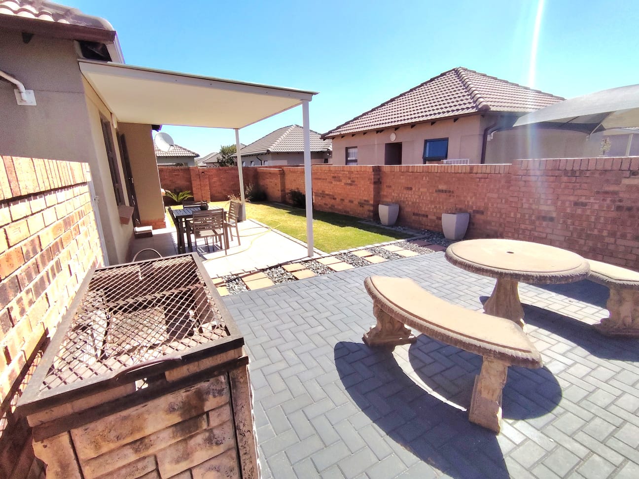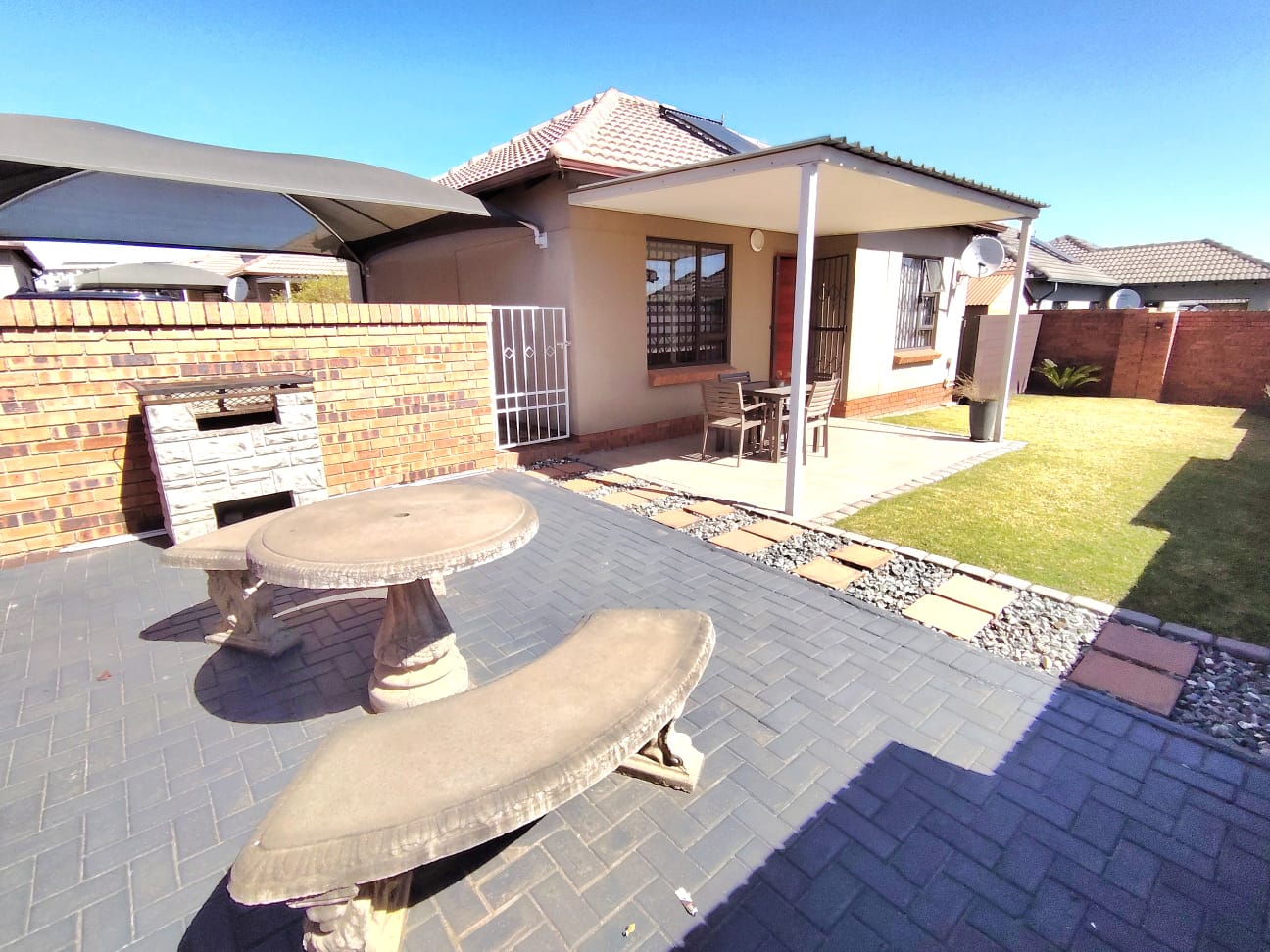 This well-kept estate also boasts fantastic amenities, including a clubhouse with braai facilities, a large playground for children, and a swimming pool.