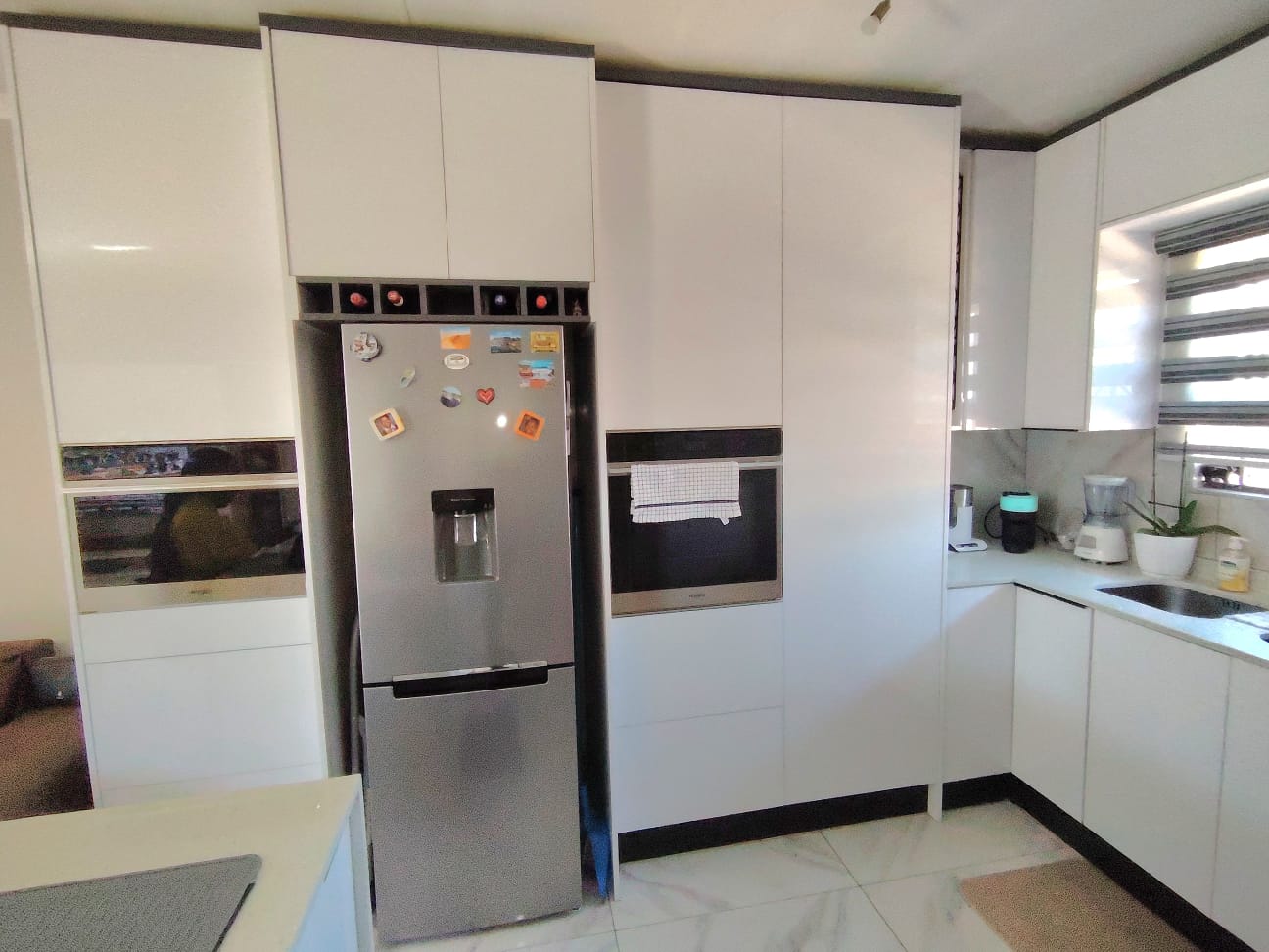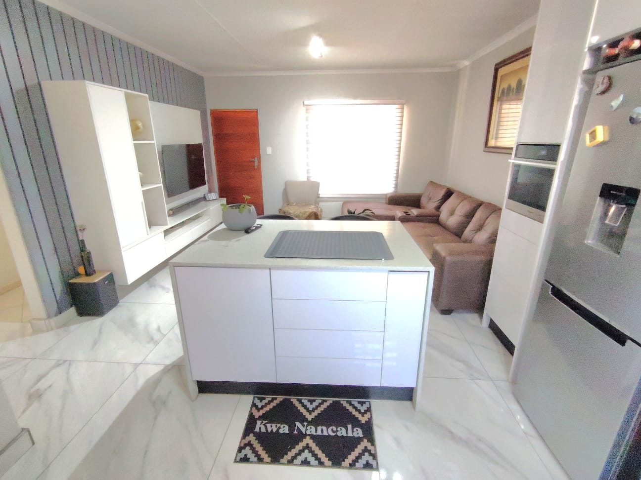 Inside, you’ll find two generous bedrooms and two bathrooms, along with a dream kitchen featuring plenty of cupboard space, room for an undercover appliance, a single-door fridge, a hob, and an island equipped with a built-in glass top stove and a built-in microwave that will stay with the home. The open-plan layout effortlessly connects the living area to the garden and patio.