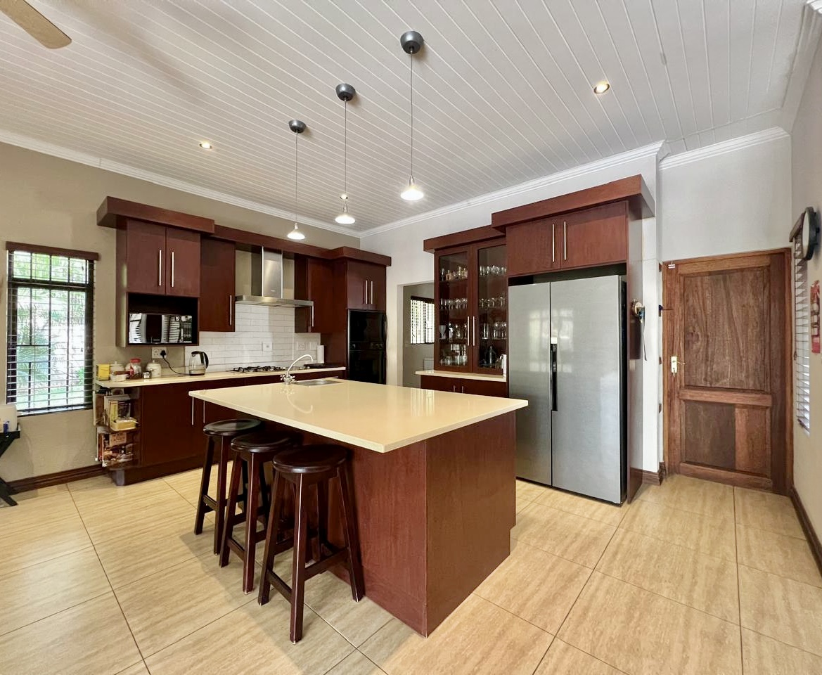 Modern Kitchen – Open plan with breakfast bar/island, stylish cabinetry, and quality appliances. Leads to a scullery with double sink and laundry facilities.
