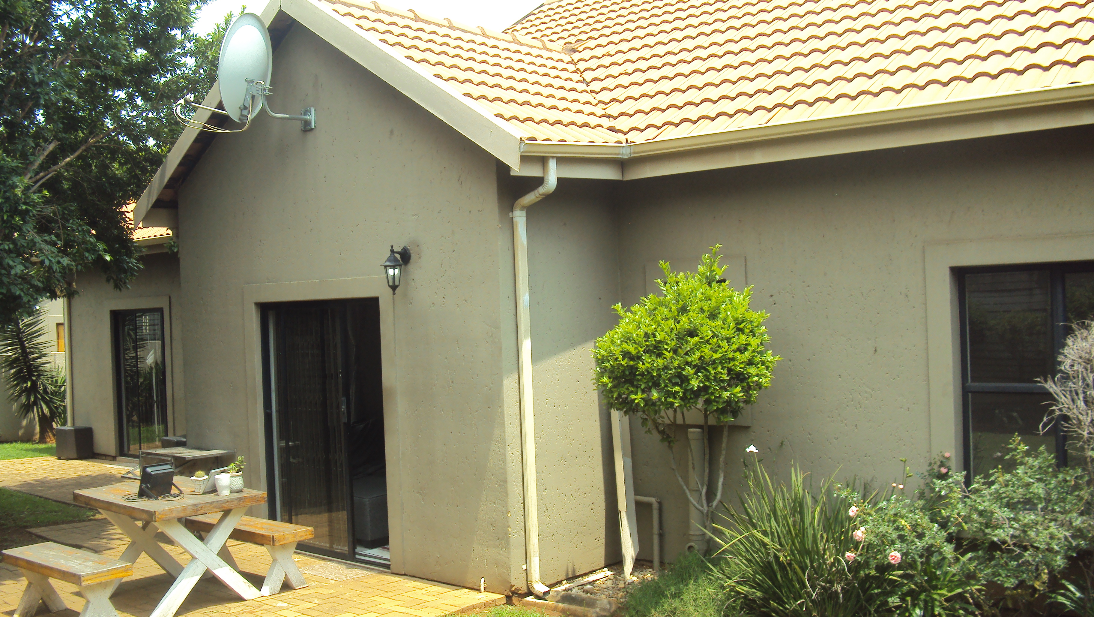 This beautiful home offers three spacious bedrooms, each with sliding doors that open onto the garden. There are two full bathrooms, enhanced with a solar geyser for energy efficiency.