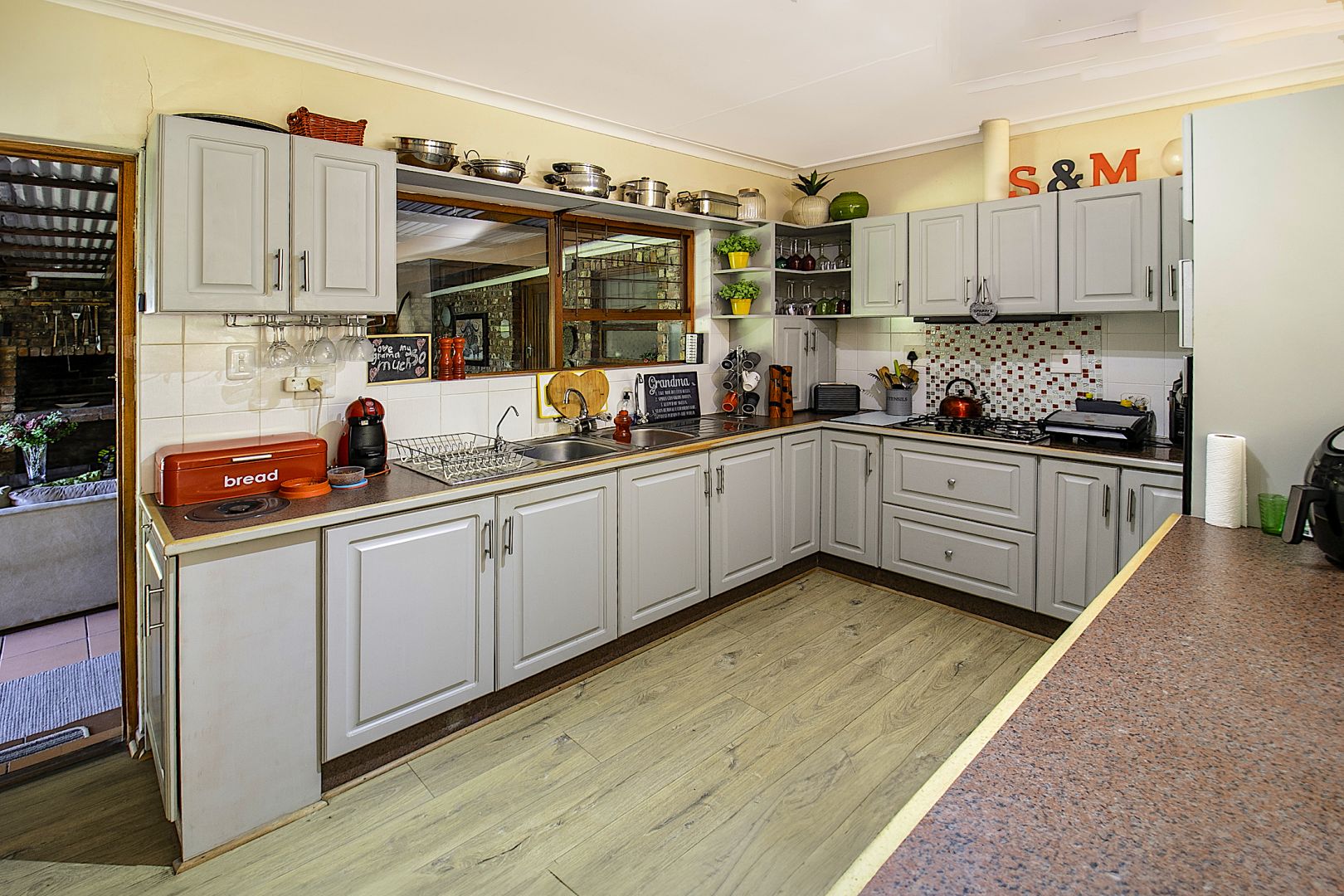 Two of the four bedrooms are ensuite, providing privacy and comfort, while the wide passage adds a sense of openness and flow throughout the house. The modern kitchen is a chef's delight, complete with a pantry cum laundry area, ensuring functionality and style. Additional features include a double garage, carport, and a Wendy house, offering ample storage and parking options.