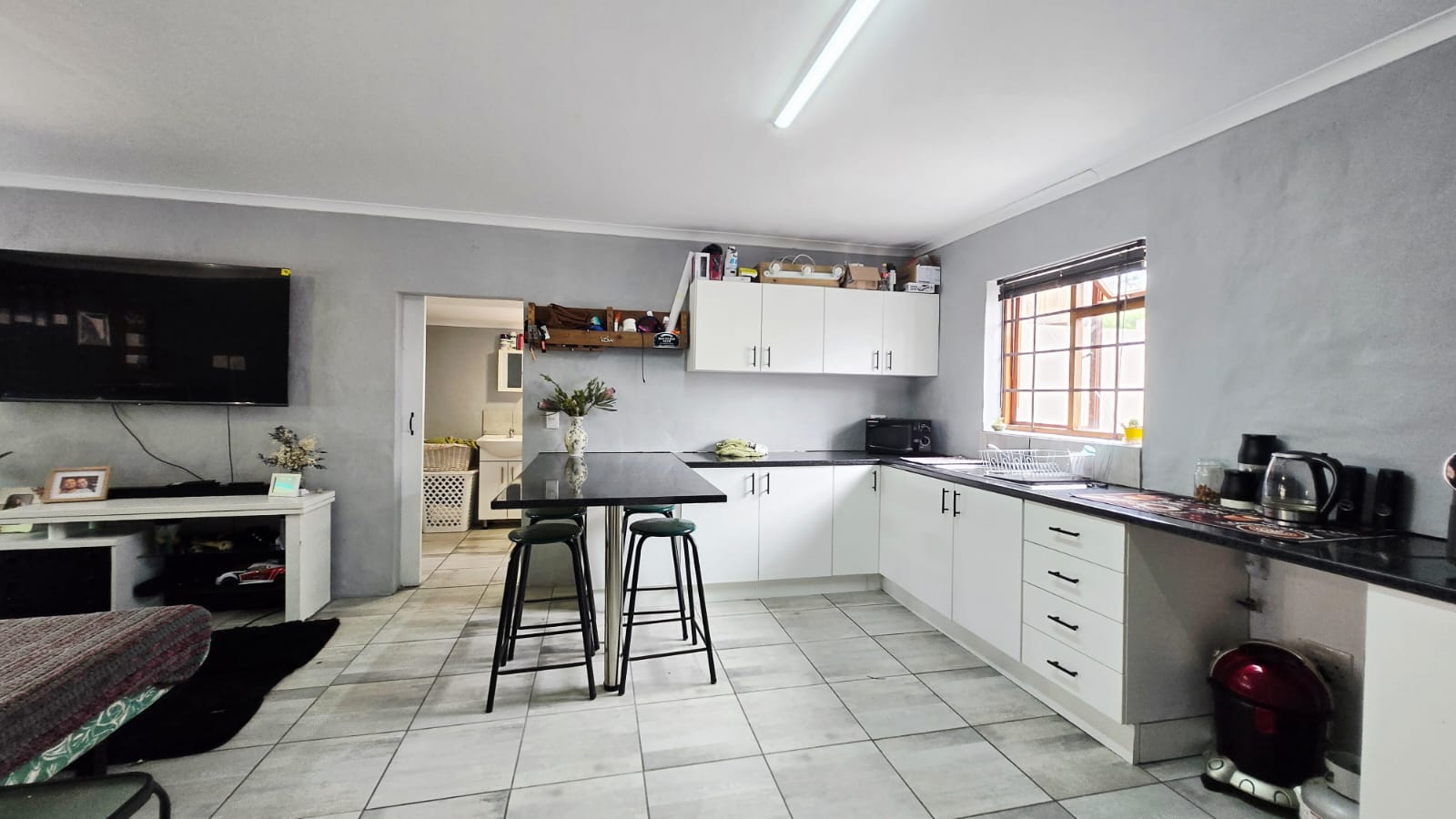 In addition to the main house, the property includes a newly renovated one-bedroom flat with modern finishes. This flat offers a spacious lounge, an open-plan kitchen, a separate bedroom and a bathroom — perfect for extended family, guests or rental income. A further smaller flatlet, ideal for Airbnb or guest accommodation, provides a bedroom, kitchenette and bathroom.