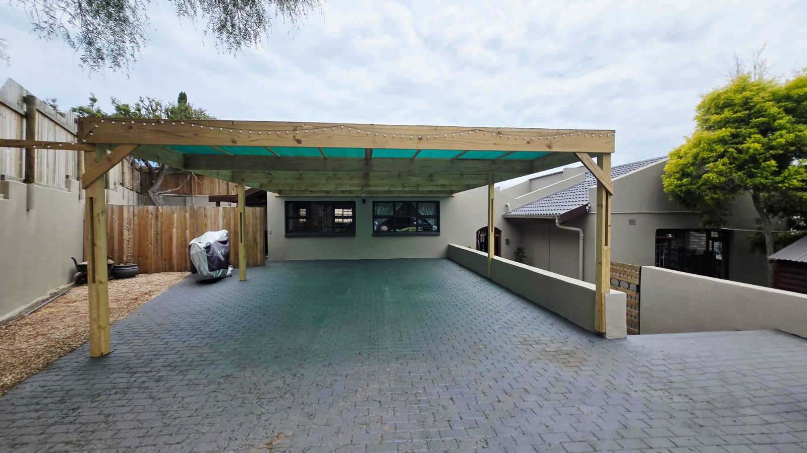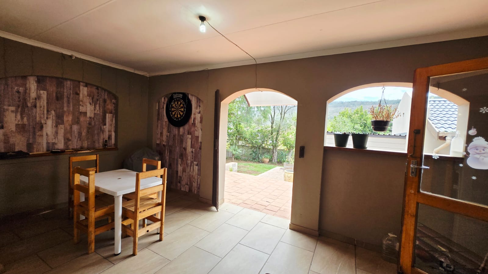 The property also offers a double carport, a fully fenced garden with established terraces, a borehole, and a garden shed. A gazebo in the courtyard creates a lovely outdoor entertainment area, ideal for relaxed gatherings with family and friends.