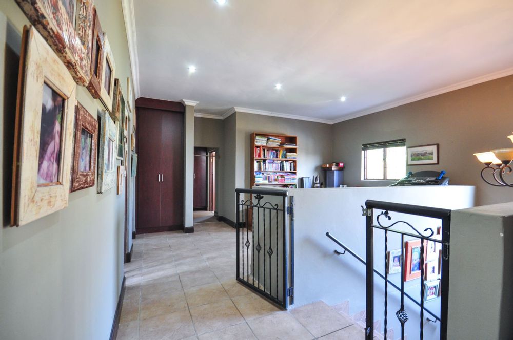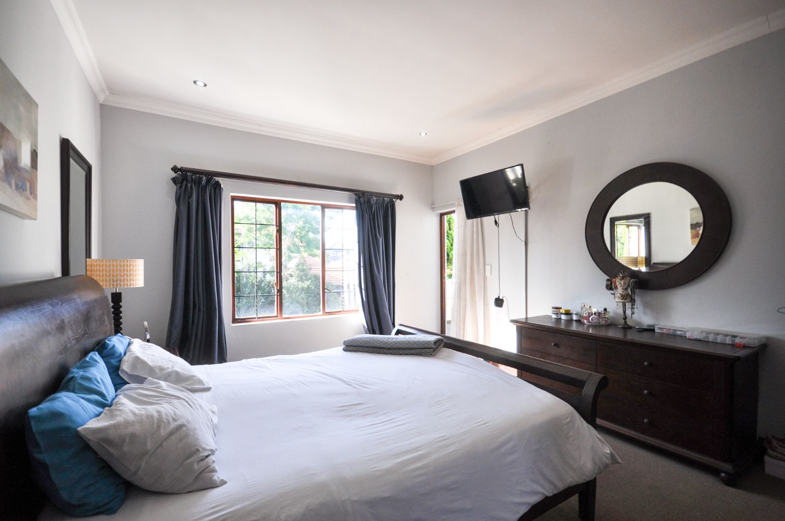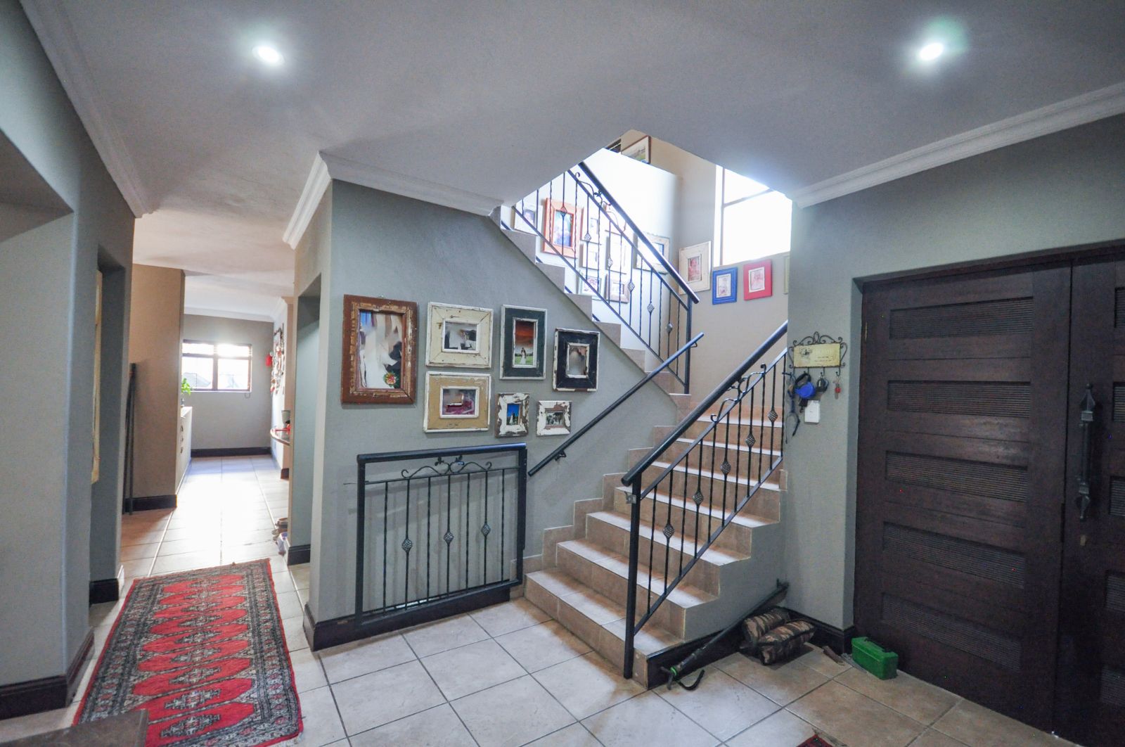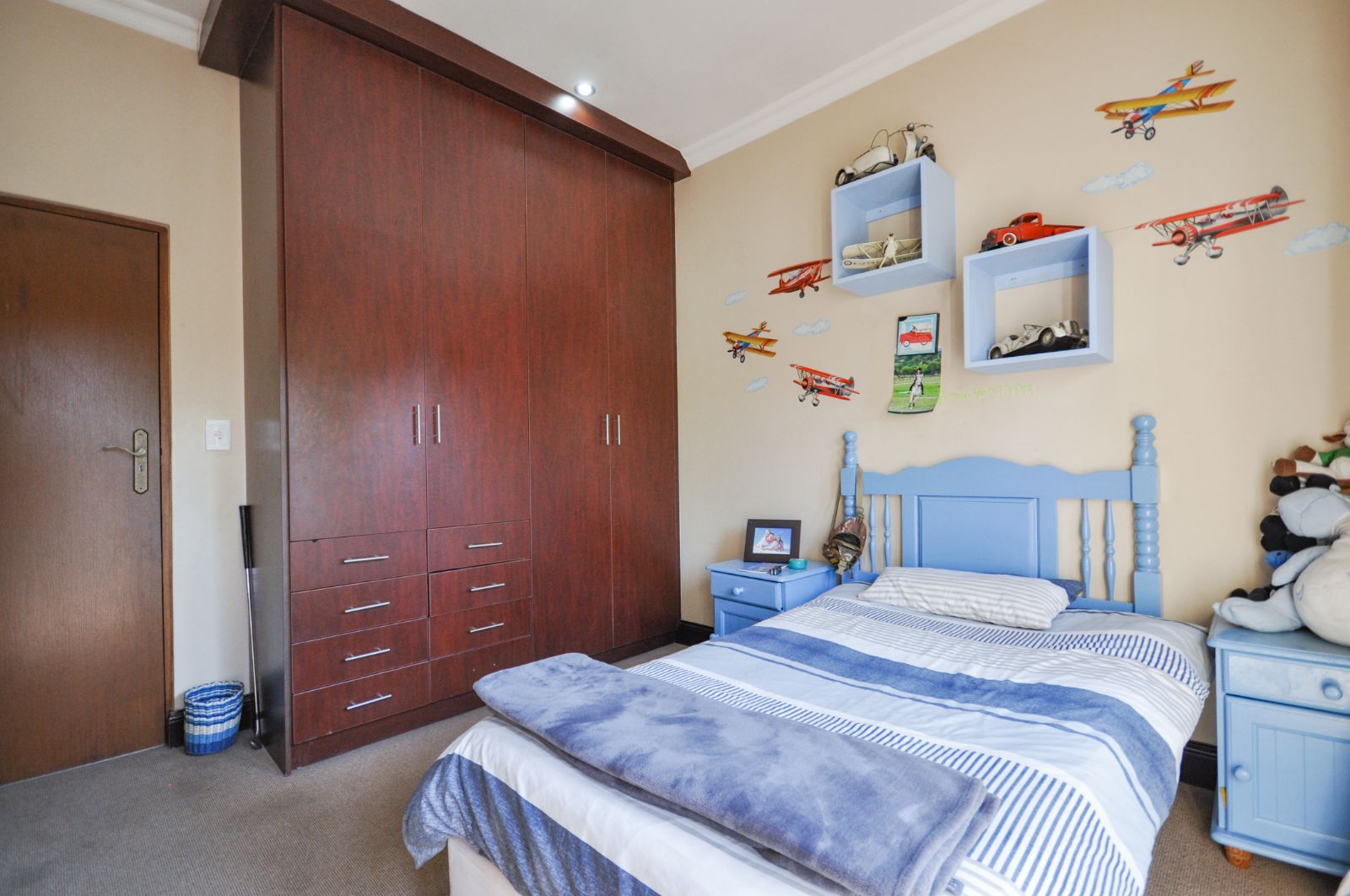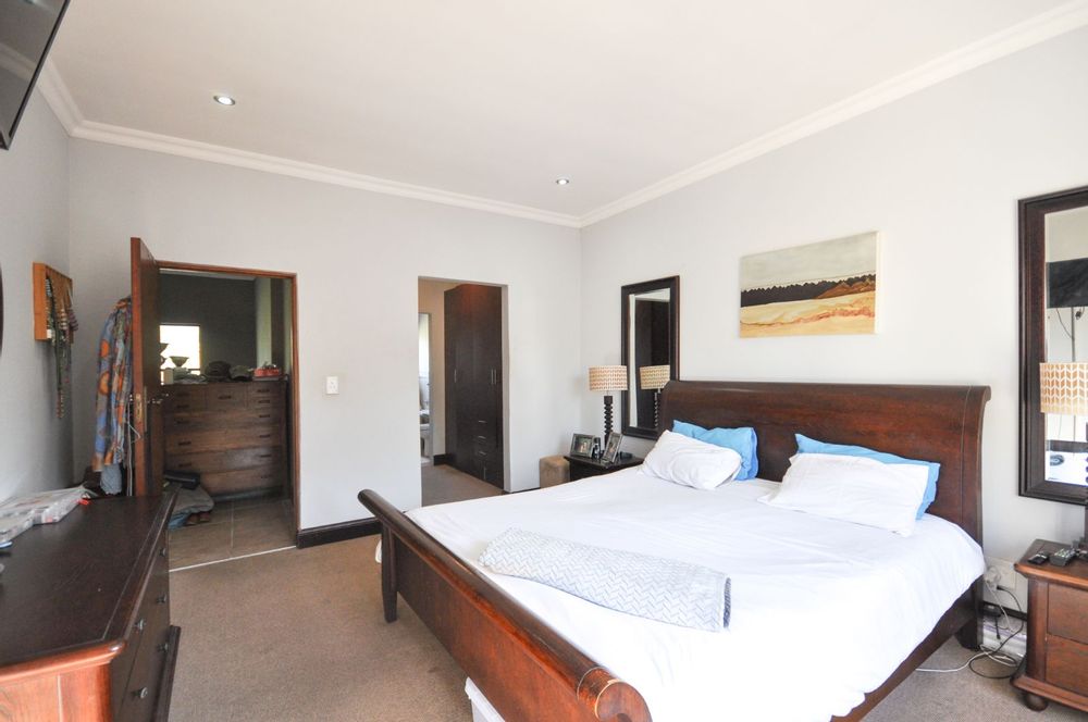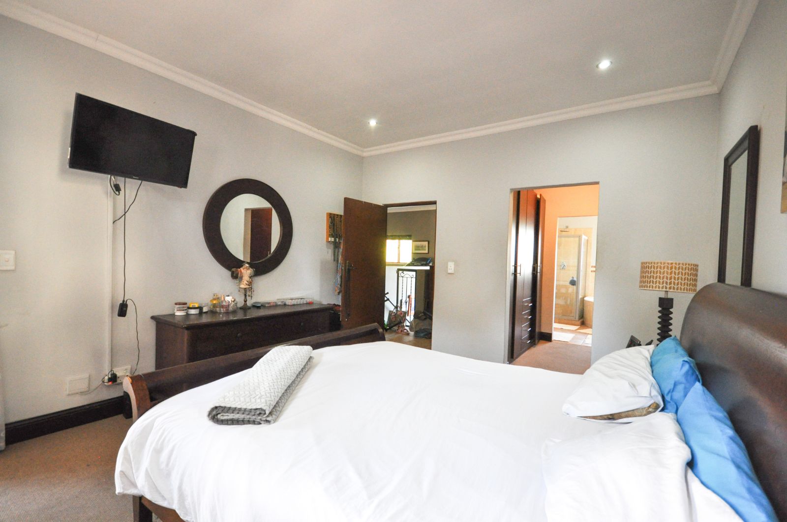 Flowing from the main Living room is a substantial additional Entertainment area, complete with a fitted bar and ample space to accommodate a pool table and other leisure furnishings. Wooden sliding doors reveal a large, covered Patio, which includes a built-in braai, four gas plates, and a delightful view of the expansive Garden—perfect for children to enjoy—as well as a heated swimming Pool for those sunlit days.